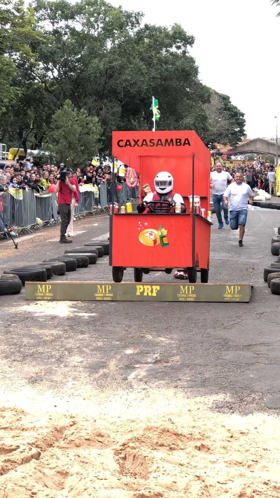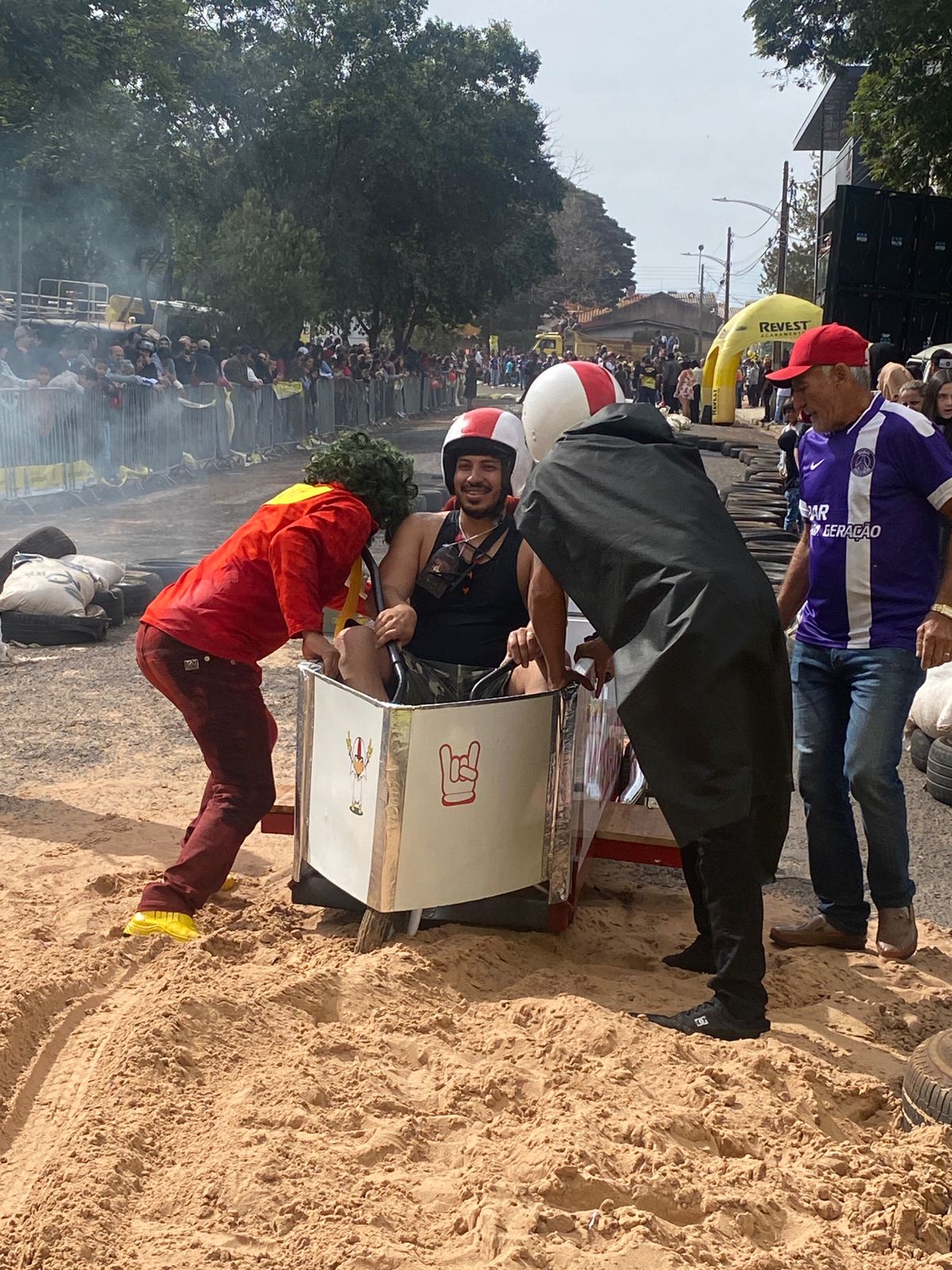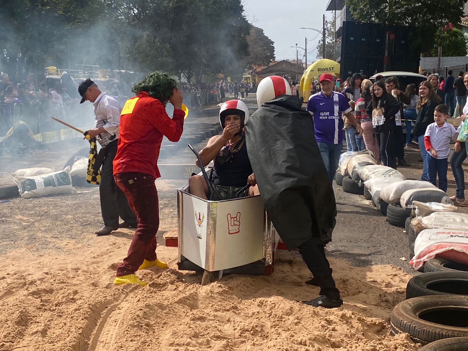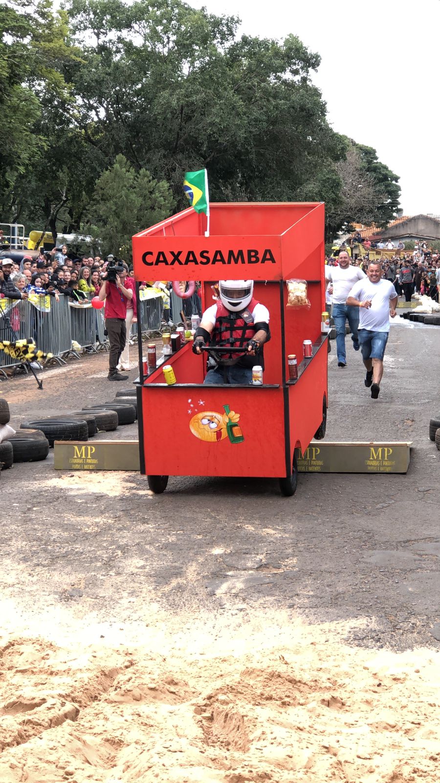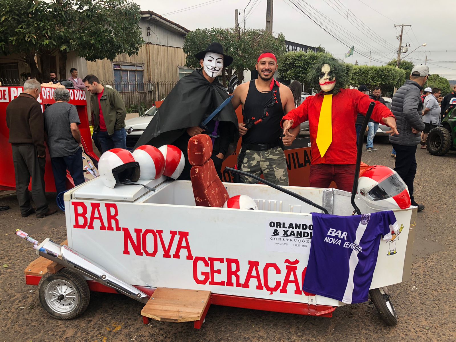 A equipe “Bar Nova Geração” usou uma geladeira velha, pedaços de bicicleta, moto e até um banco de ônibus para a construção do carrinho, que levou mais de um mês para ficar pronto. Leonardo de Souza, Alexandre Soares e Fernandes Soares faziam parte da equipe que completou com êxito a decida e dispararam o modo “turbo” composta por um extintor na parte de trás.