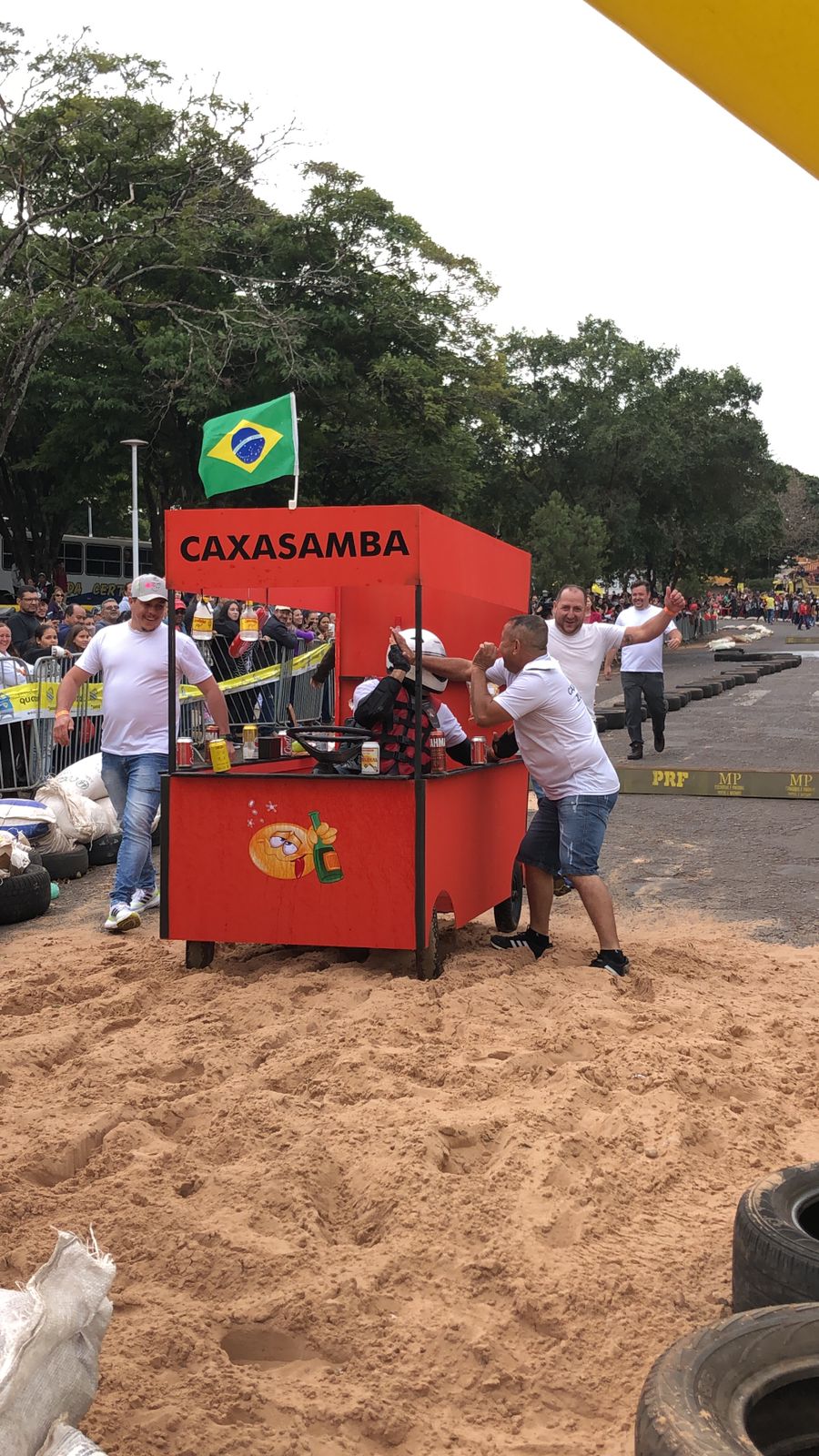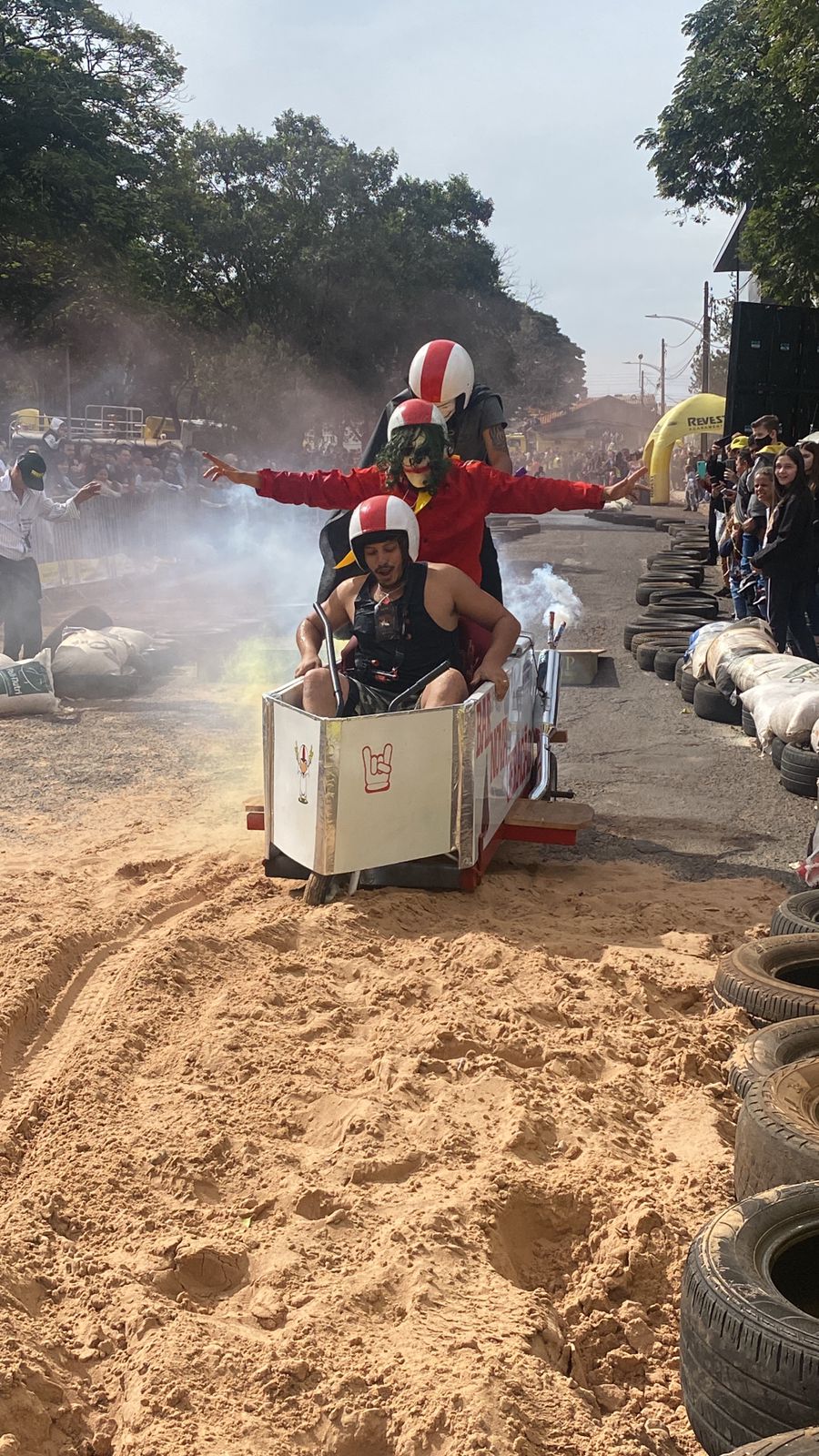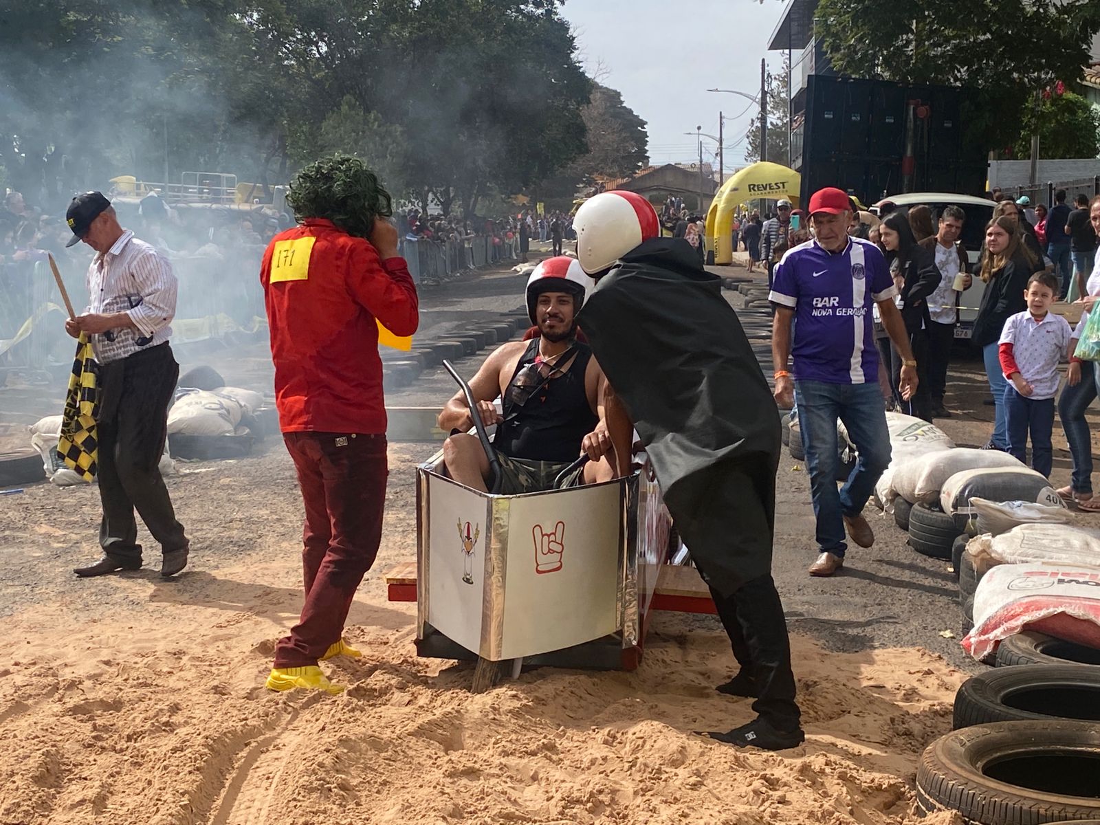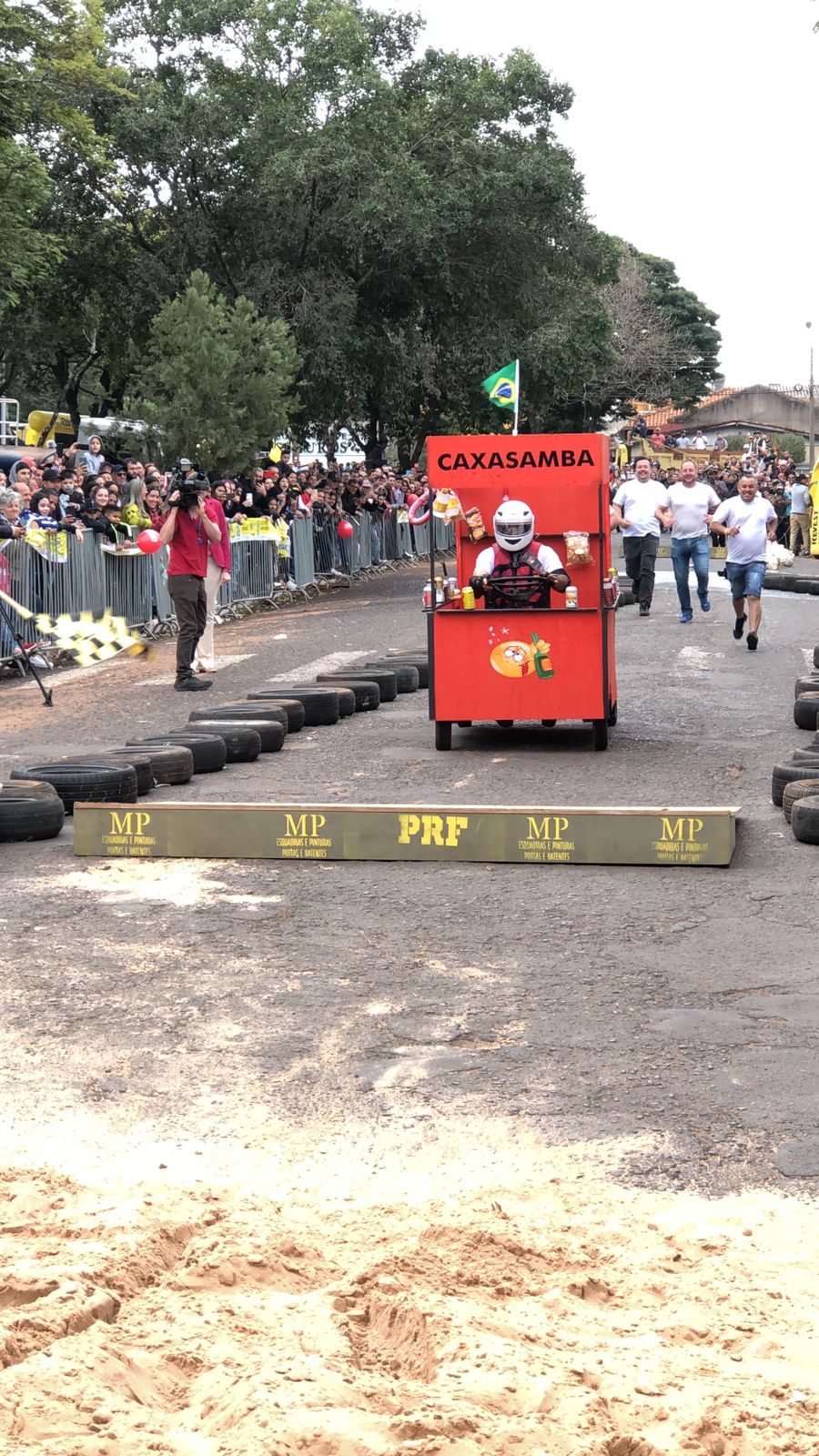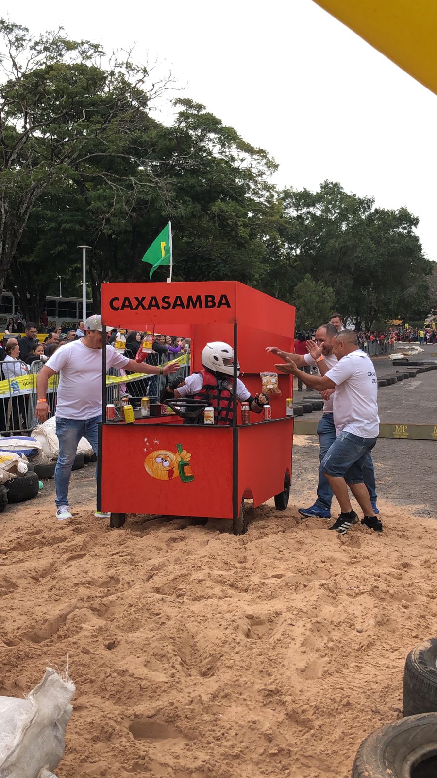 A equipe “Bar Nova Geração” usou uma geladeira velha, pedaços de bicicleta, moto e até um banco de ônibus para a construção do carrinho, que levou mais de um mês para ficar pronto. Leonardo de Souza, Alexandre Soares e Fernandes Soares faziam parte da equipe que completou com êxito a decida e dispararam o modo “turbo” composta por um extintor na parte de trás.