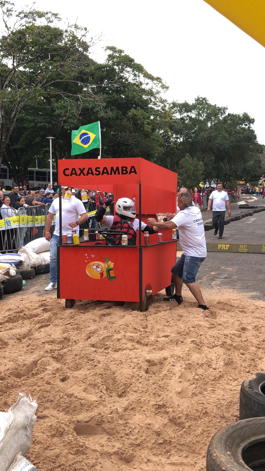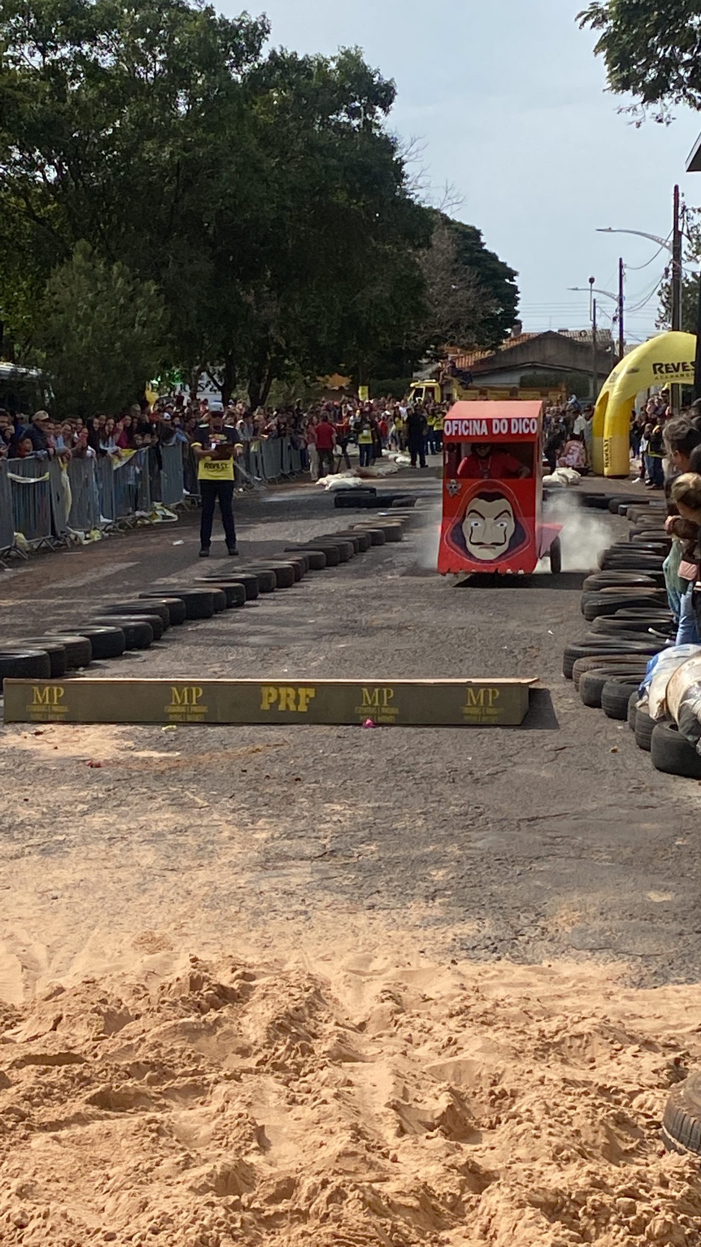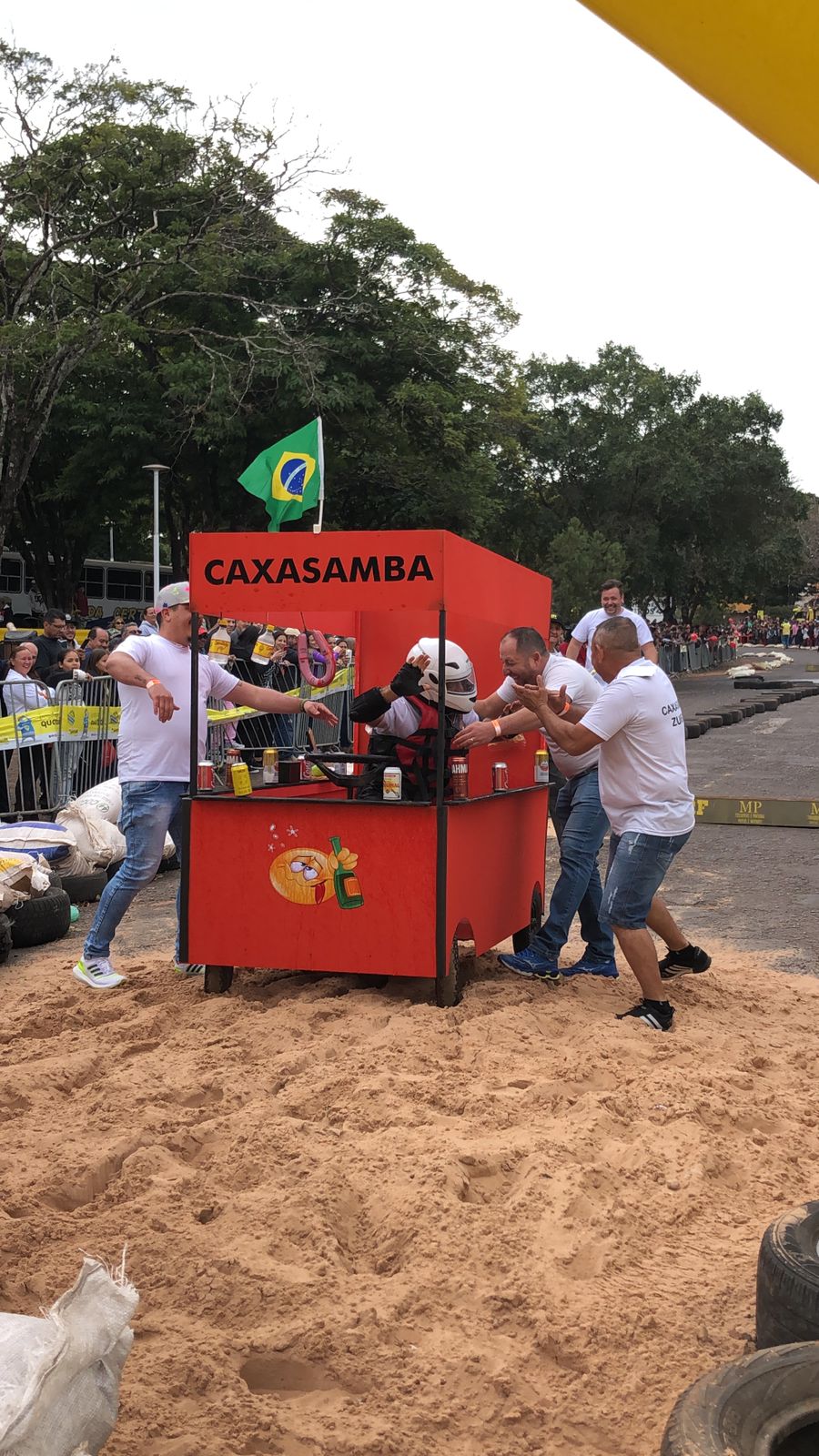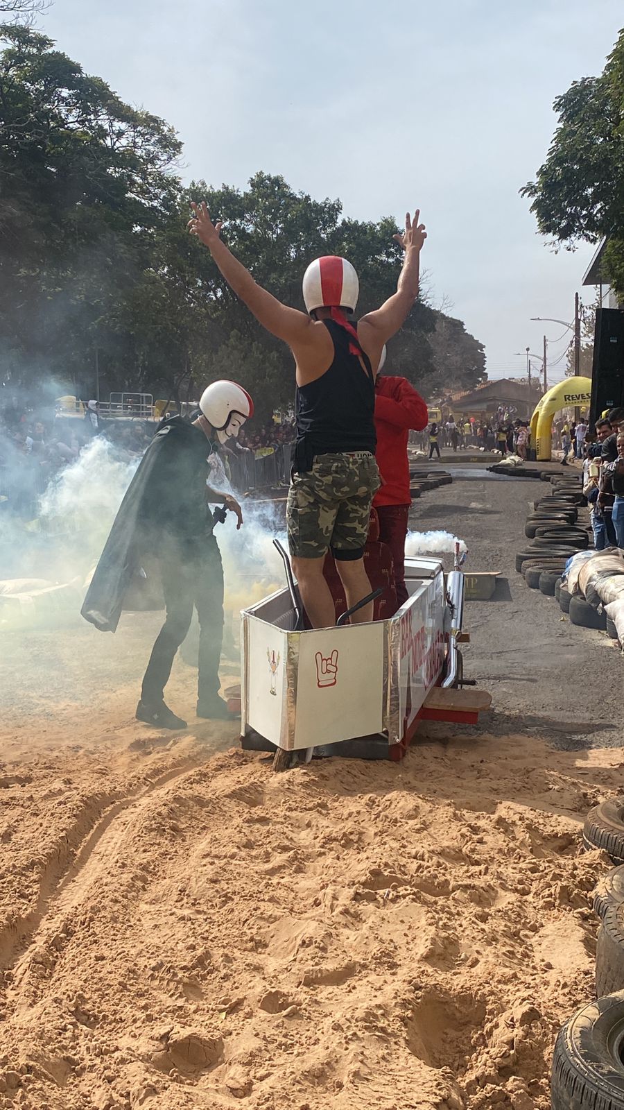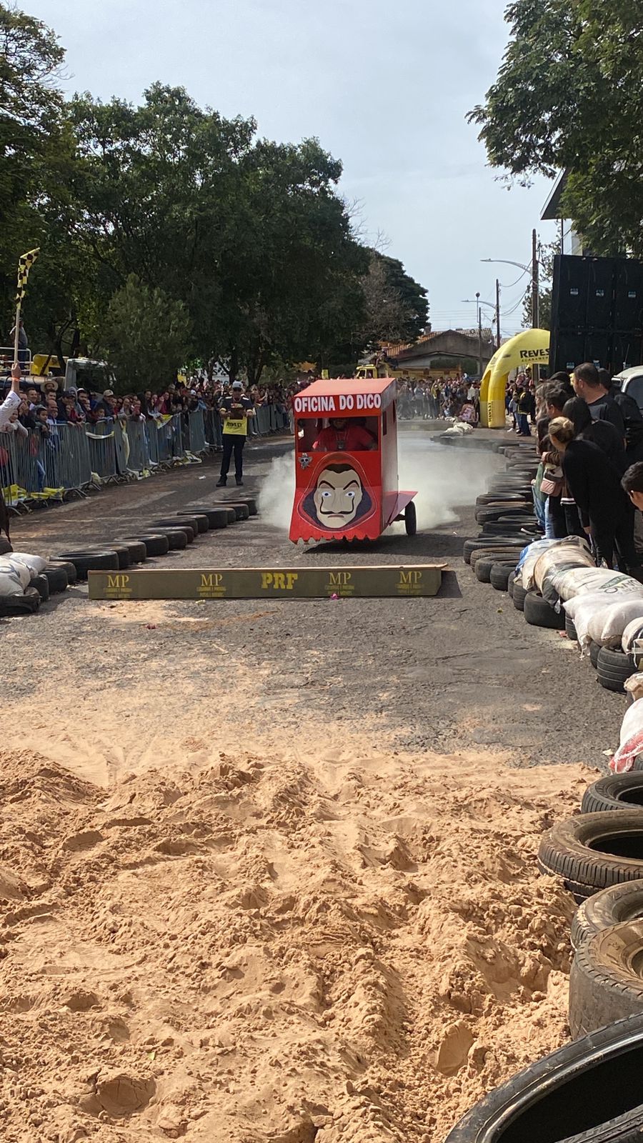 A equipe “Bar Nova Geração” usou uma geladeira velha, pedaços de bicicleta, moto e até um banco de ônibus para a construção do carrinho, que levou mais de um mês para ficar pronto. Leonardo de Souza, Alexandre Soares e Fernandes Soares faziam parte da equipe que completou com êxito a decida e dispararam o modo “turbo” composta por um extintor na parte de trás.