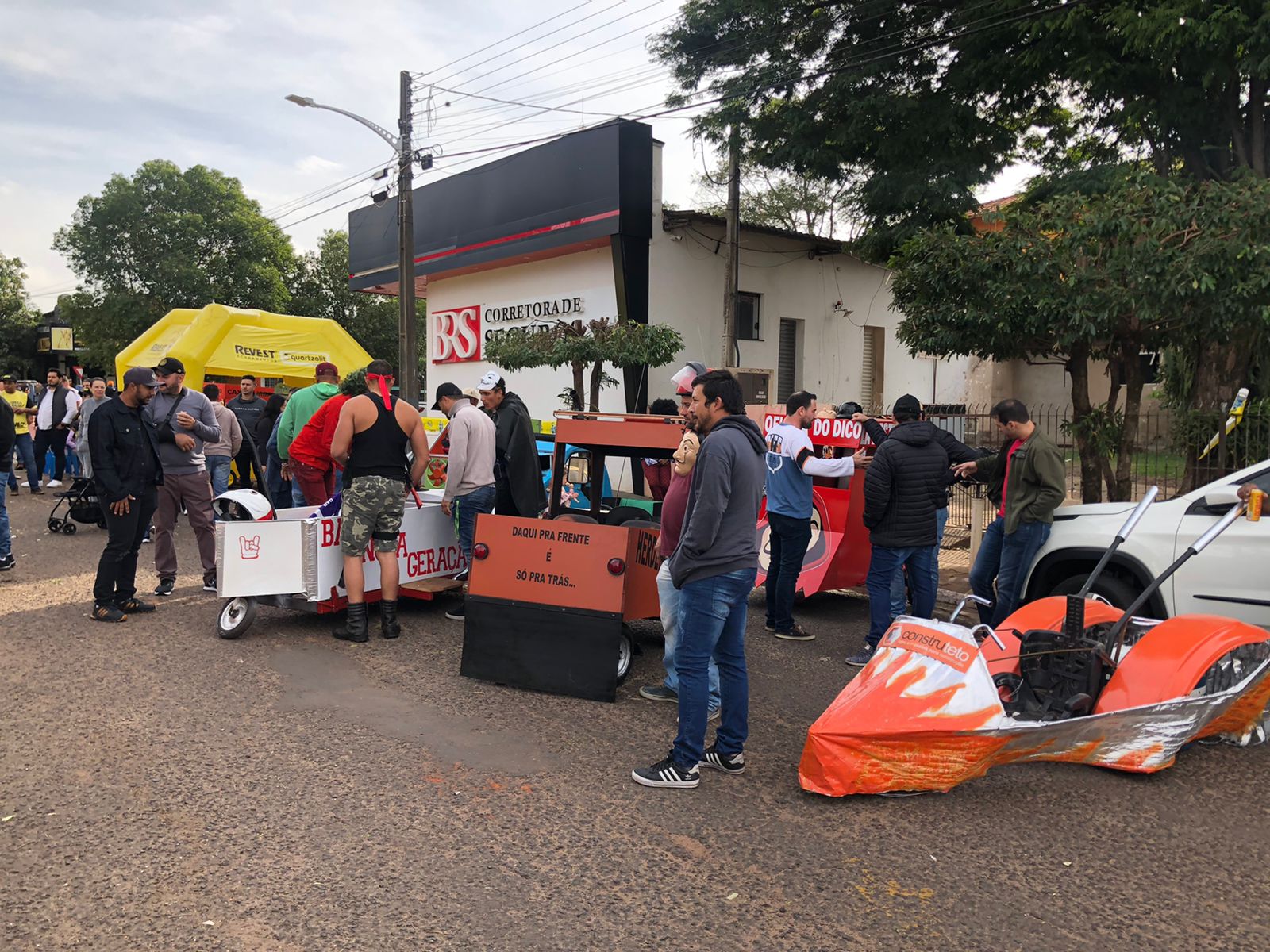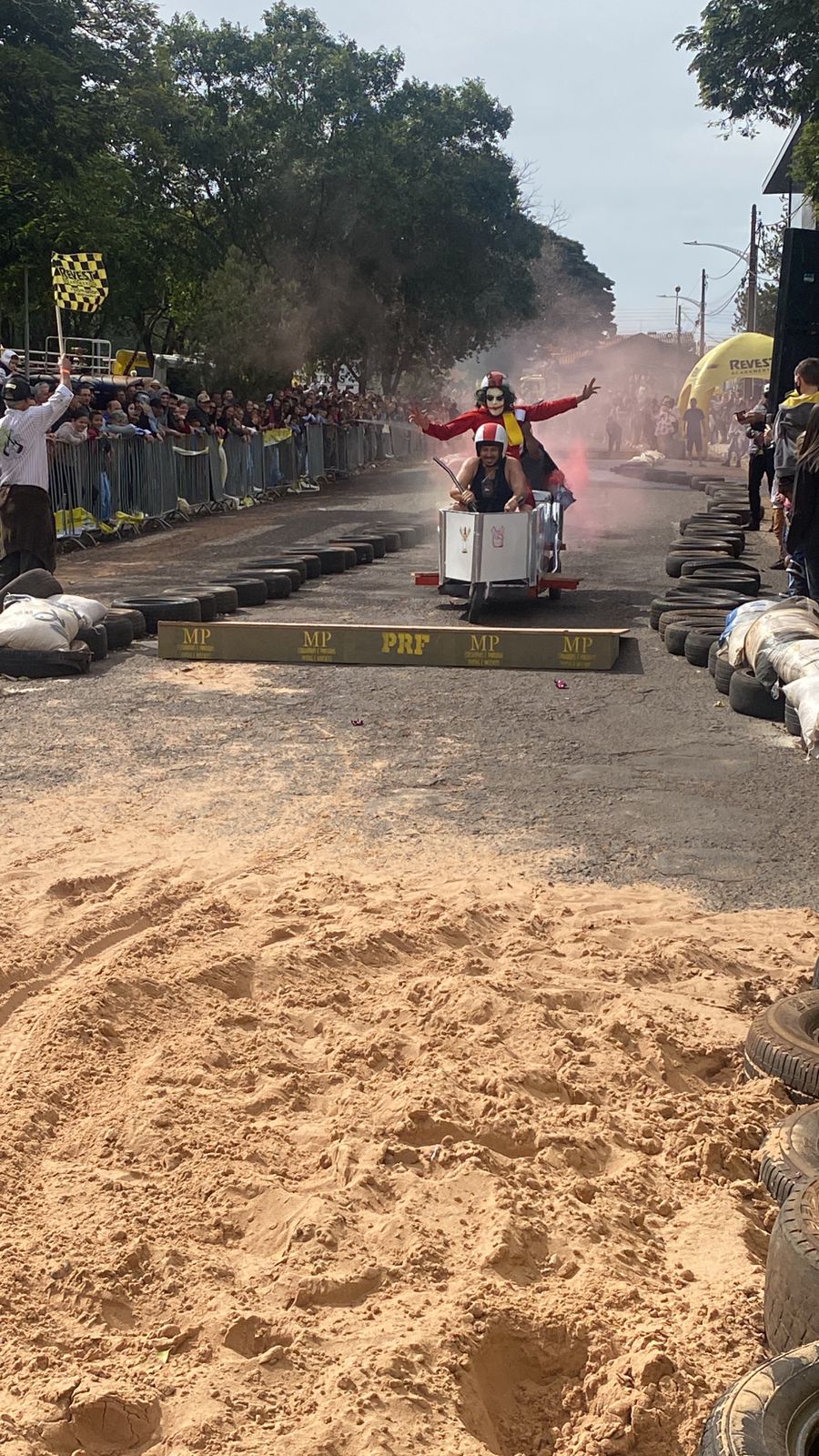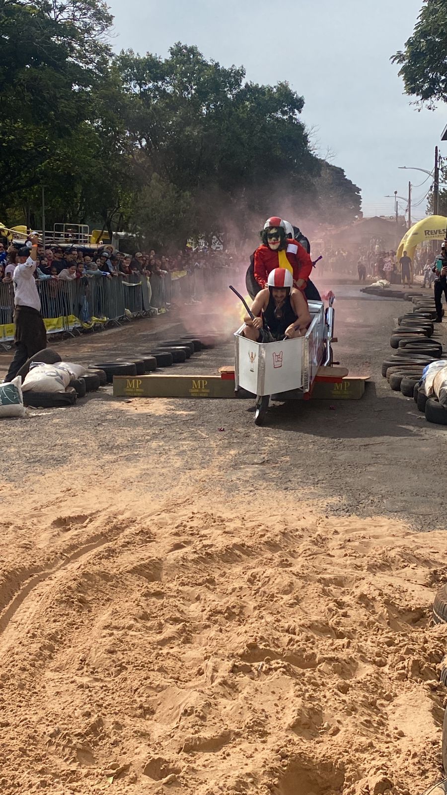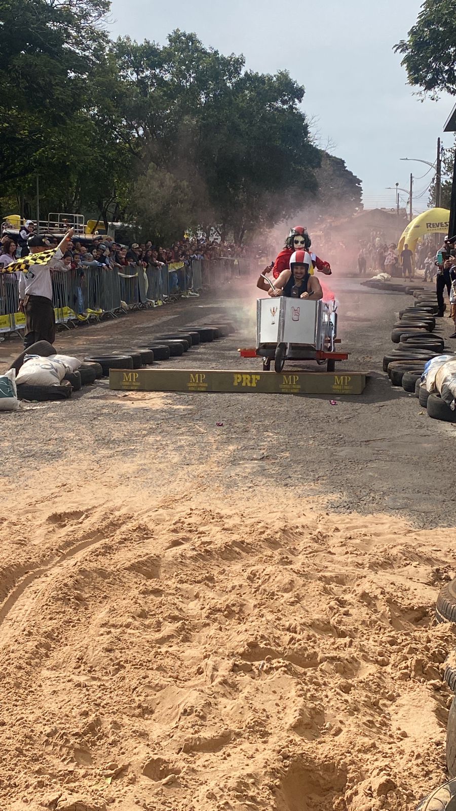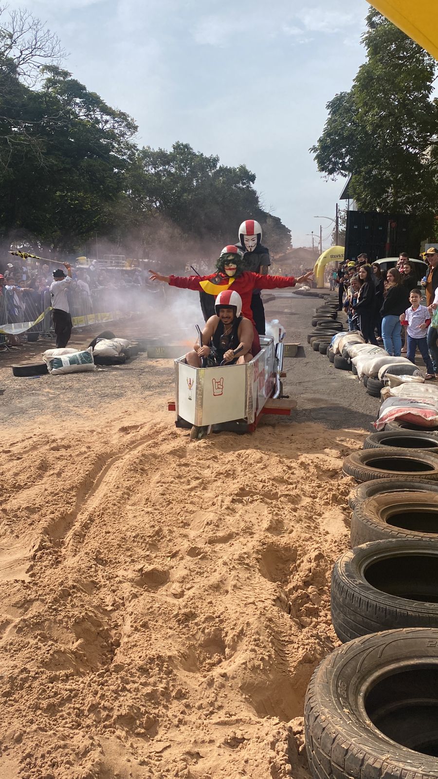 A equipe “Bar Nova Geração” usou uma geladeira velha, pedaços de bicicleta, moto e até um banco de ônibus para a construção do carrinho, que levou mais de um mês para ficar pronto. Leonardo de Souza, Alexandre Soares e Fernandes Soares faziam parte da equipe que completou com êxito a decida e dispararam o modo “turbo” composta por um extintor na parte de trás.