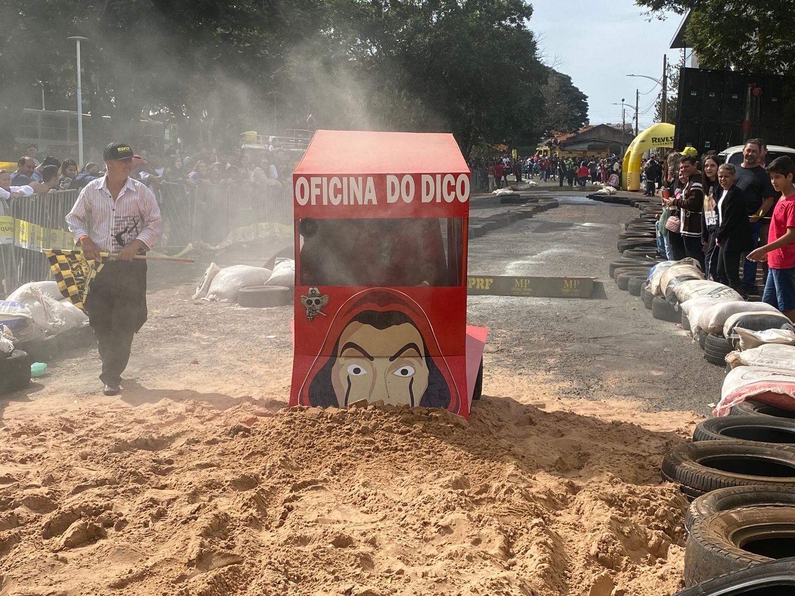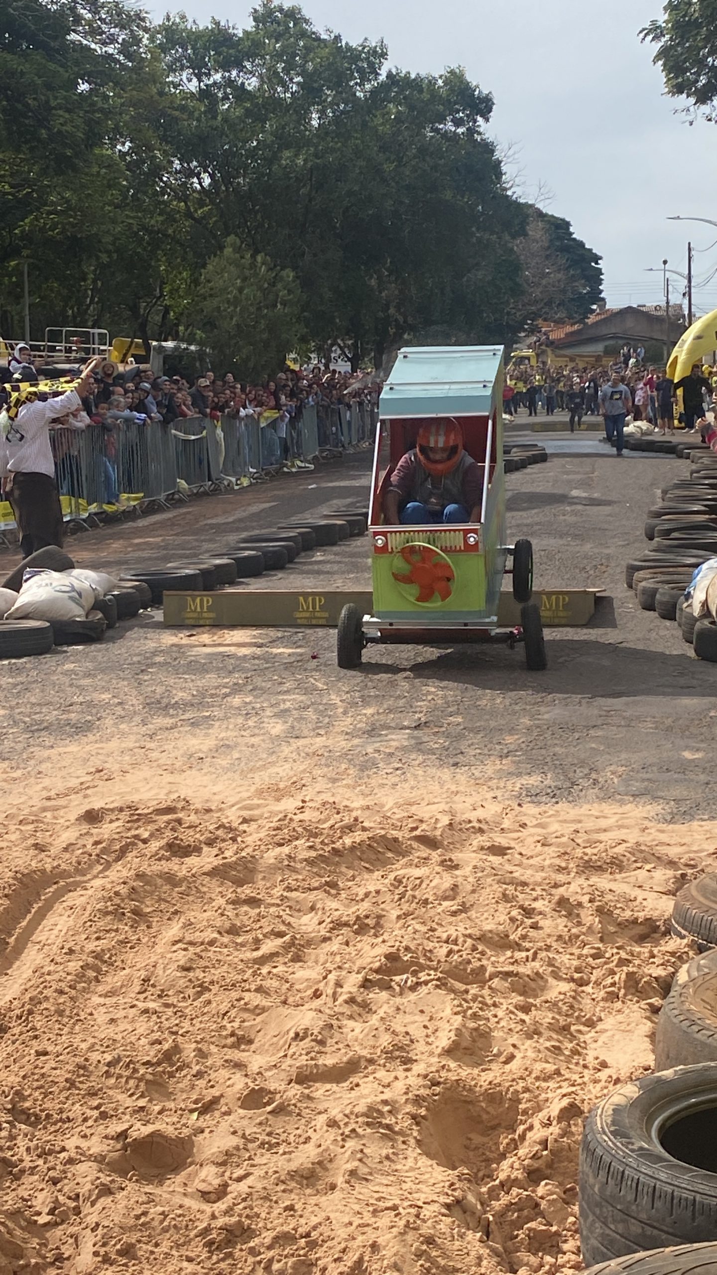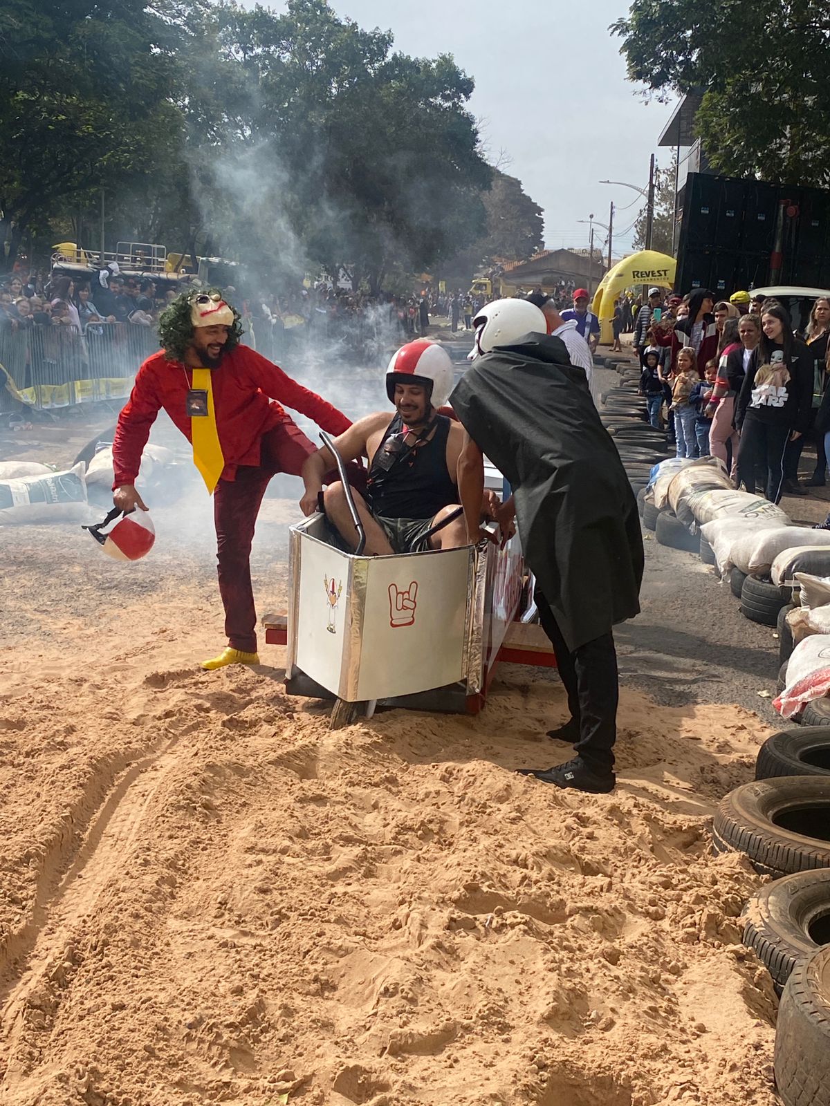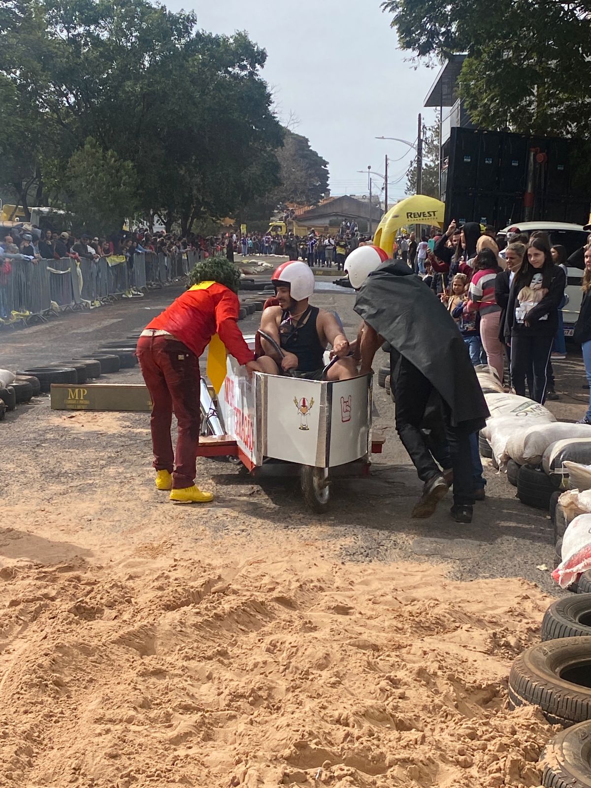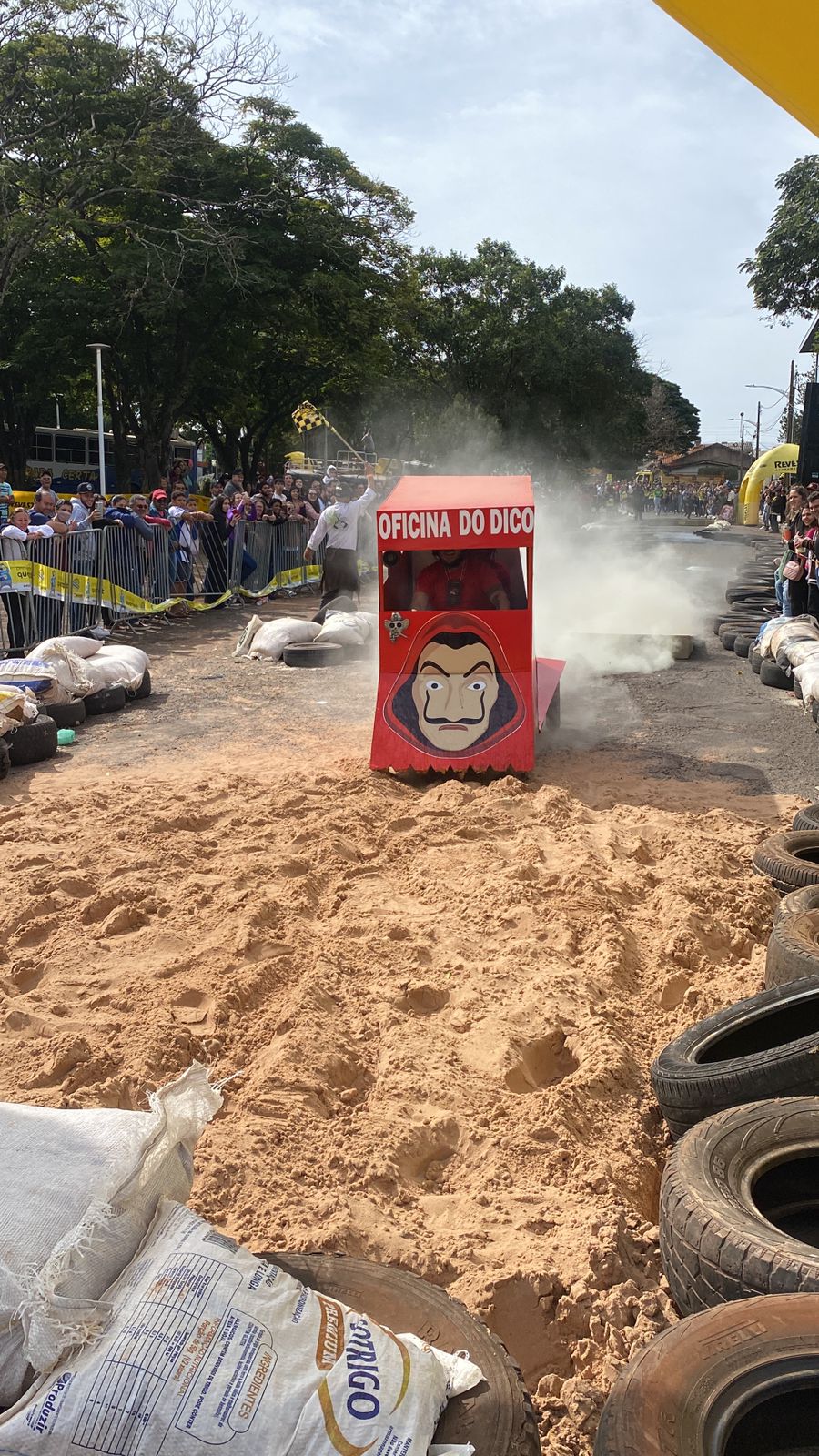 A equipe “Bar Nova Geração” usou uma geladeira velha, pedaços de bicicleta, moto e até um banco de ônibus para a construção do carrinho, que levou mais de um mês para ficar pronto. Leonardo de Souza, Alexandre Soares e Fernandes Soares faziam parte da equipe que completou com êxito a decida e dispararam o modo “turbo” composta por um extintor na parte de trás.