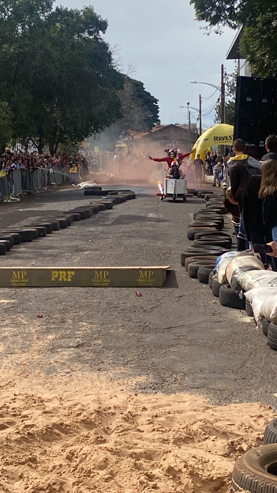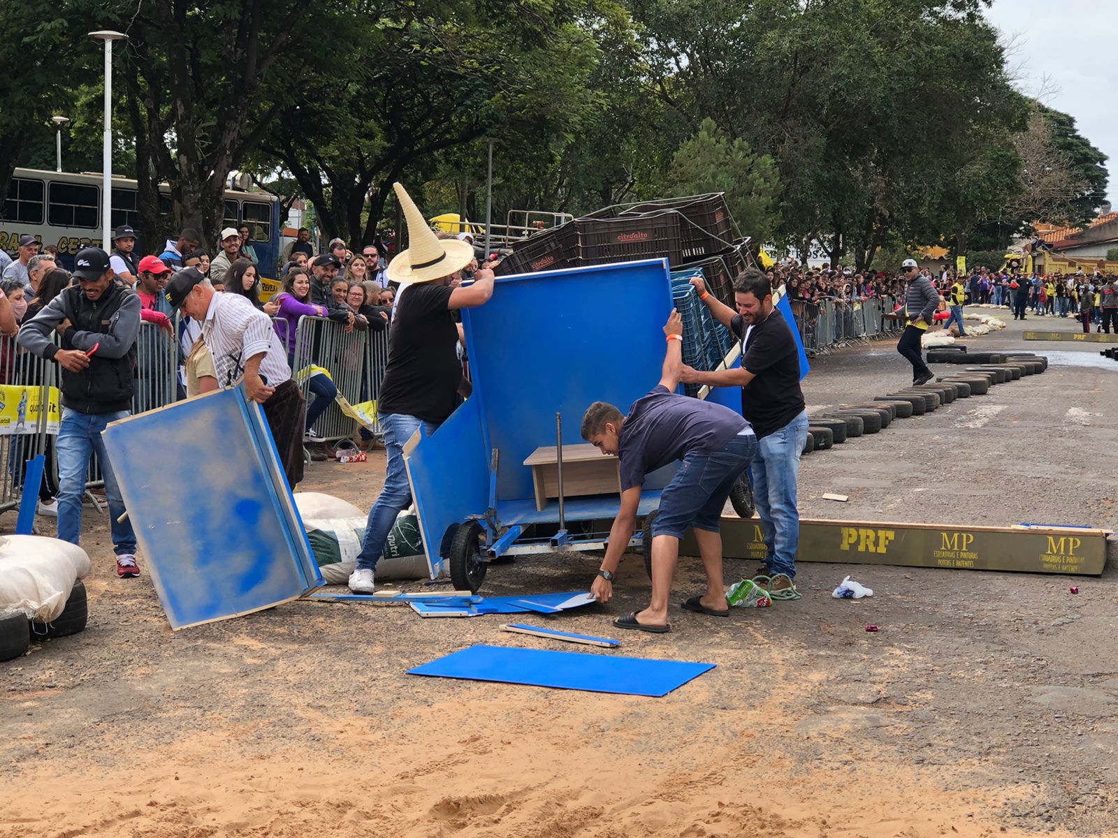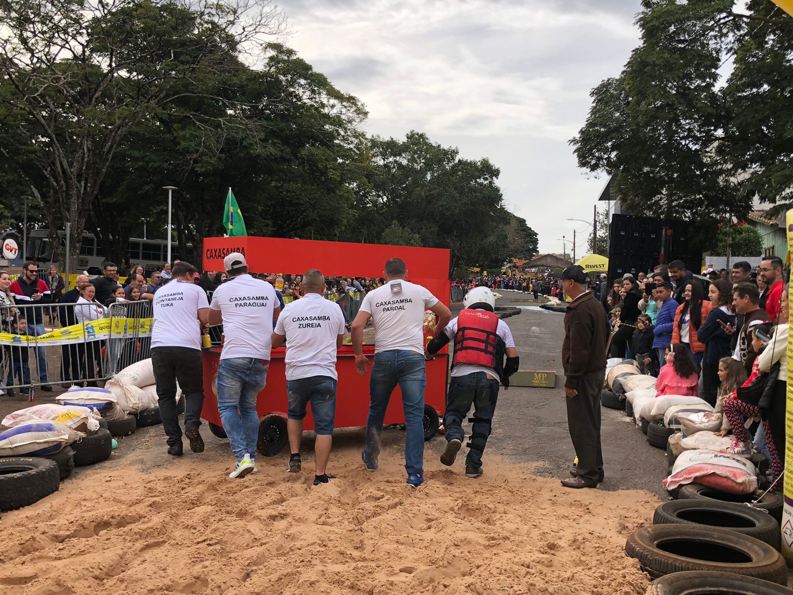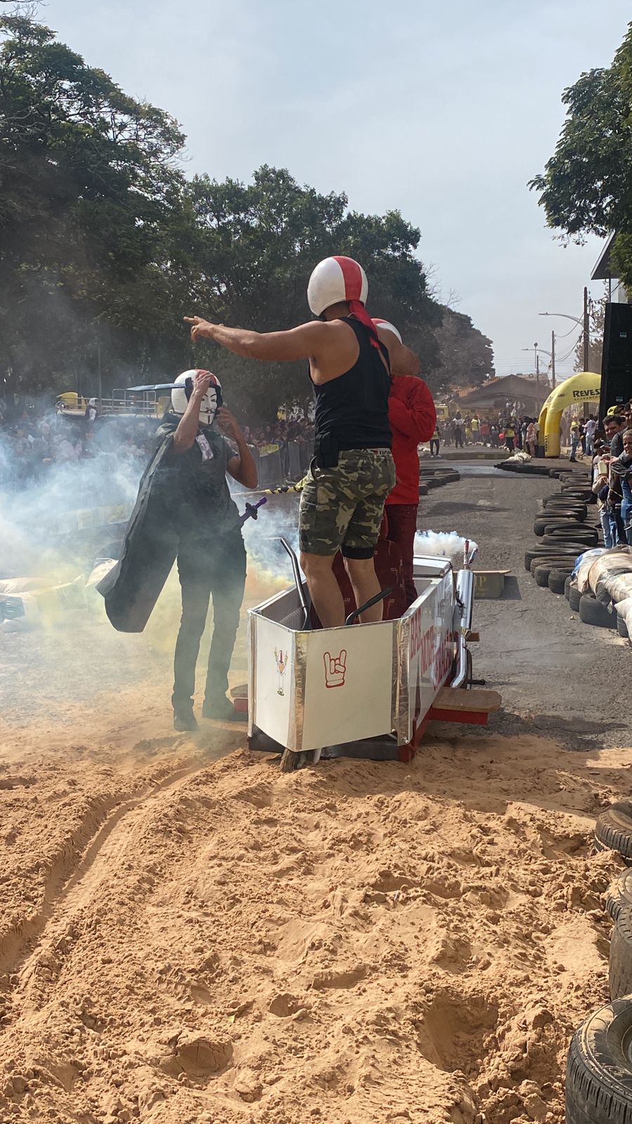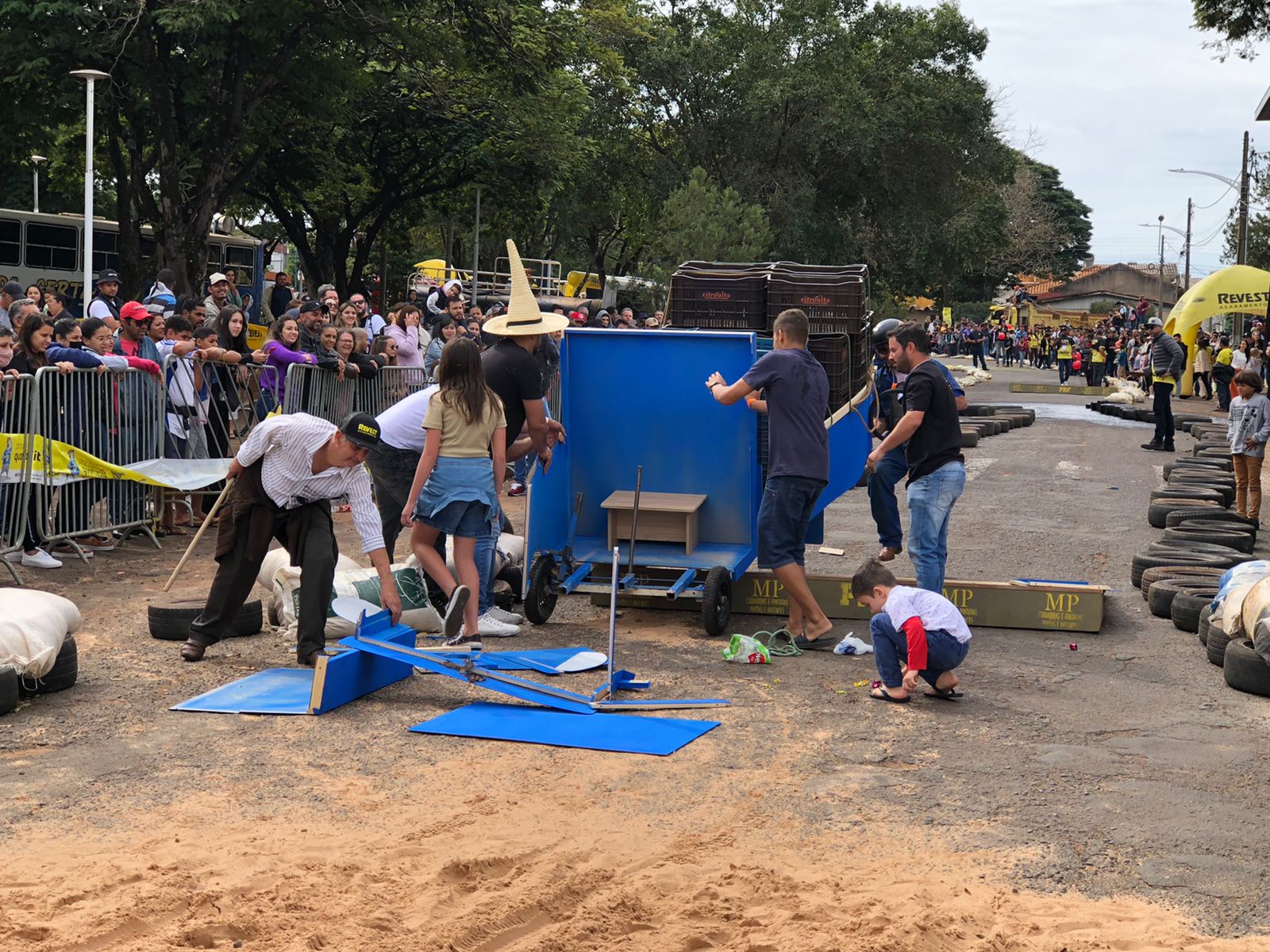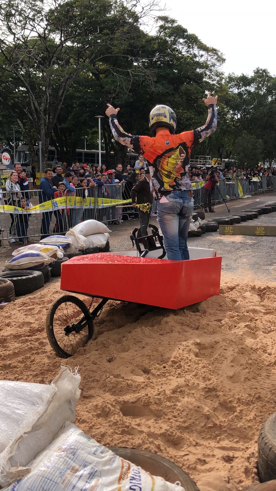 A equipe “Bar Nova Geração” usou uma geladeira velha, pedaços de bicicleta, moto e até um banco de ônibus para a construção do carrinho, que levou mais de um mês para ficar pronto. Leonardo de Souza, Alexandre Soares e Fernandes Soares faziam parte da equipe que completou com êxito a decida e dispararam o modo “turbo” composta por um extintor na parte de trás.