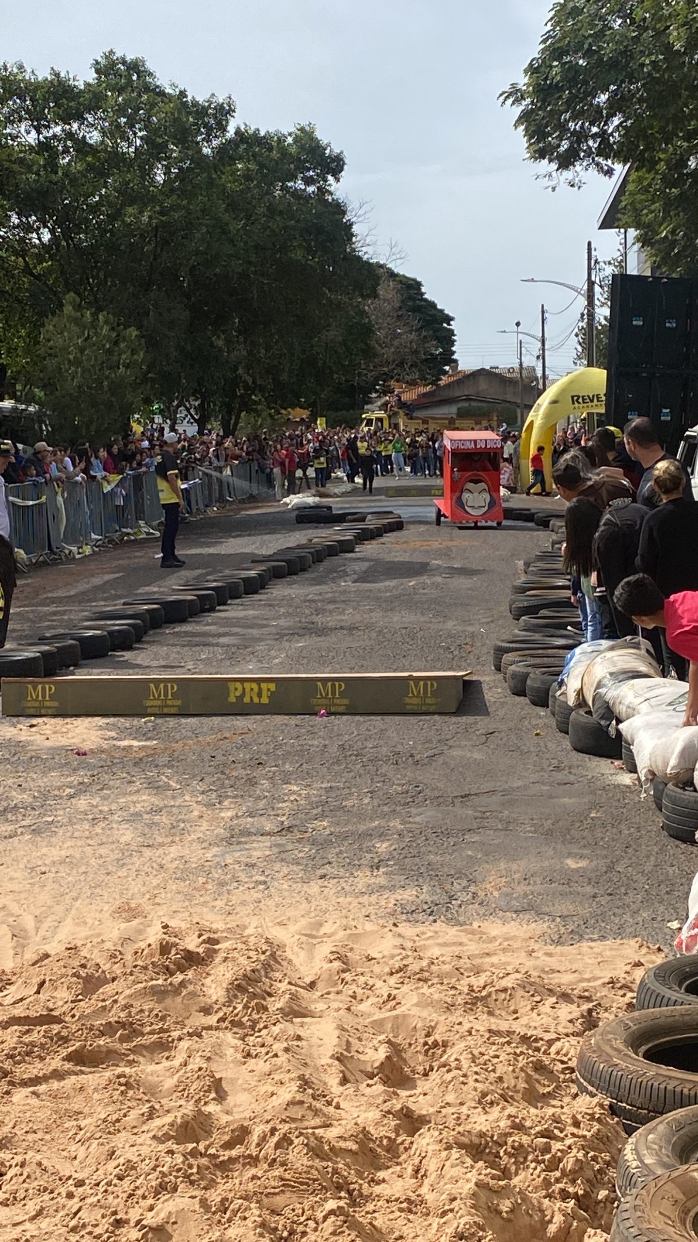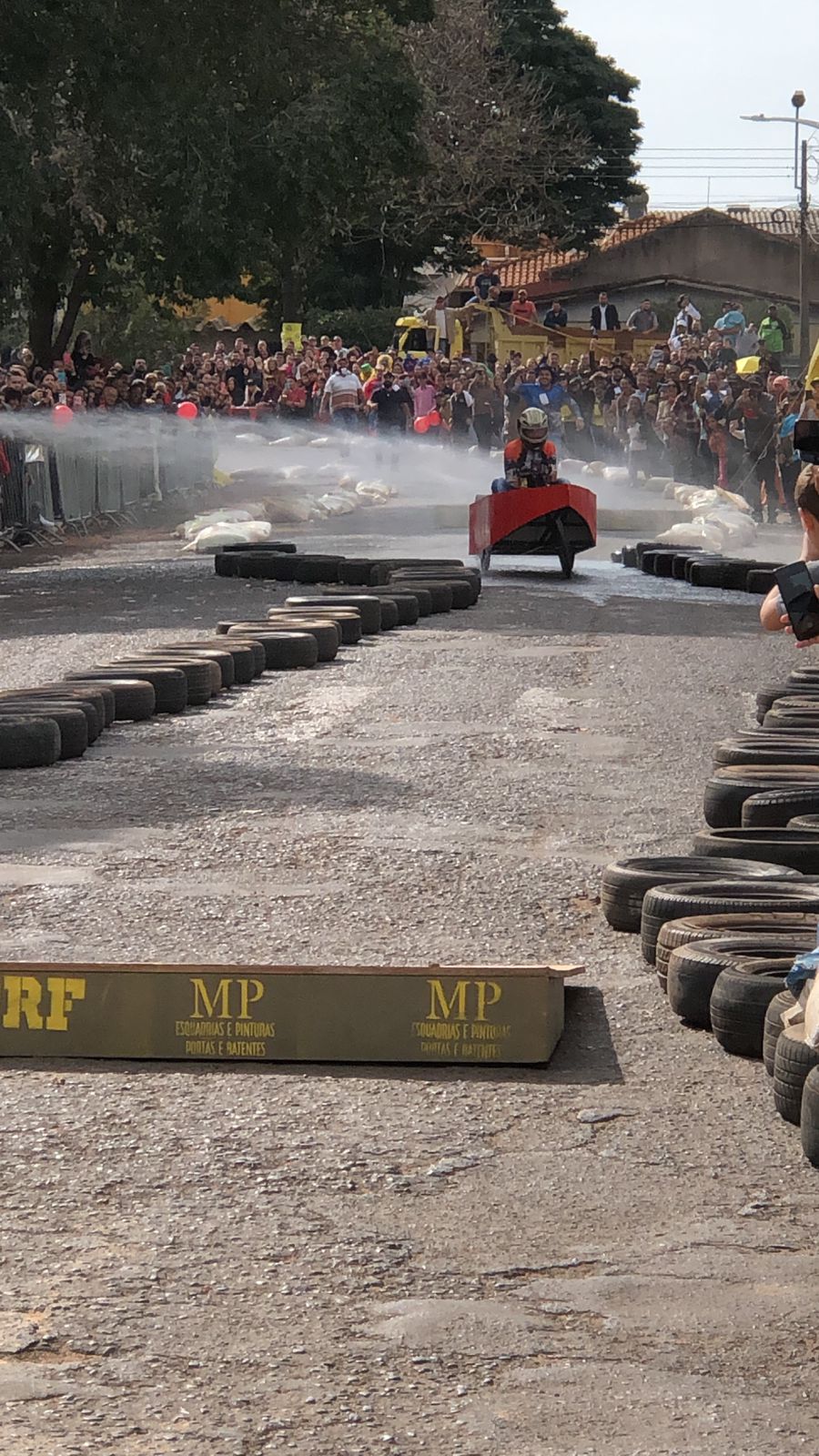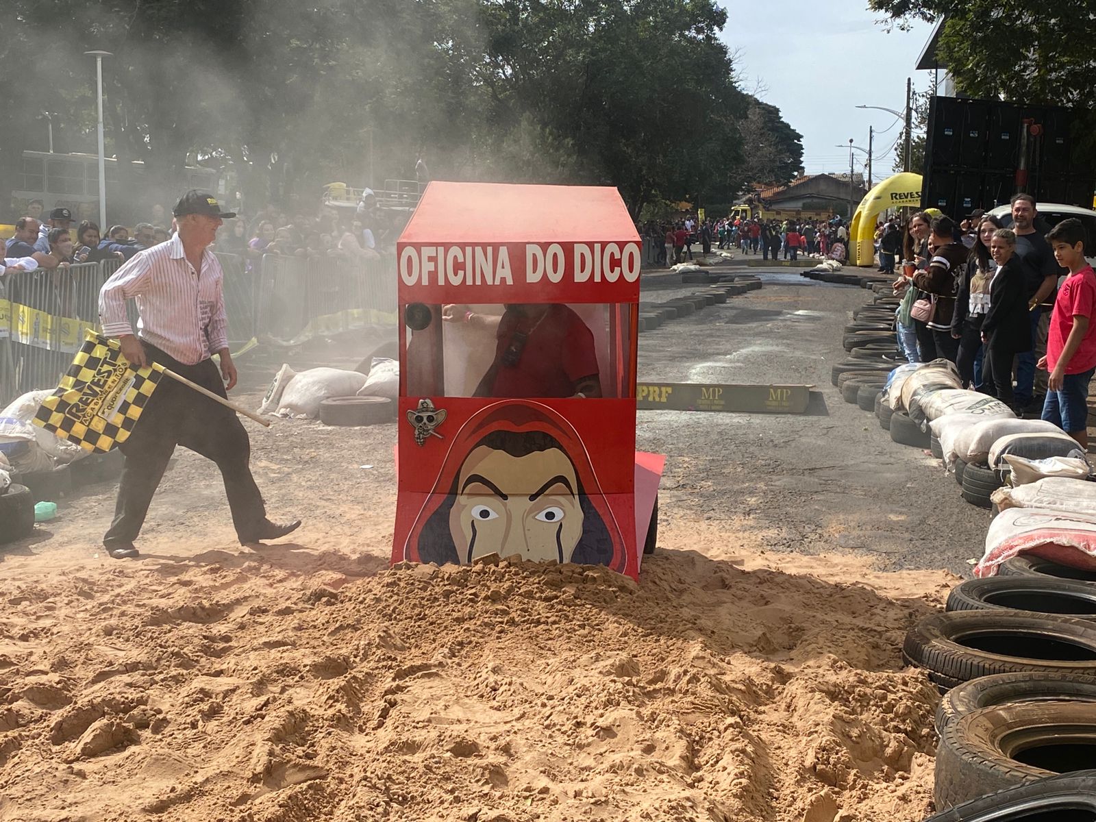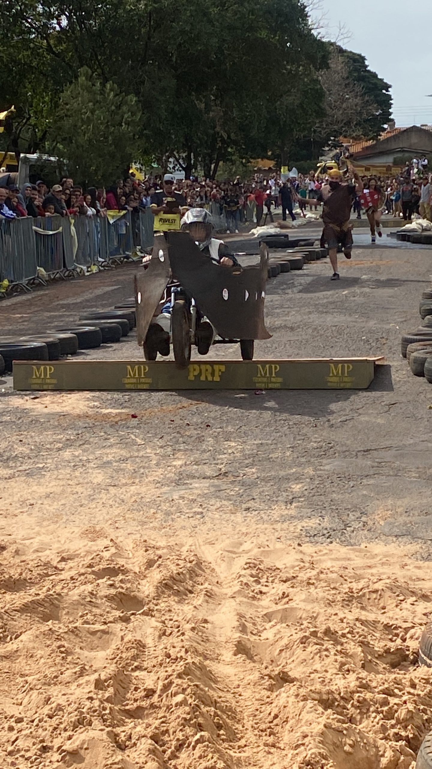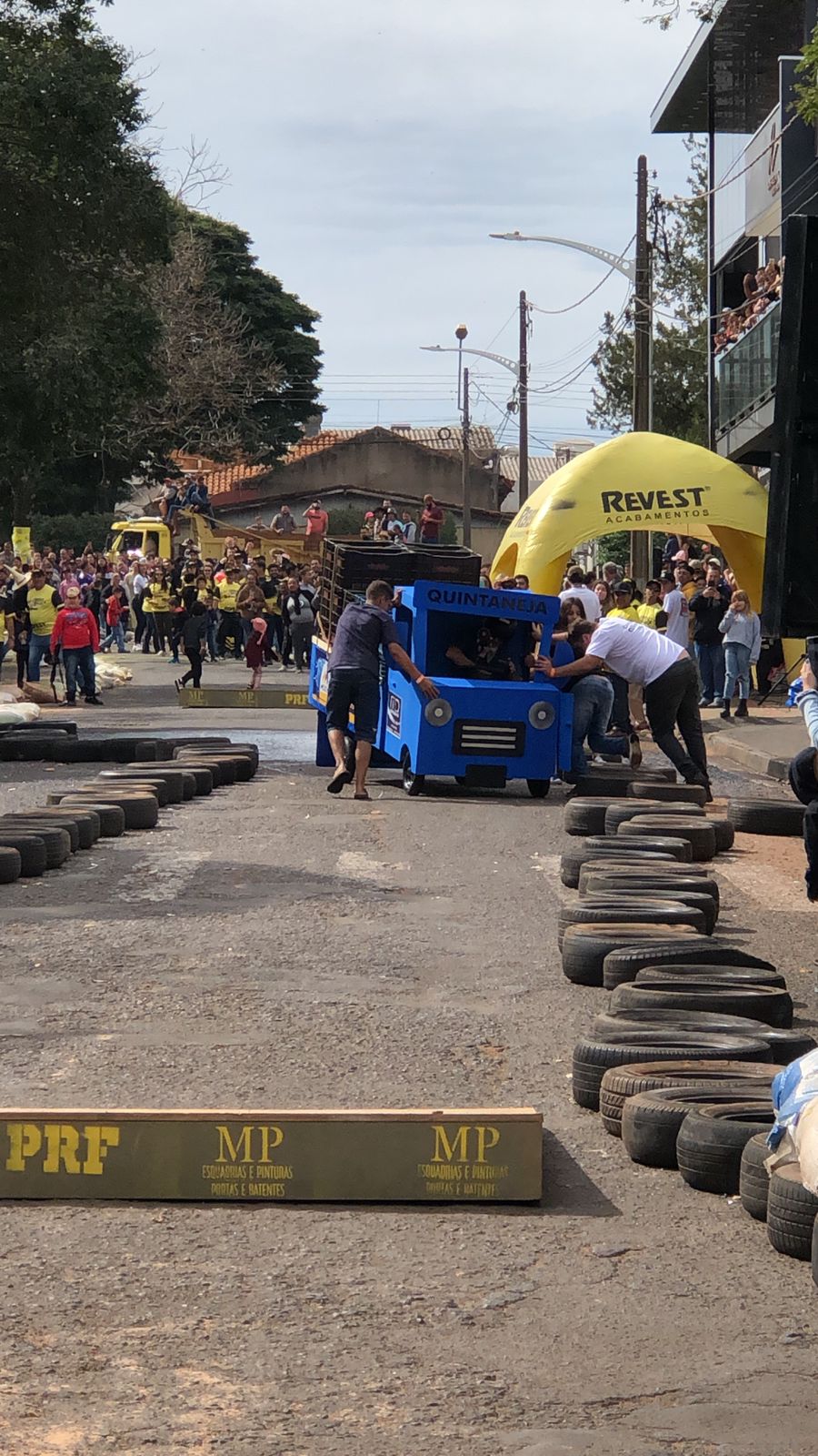A equipe “Bar Nova Geração” usou uma geladeira velha, pedaços de bicicleta, moto e até um banco de ônibus para a construção do carrinho, que levou mais de um mês para ficar pronto. Leonardo de Souza, Alexandre Soares e Fernandes Soares faziam parte da equipe que completou com êxito a decida e dispararam o modo “turbo” composta por um extintor na parte de trás.