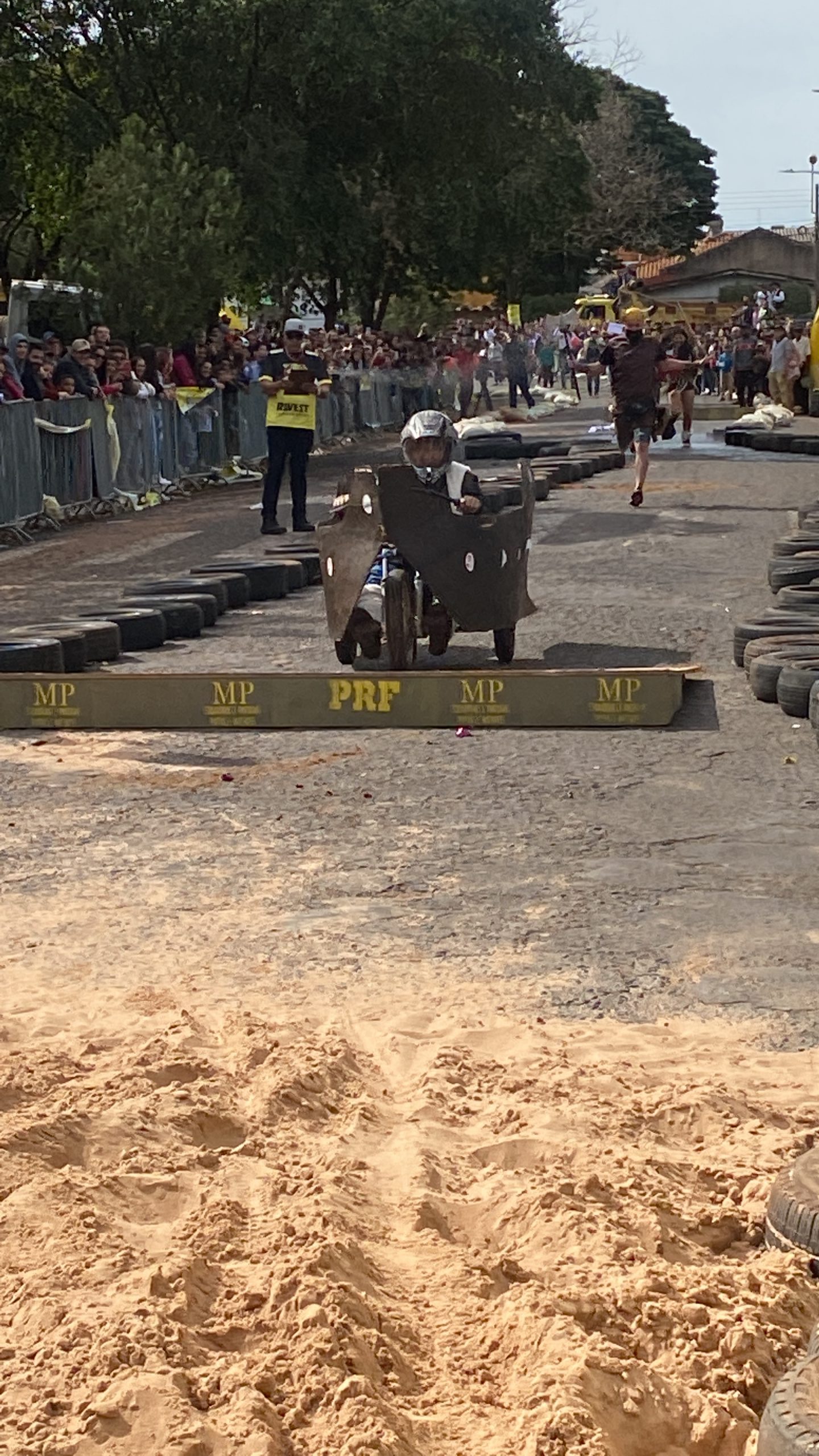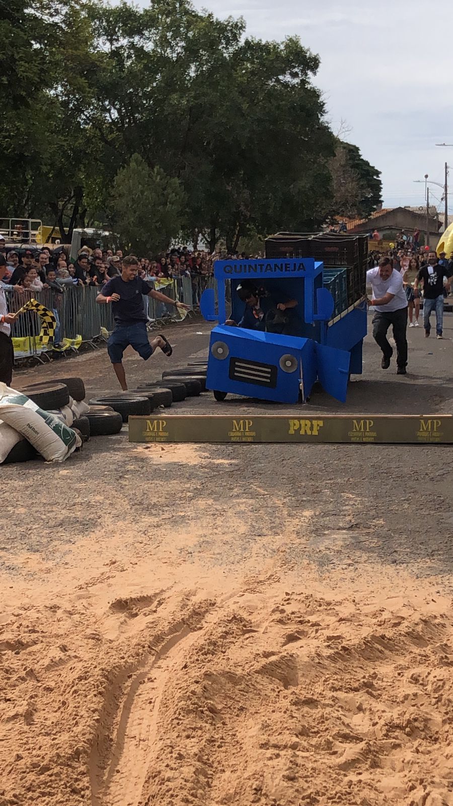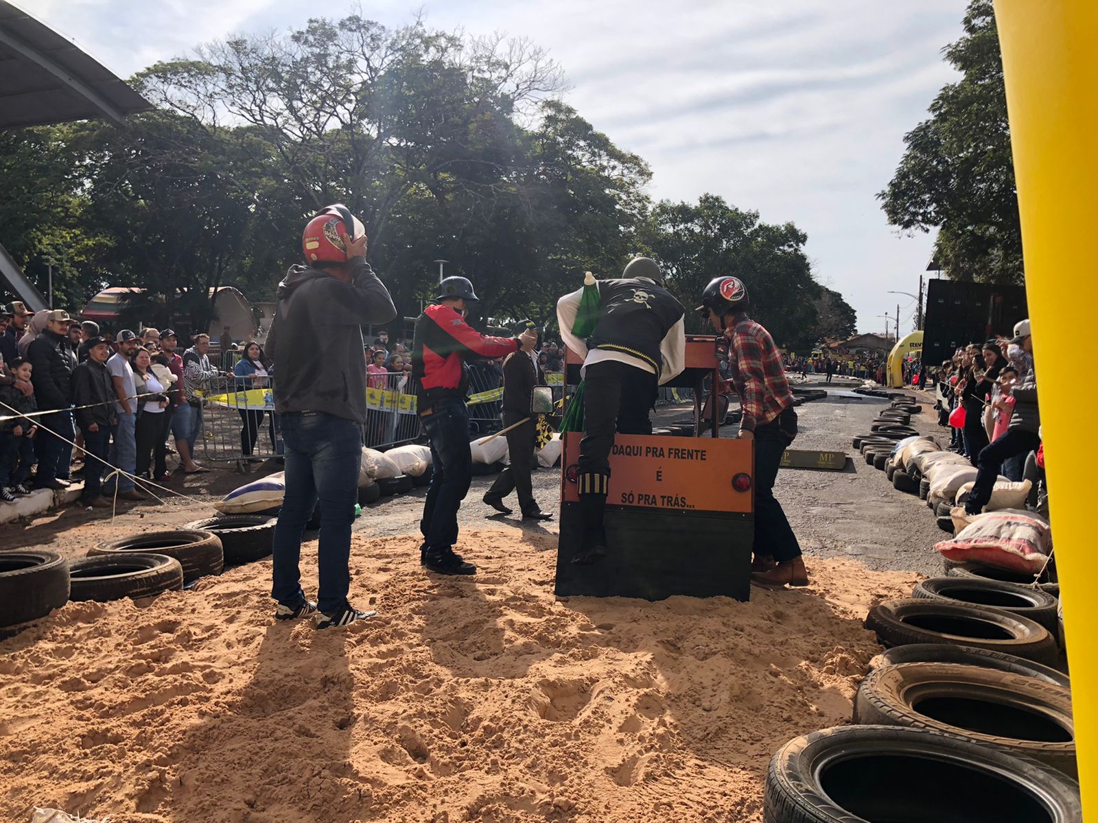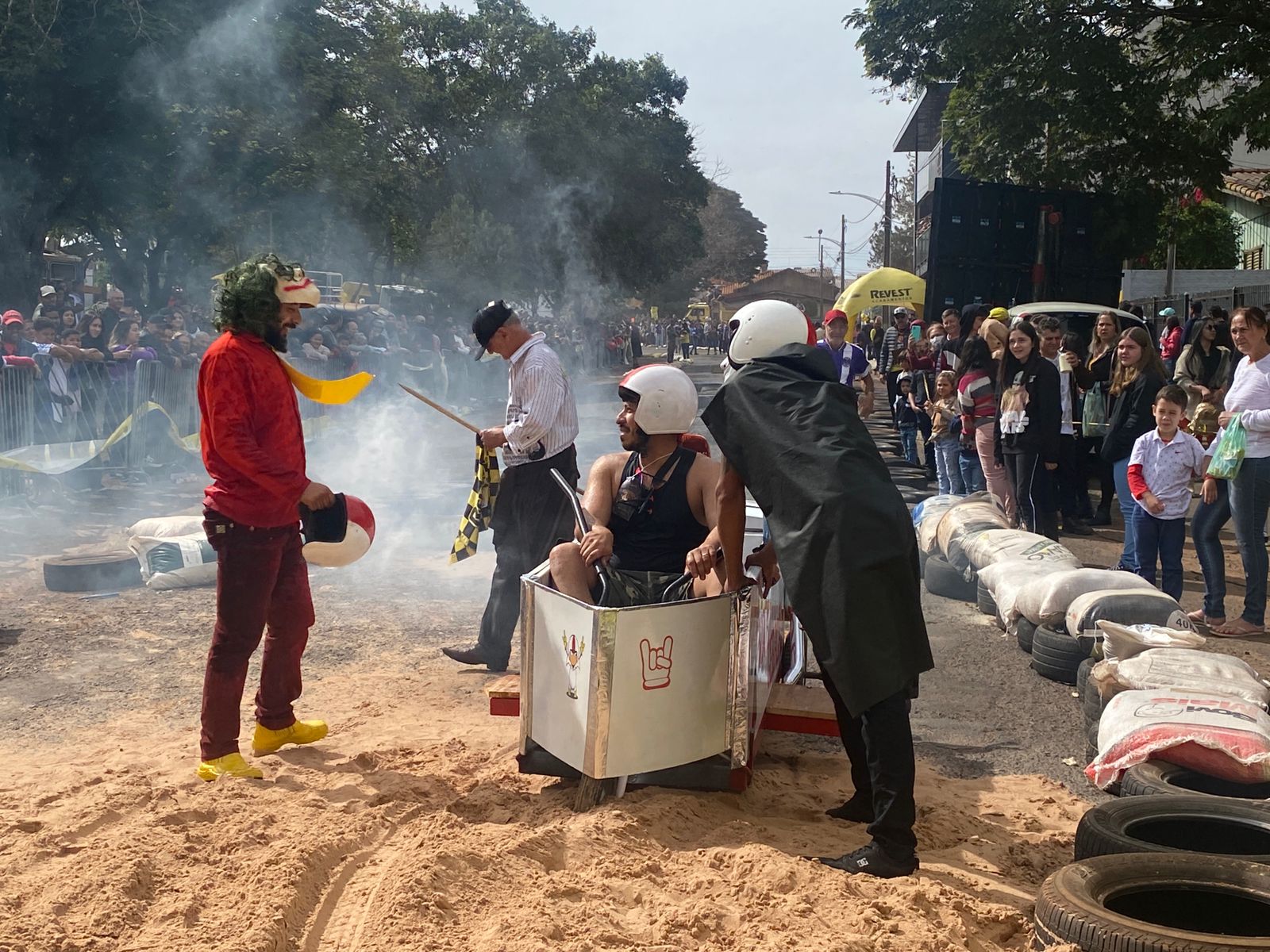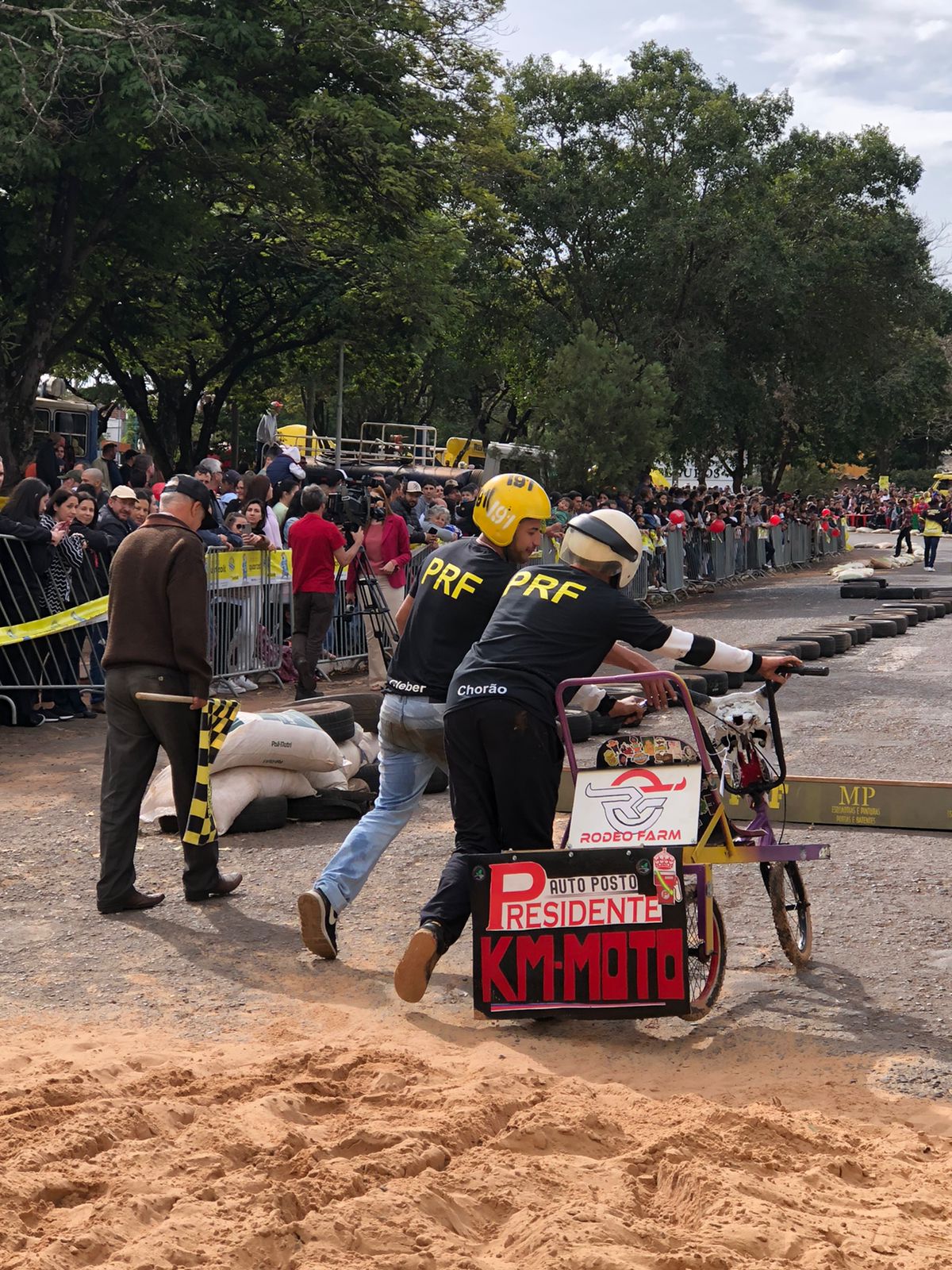 A equipe “Bar Nova Geração” usou uma geladeira velha, pedaços de bicicleta, moto e até um banco de ônibus para a construção do carrinho, que levou mais de um mês para ficar pronto. Leonardo de Souza, Alexandre Soares e Fernandes Soares faziam parte da equipe que completou com êxito a decida e dispararam o modo “turbo” composta por um extintor na parte de trás.