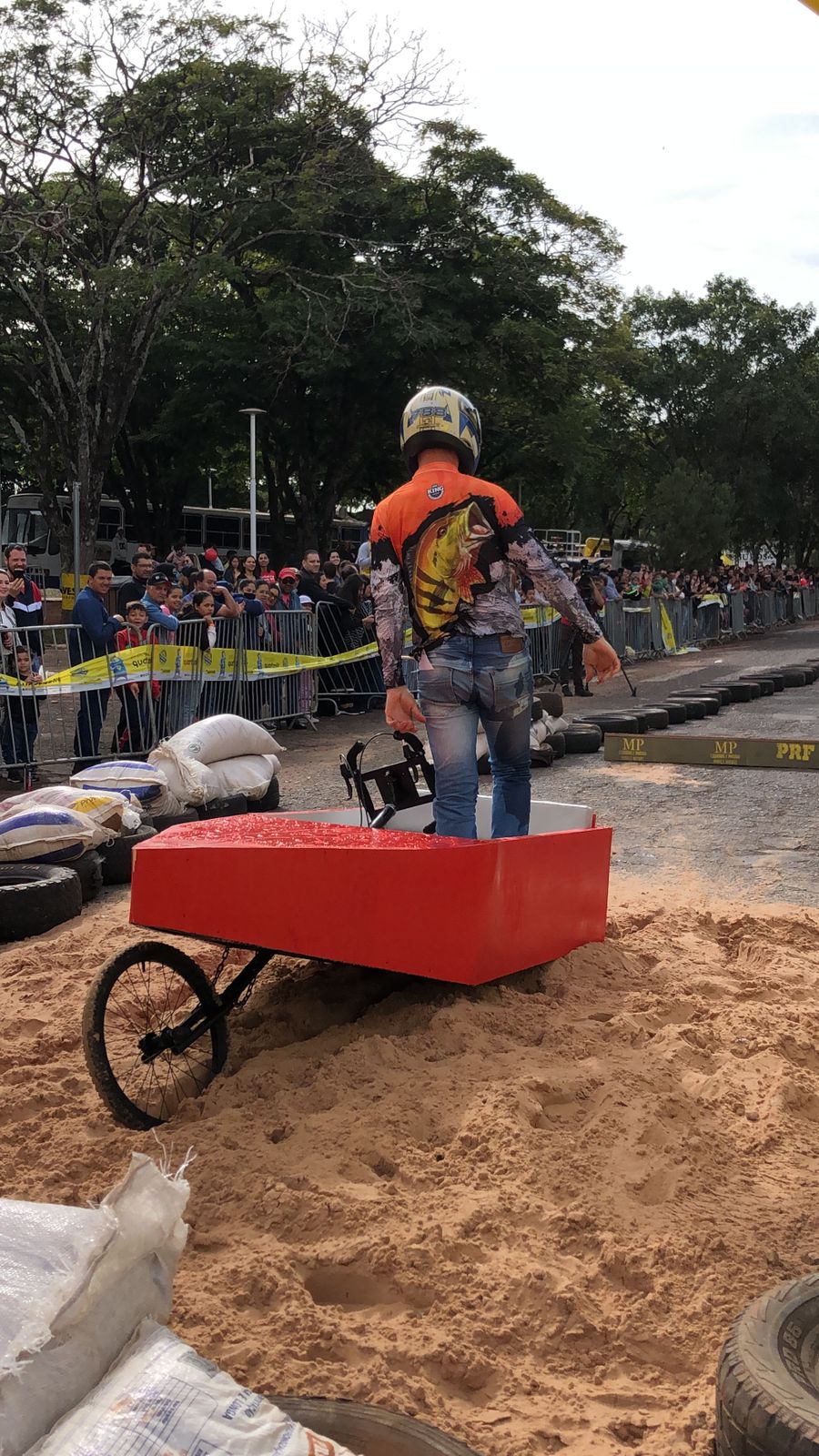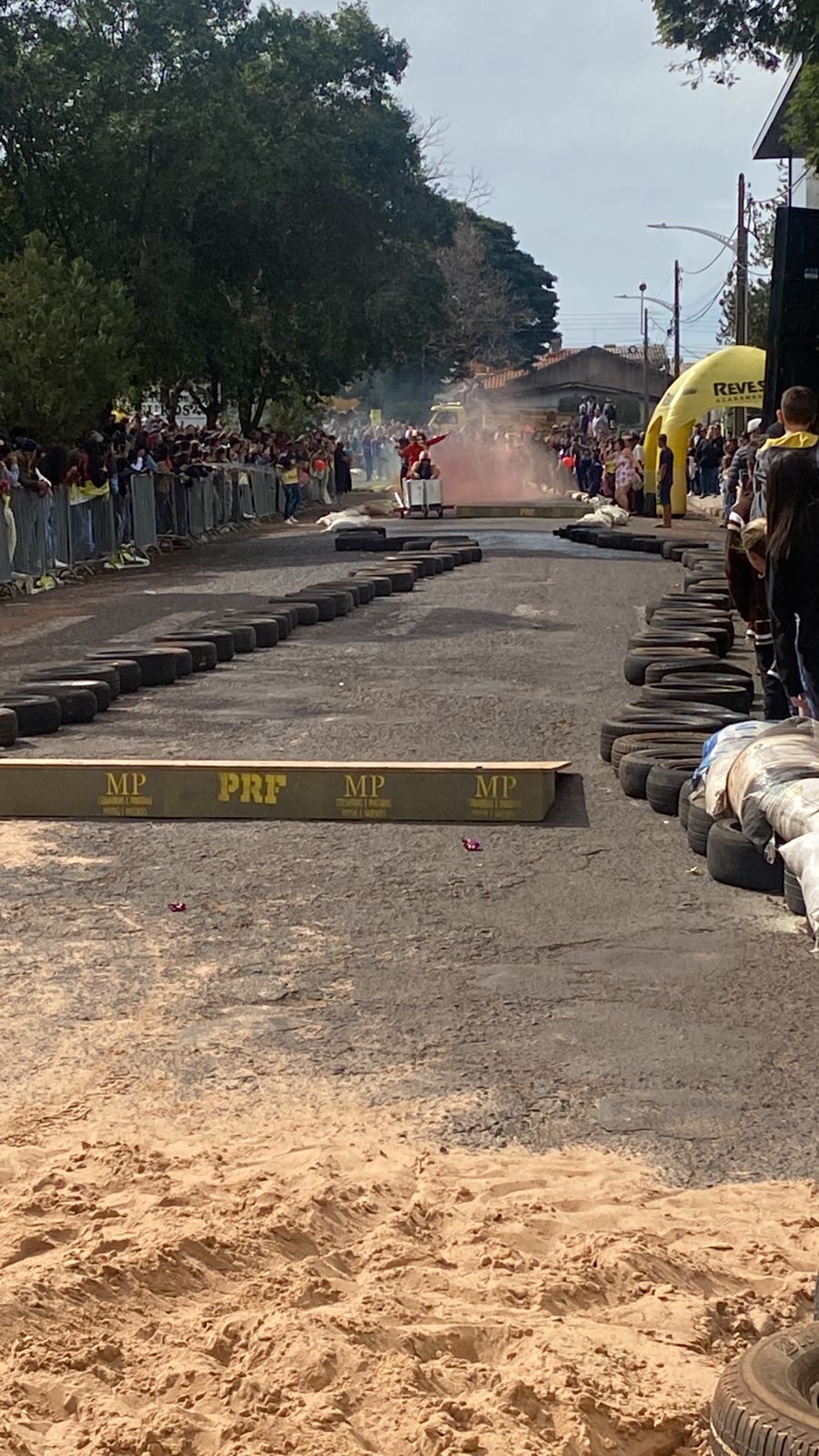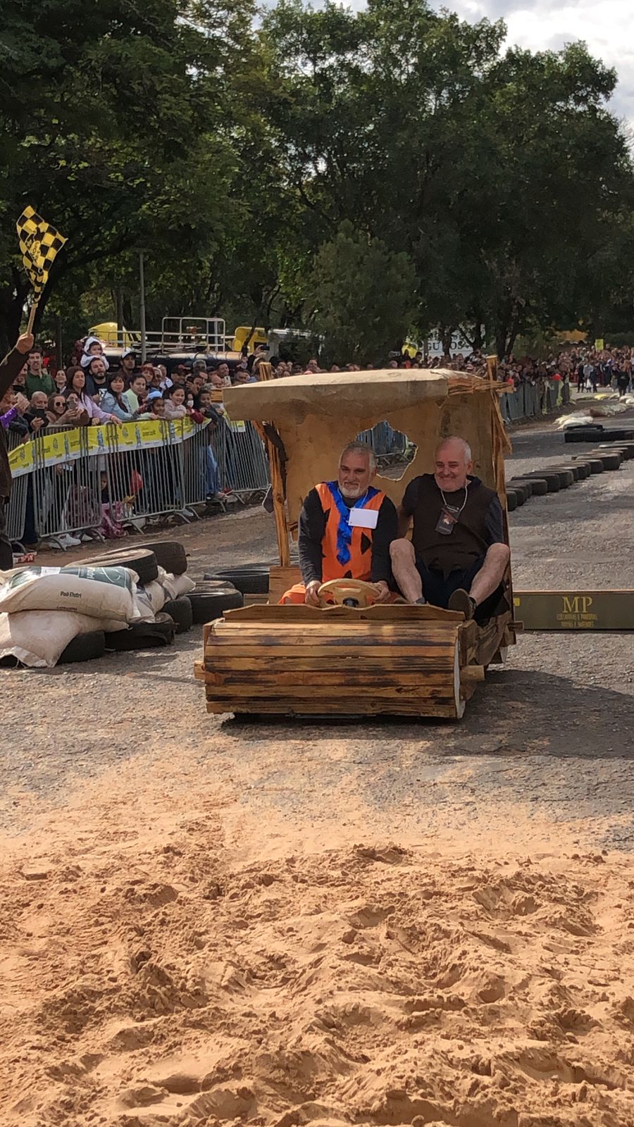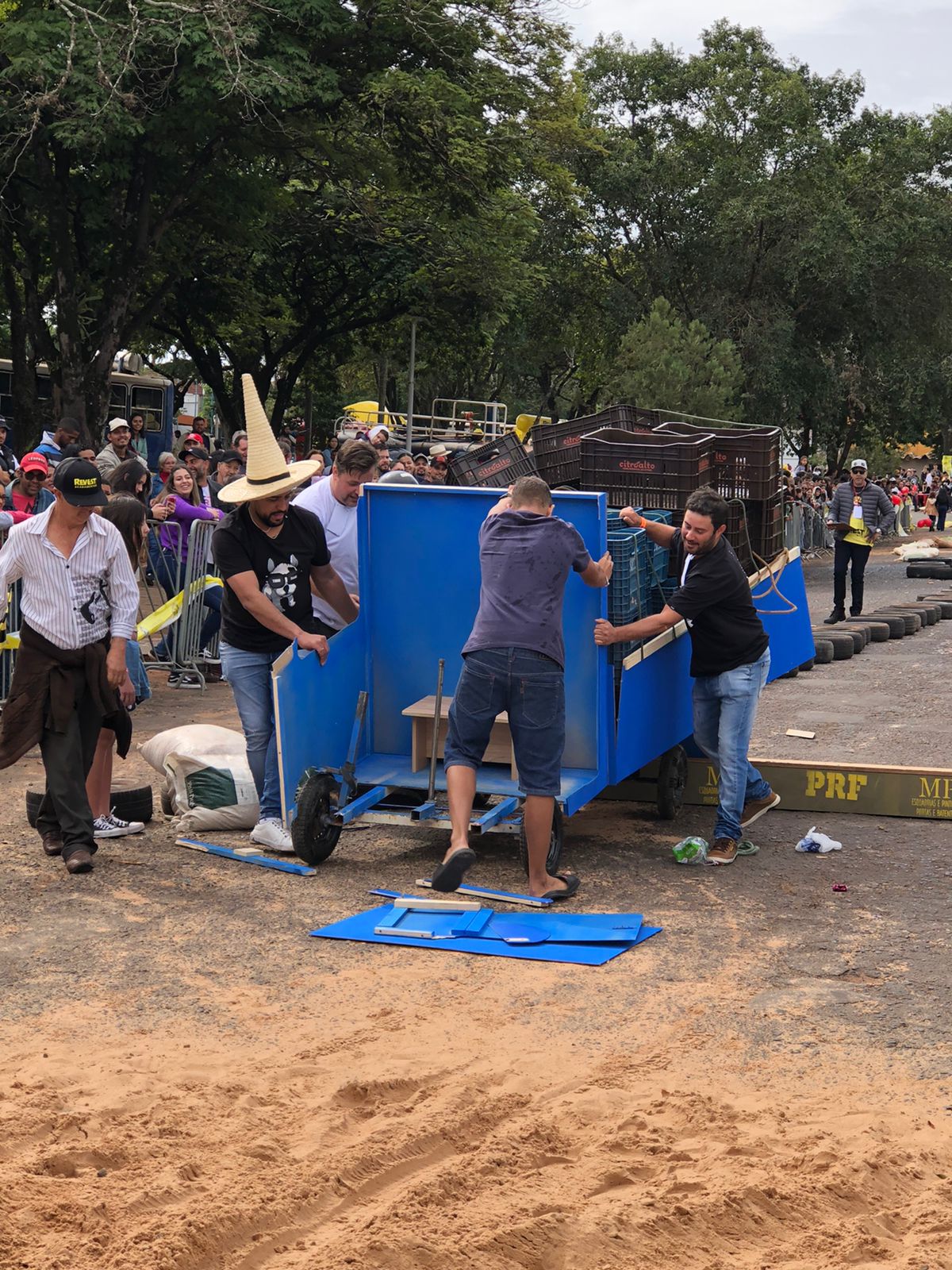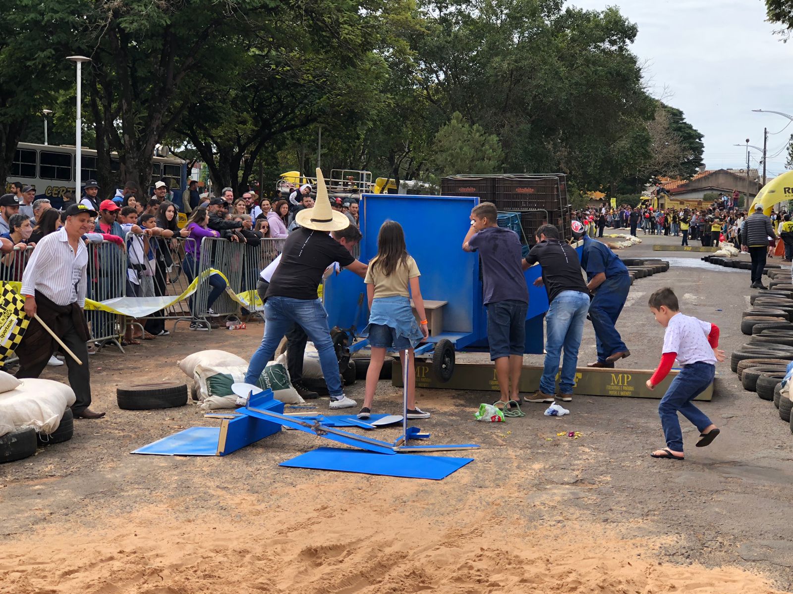 A equipe “Bar Nova Geração” usou uma geladeira velha, pedaços de bicicleta, moto e até um banco de ônibus para a construção do carrinho, que levou mais de um mês para ficar pronto. Leonardo de Souza, Alexandre Soares e Fernandes Soares faziam parte da equipe que completou com êxito a decida e dispararam o modo “turbo” composta por um extintor na parte de trás.