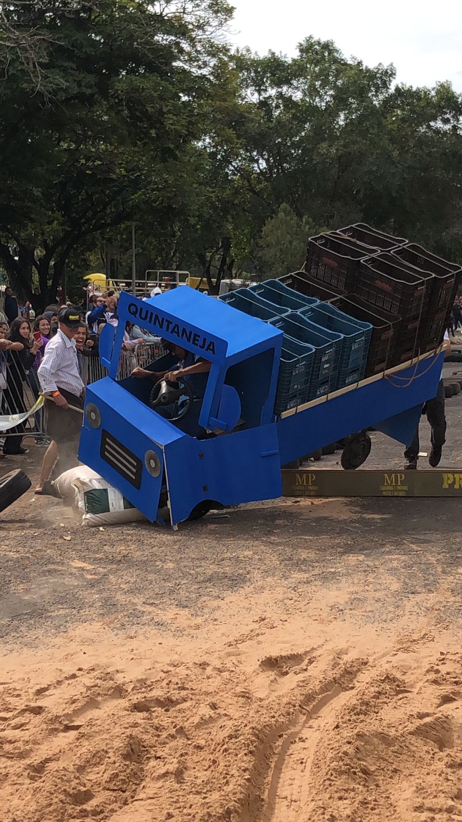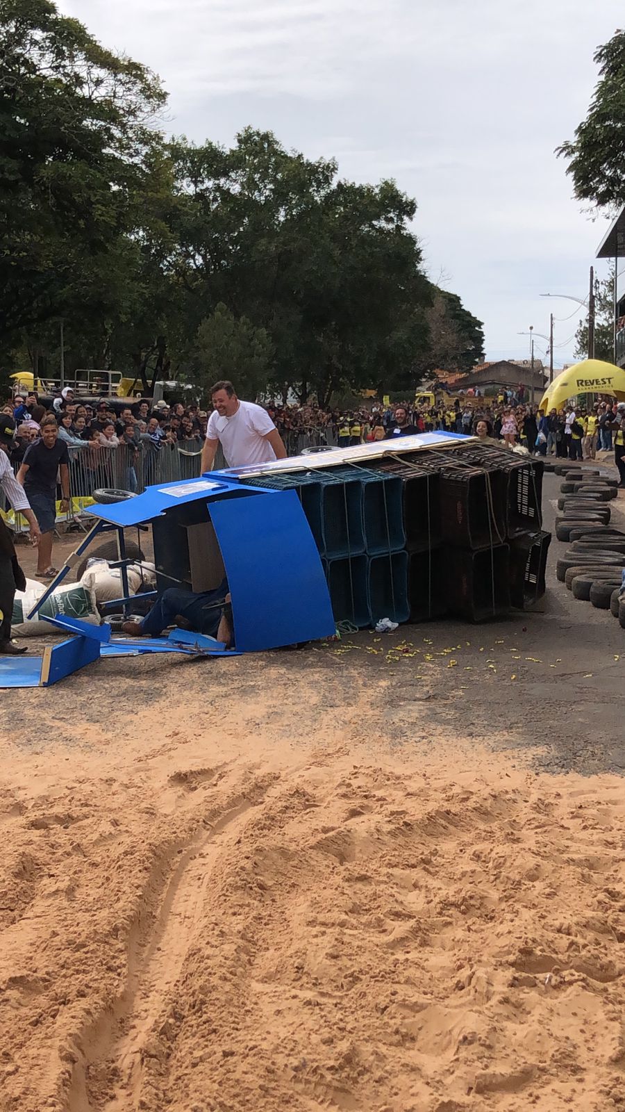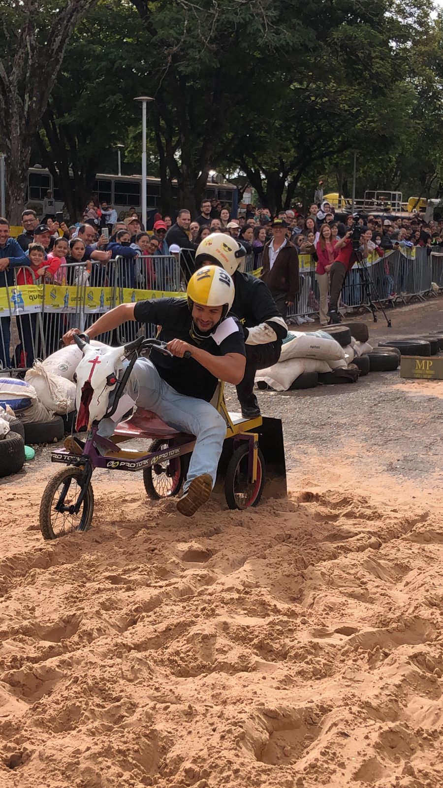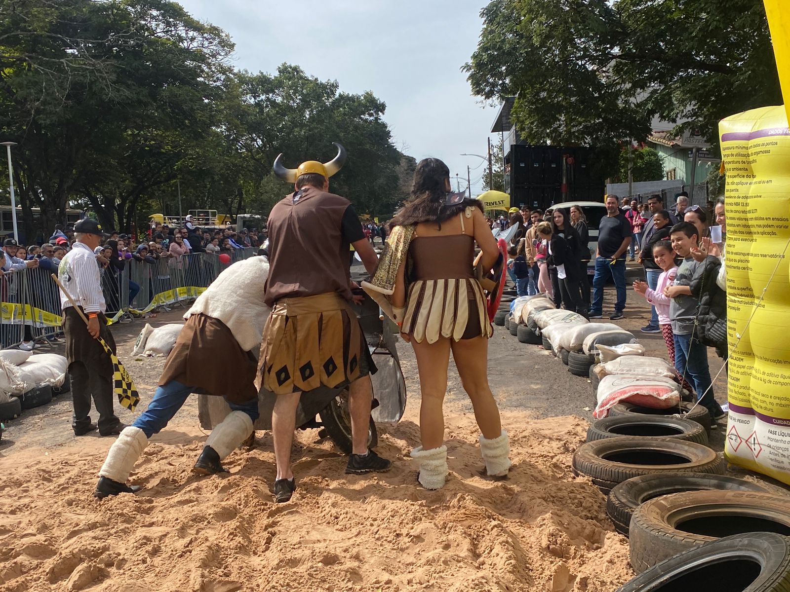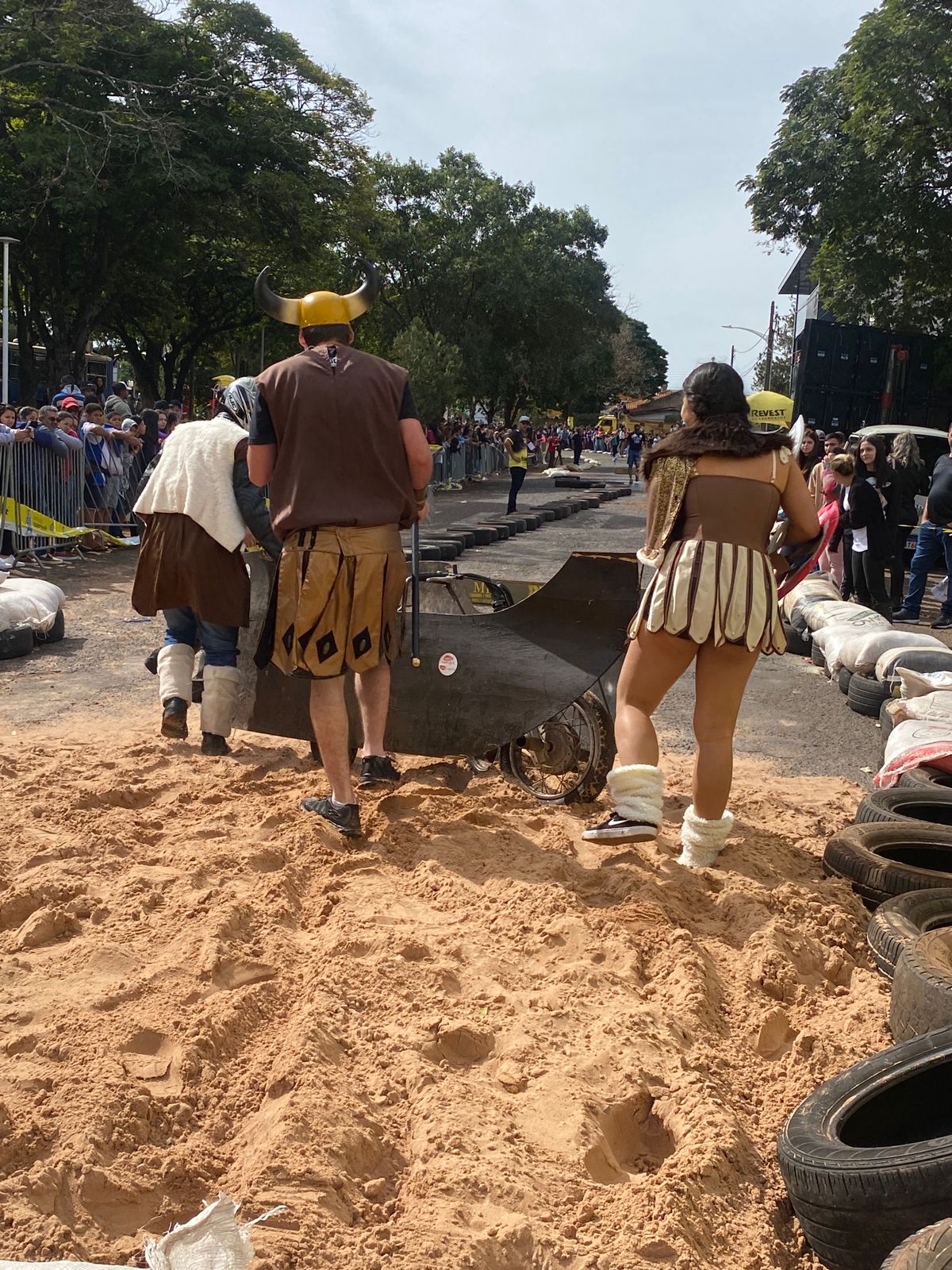 A equipe “Bar Nova Geração” usou uma geladeira velha, pedaços de bicicleta, moto e até um banco de ônibus para a construção do carrinho, que levou mais de um mês para ficar pronto. Leonardo de Souza, Alexandre Soares e Fernandes Soares faziam parte da equipe que completou com êxito a decida e dispararam o modo “turbo” composta por um extintor na parte de trás.