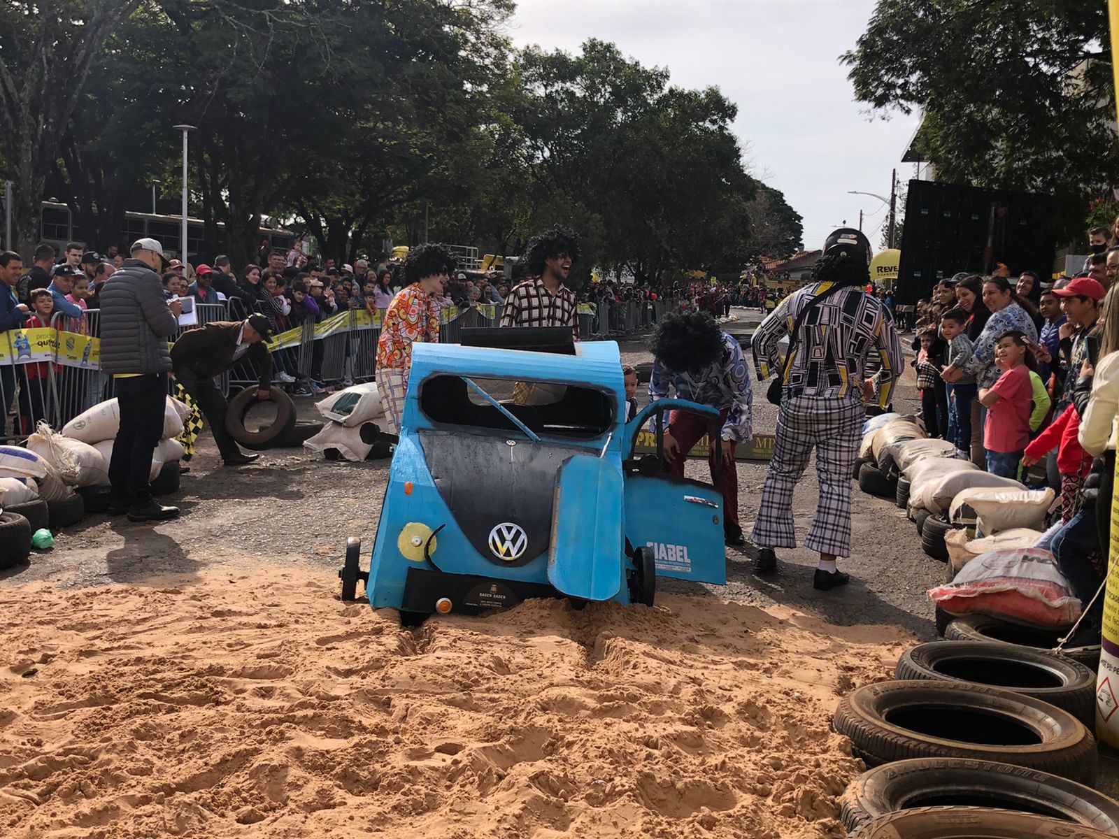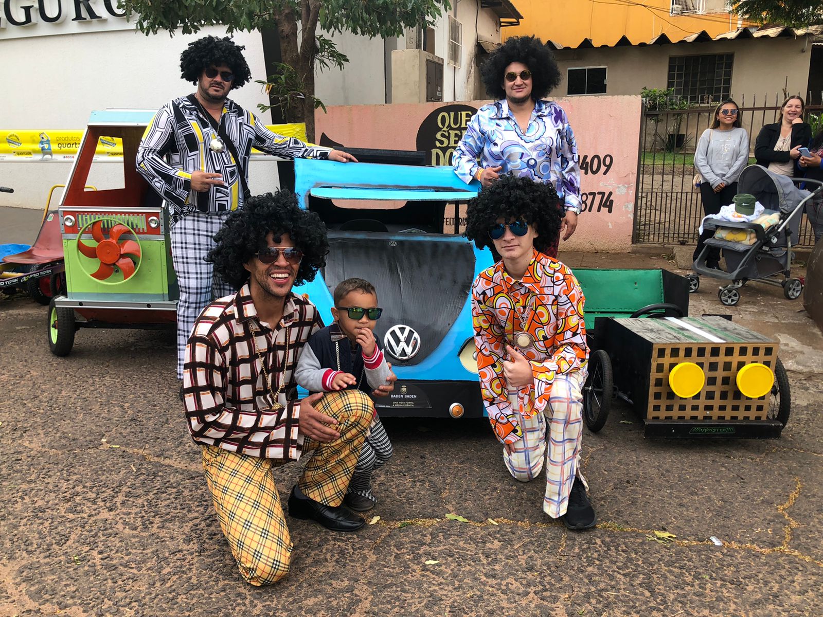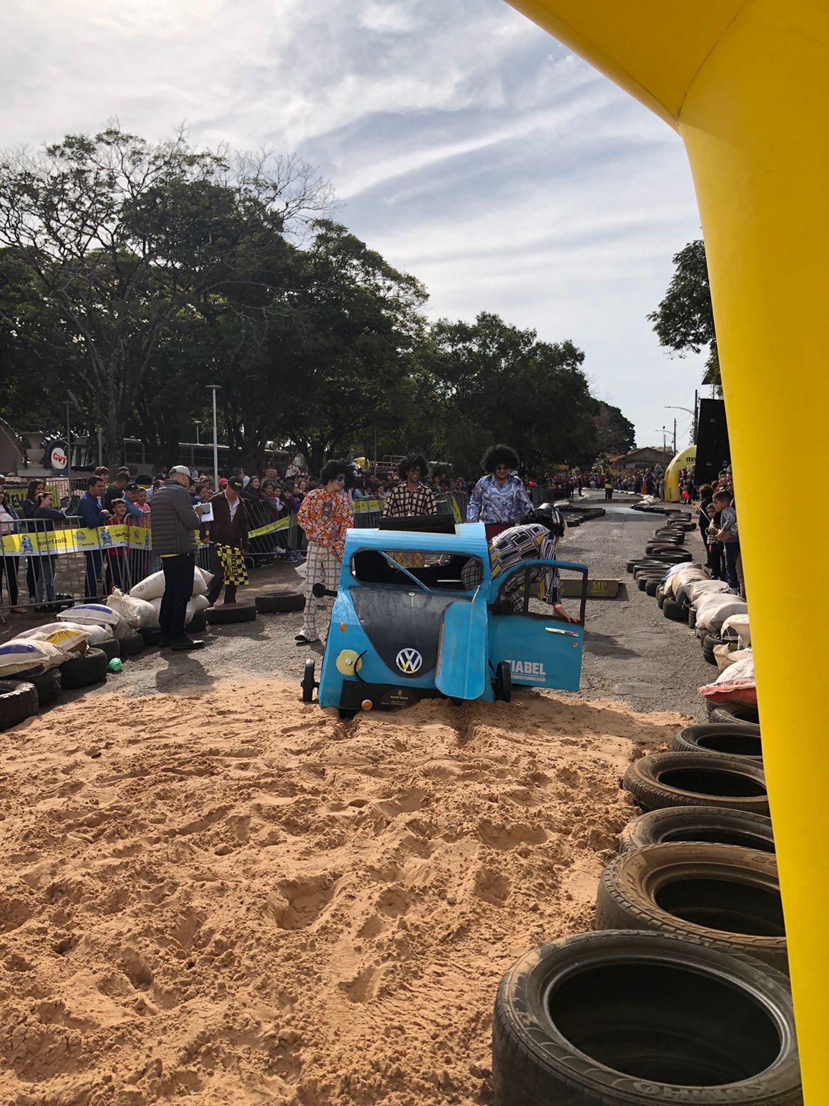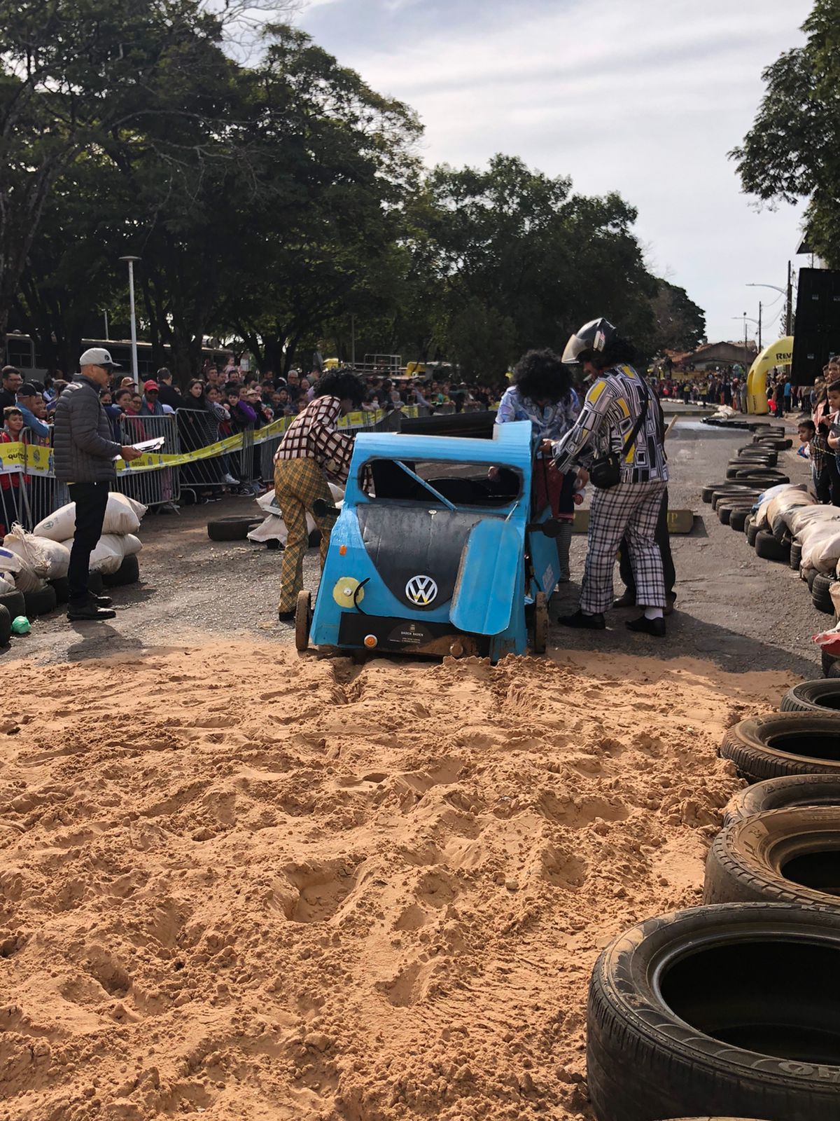 Outro carro que chamou bastante atenção de quem passava por ali foi o fusquinha azul, da equipe Os Herbes. Inspirados no filme, eles fizeram a estrutura toda de madeira e o acabamento inteiro em papelão. O volante foi soldado por um dos participantes que utilizou correntes para dar vida ao carro.