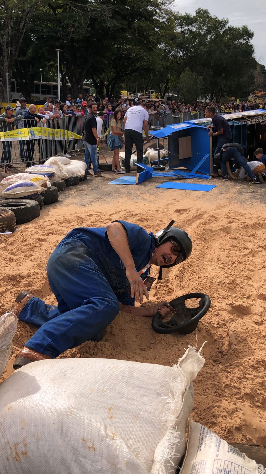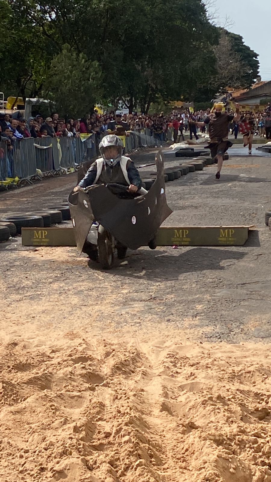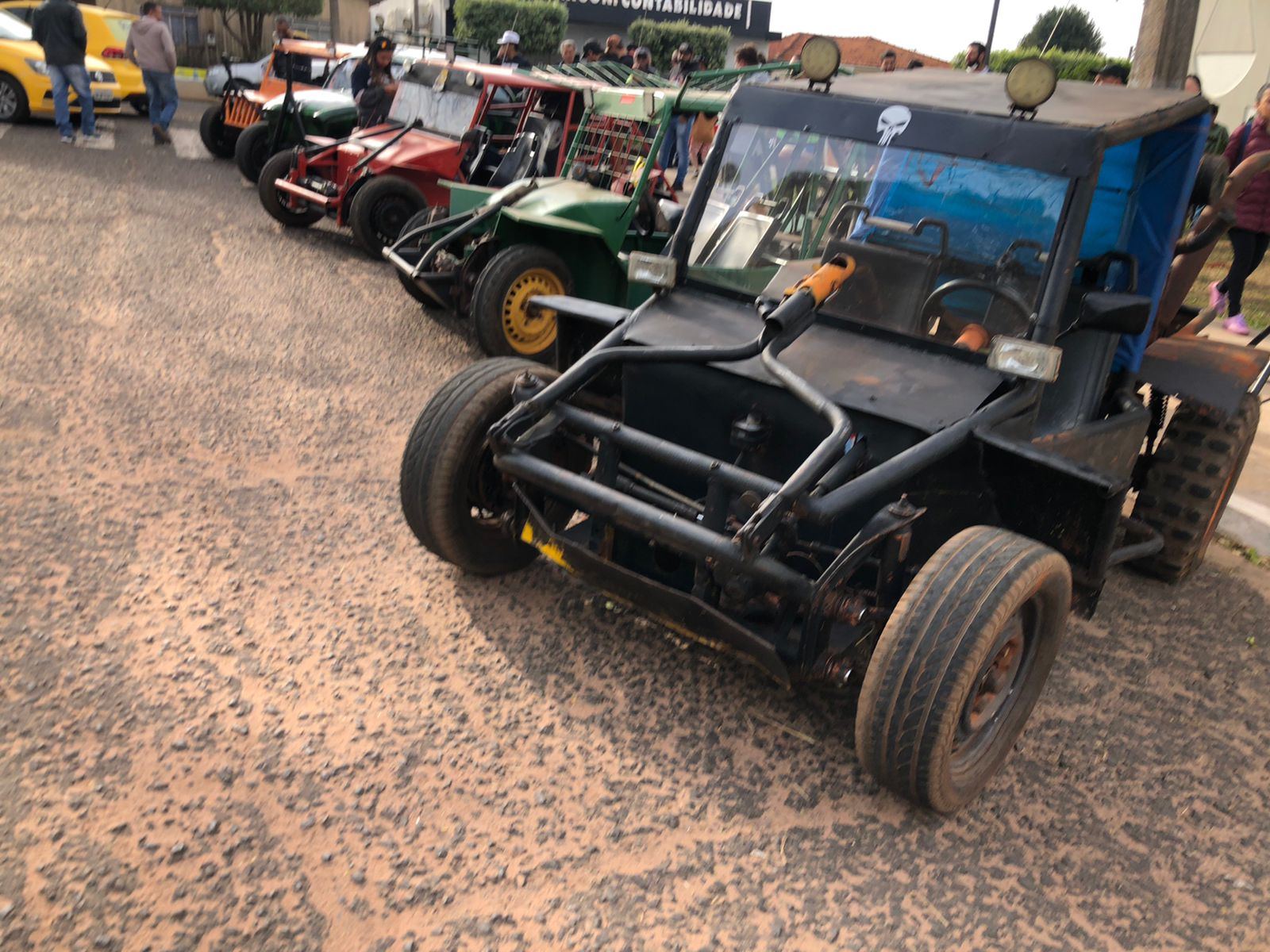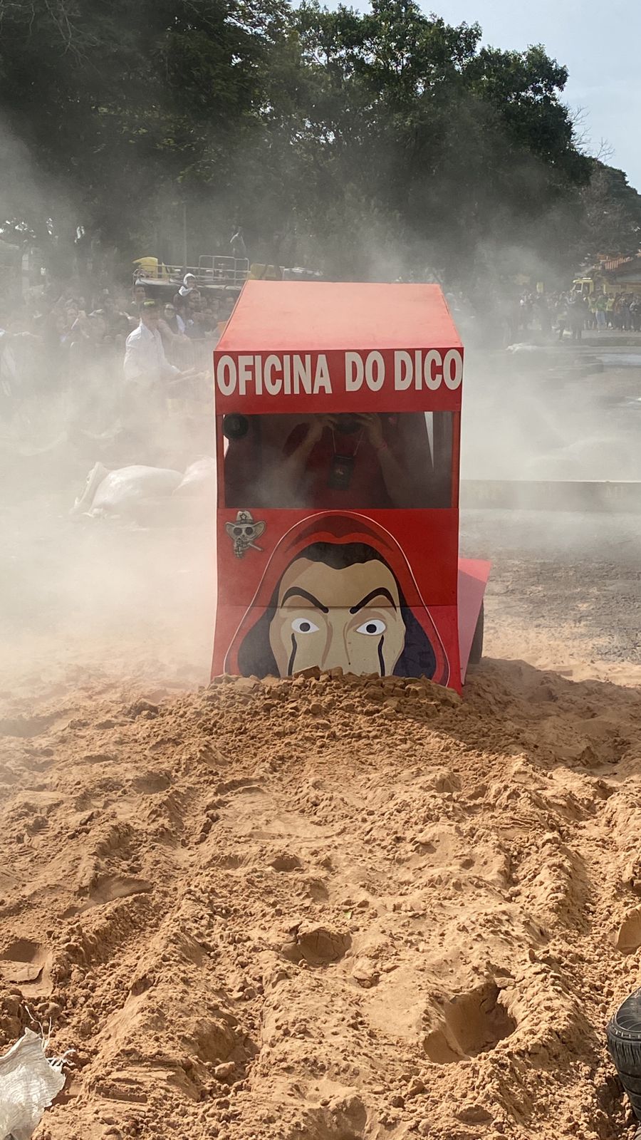 Outro carro que chamou bastante atenção de quem passava por ali foi o fusquinha azul, da equipe Os Herbes. Inspirados no filme, eles fizeram a estrutura toda de madeira e o acabamento inteiro em papelão. O volante foi soldado por um dos participantes que utilizou correntes para dar vida ao carro.