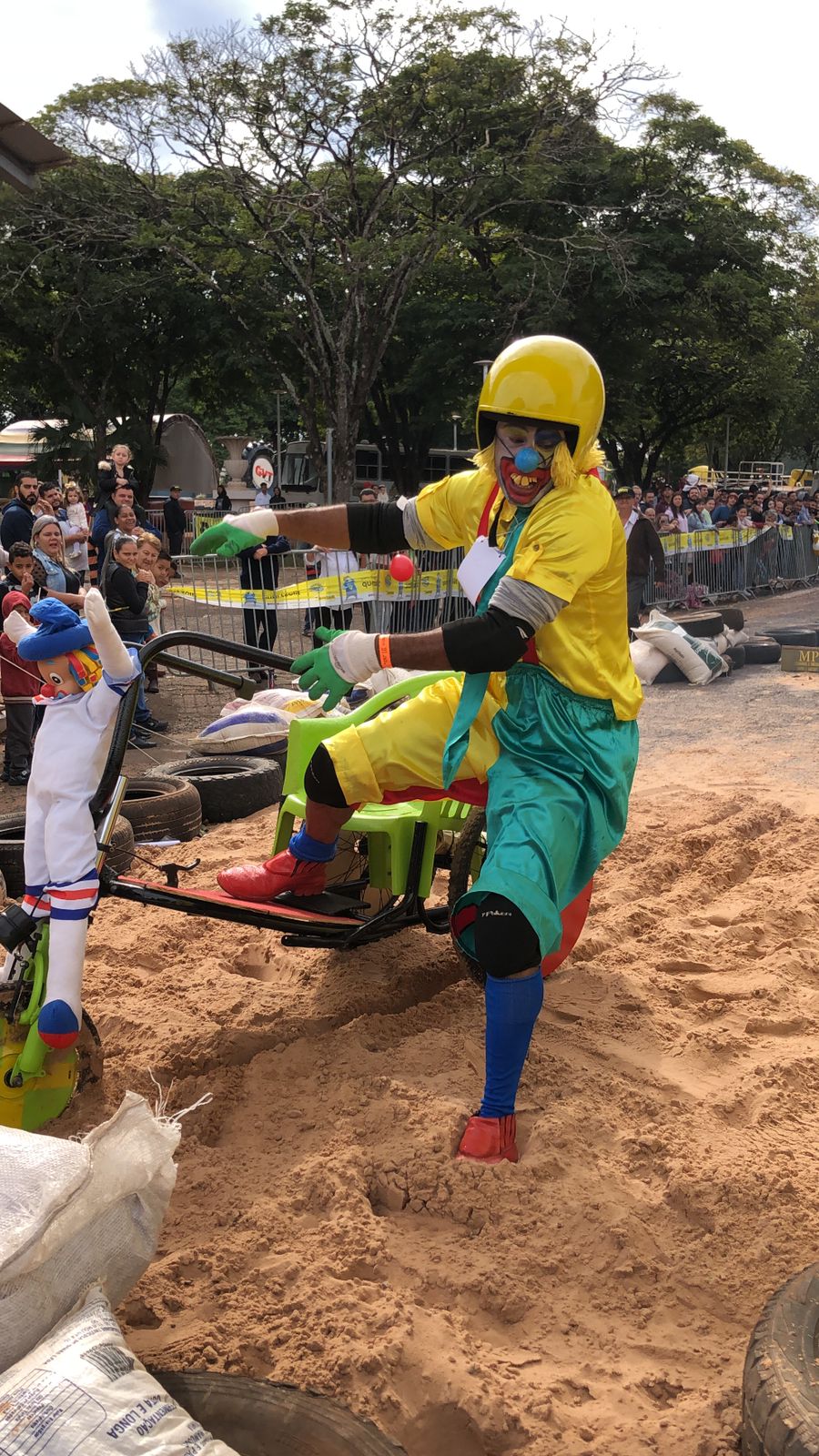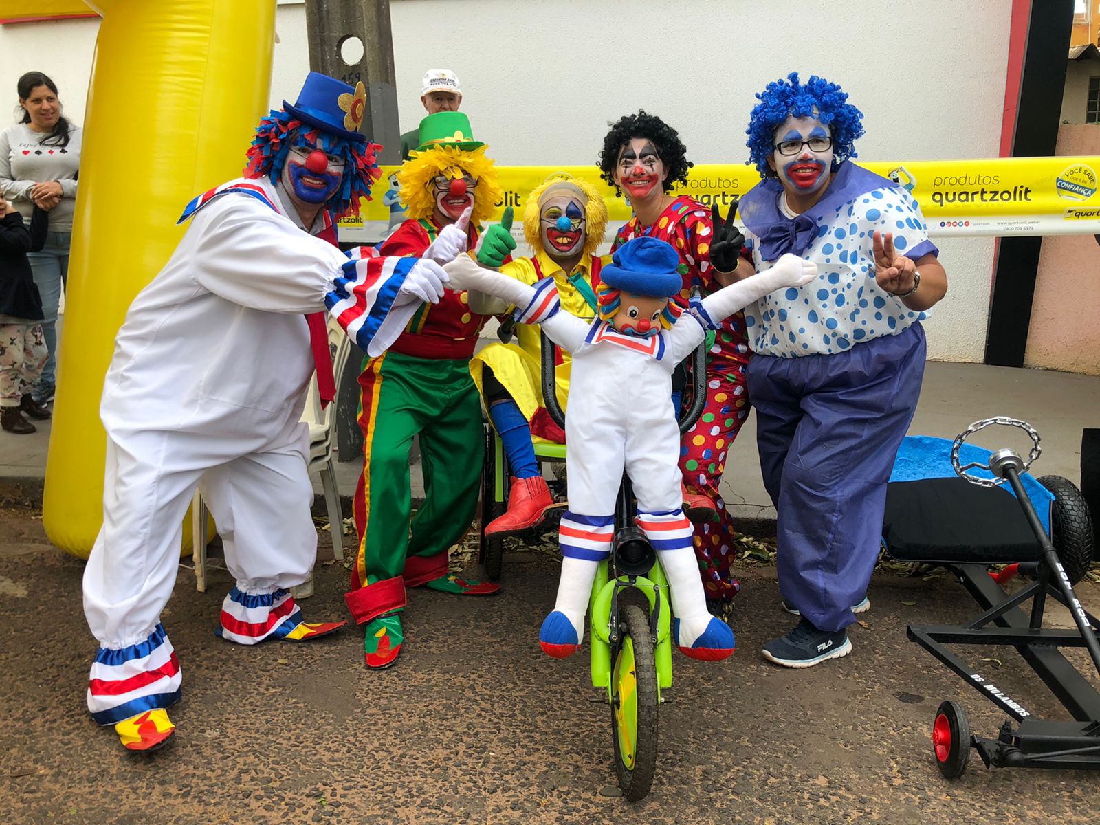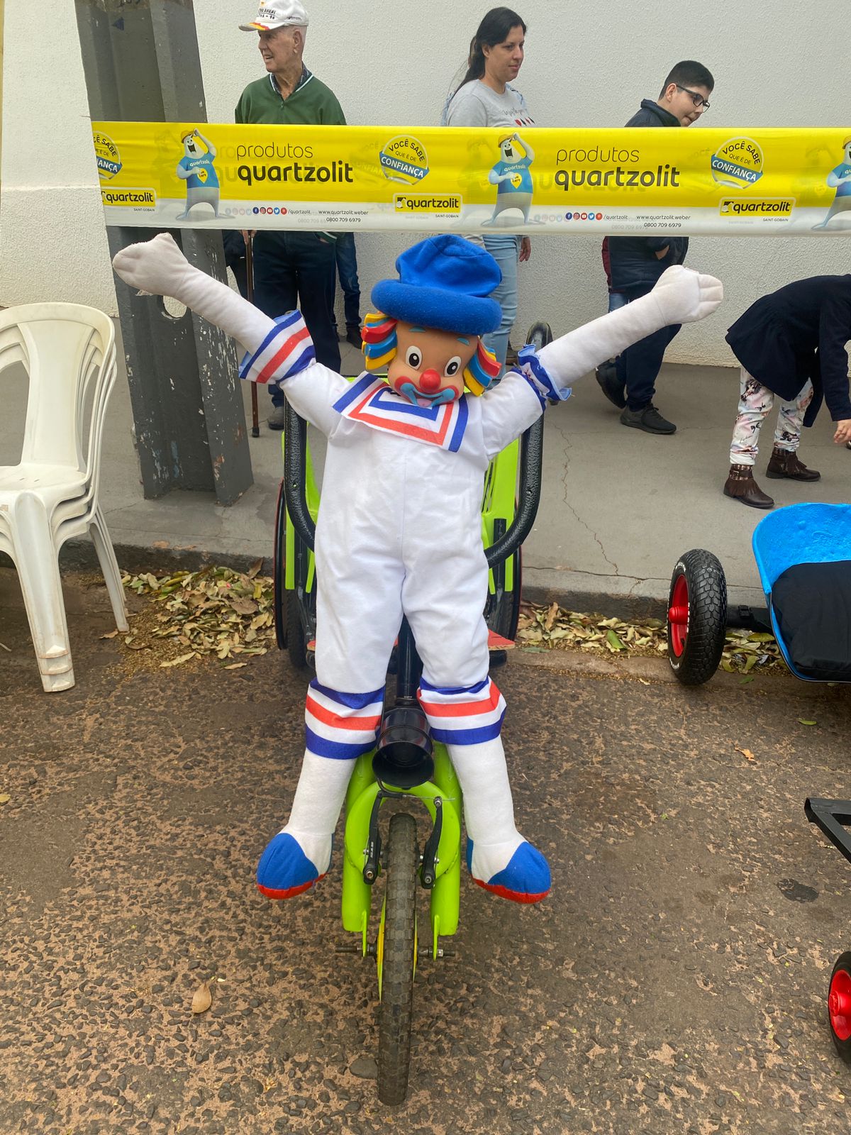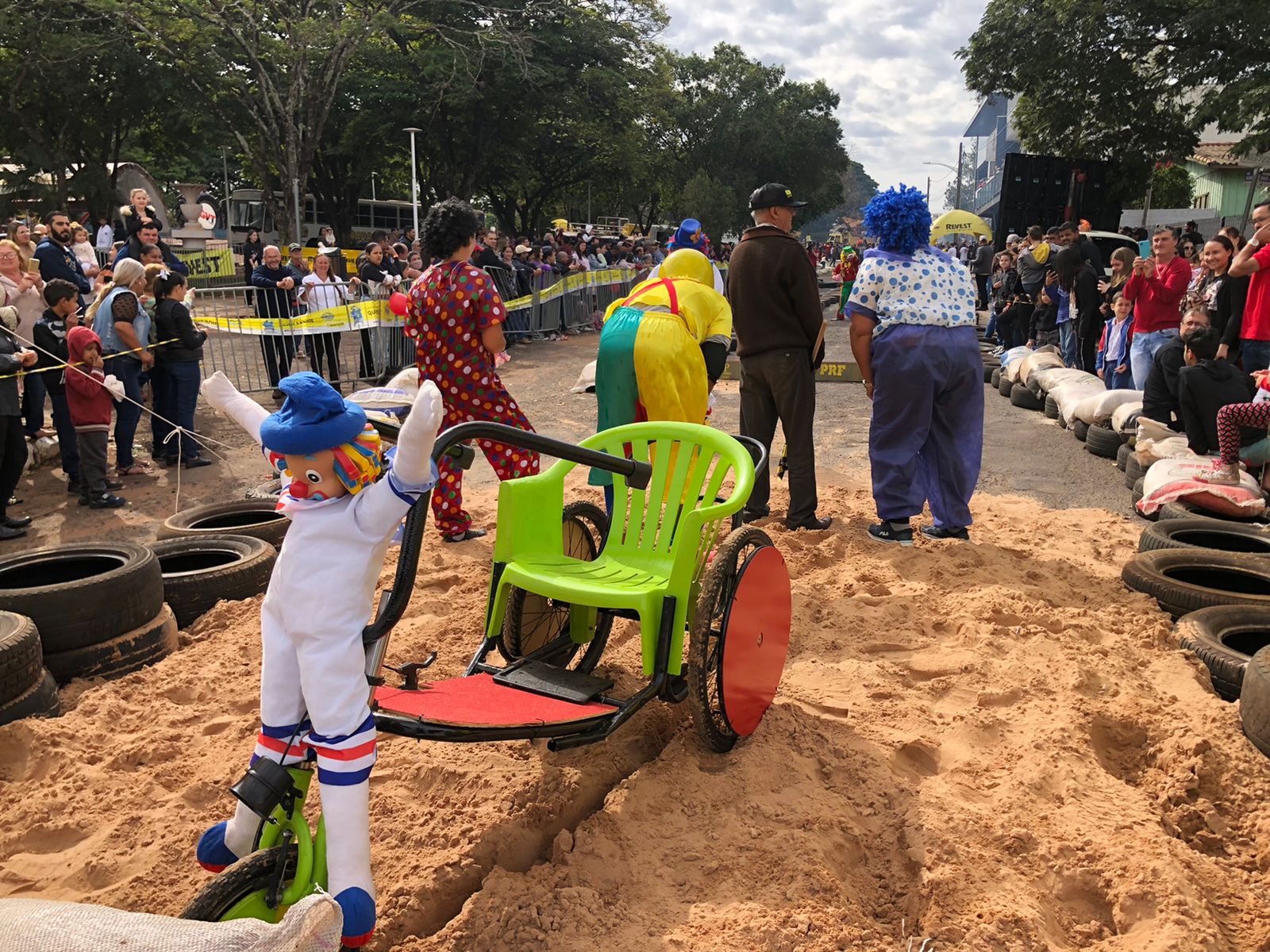 Funcionários da APAE de Alto Paraná marcaram presença vestidos de Patati e Patatá, palhaços queridos pela garotada. Segundo os membros da equipe, a ideia era chamar a atenção das famílias e levar um pouco de alegria para o evento. Jesse Eduardo, Cida Catarino, Jaqueline Gracioto, Márcio Calixto e Aparecida Calixto compuseram o time que usou de cadeira de rodas adaptada para banho, peças de bicicleta e cadeiras velhas. Eles conseguiram fazer tudo em uma semana.