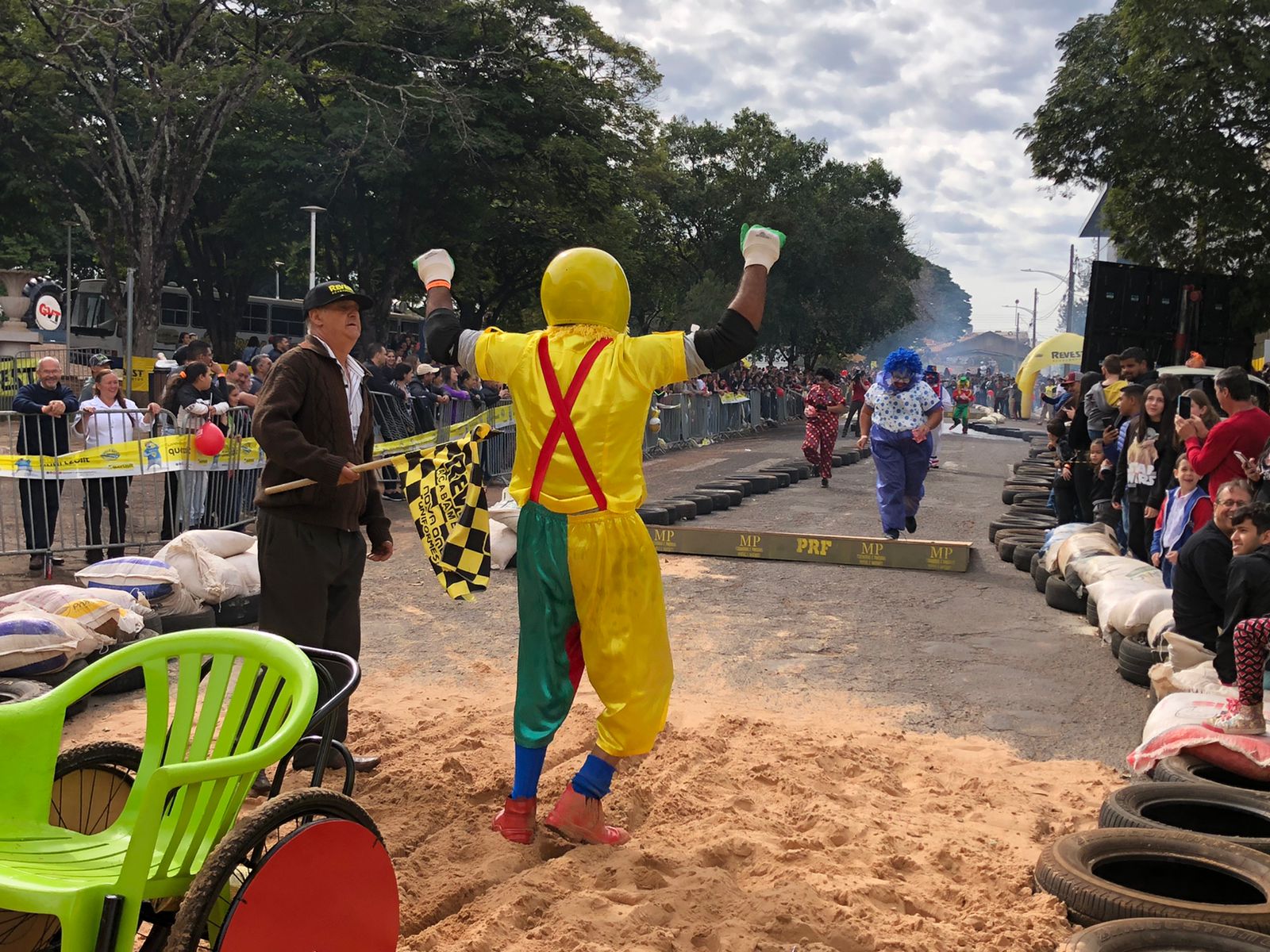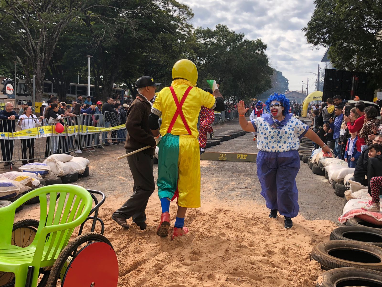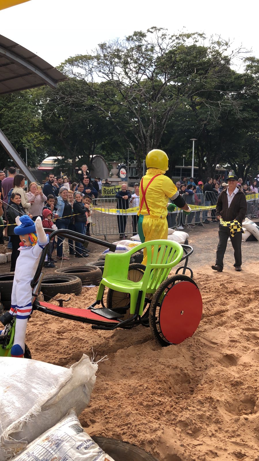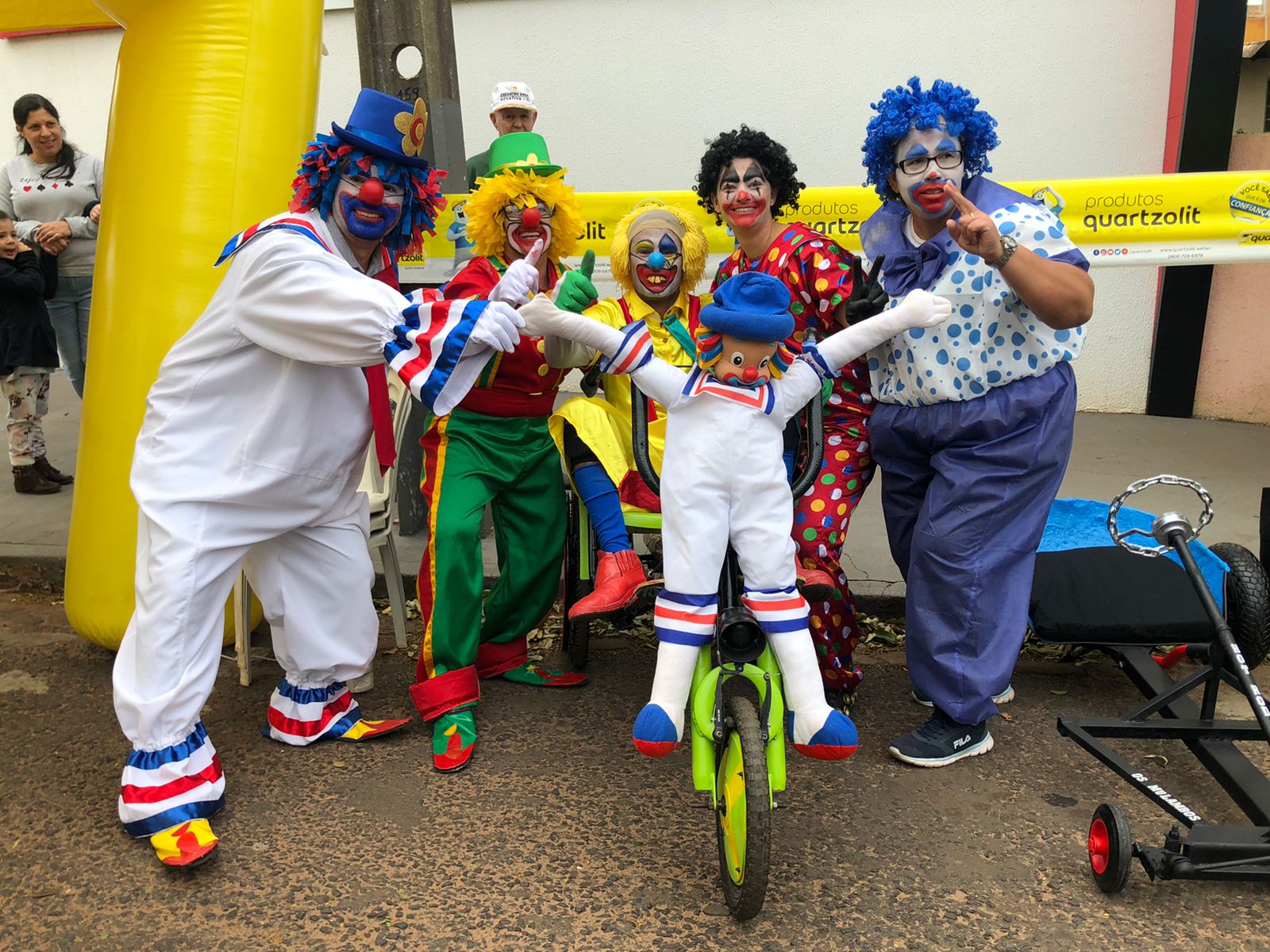 Funcionários da APAE de Alto Paraná marcaram presença vestidos de Patati e Patatá, palhaços queridos pela garotada. Segundo os membros da equipe, a ideia era chamar a atenção das famílias e levar um pouco de alegria para o evento. Jesse Eduardo, Cida Catarino, Jaqueline Gracioto, Márcio Calixto e Aparecida Calixto compuseram o time que usou de cadeira de rodas adaptada para banho, peças de bicicleta e cadeiras velhas. Eles conseguiram fazer tudo em uma semana.