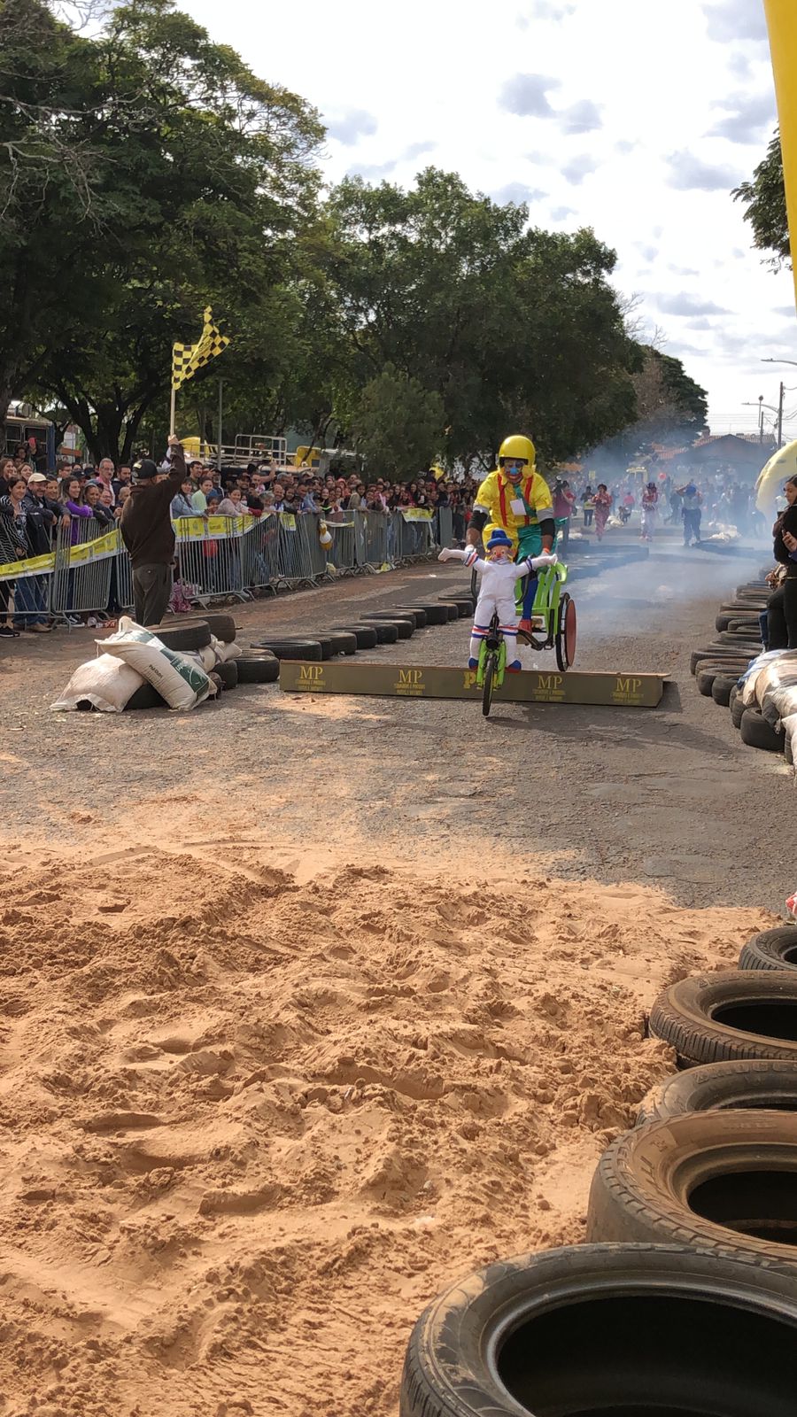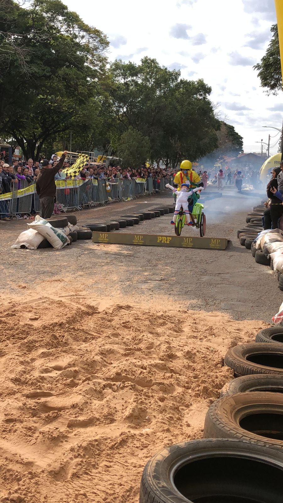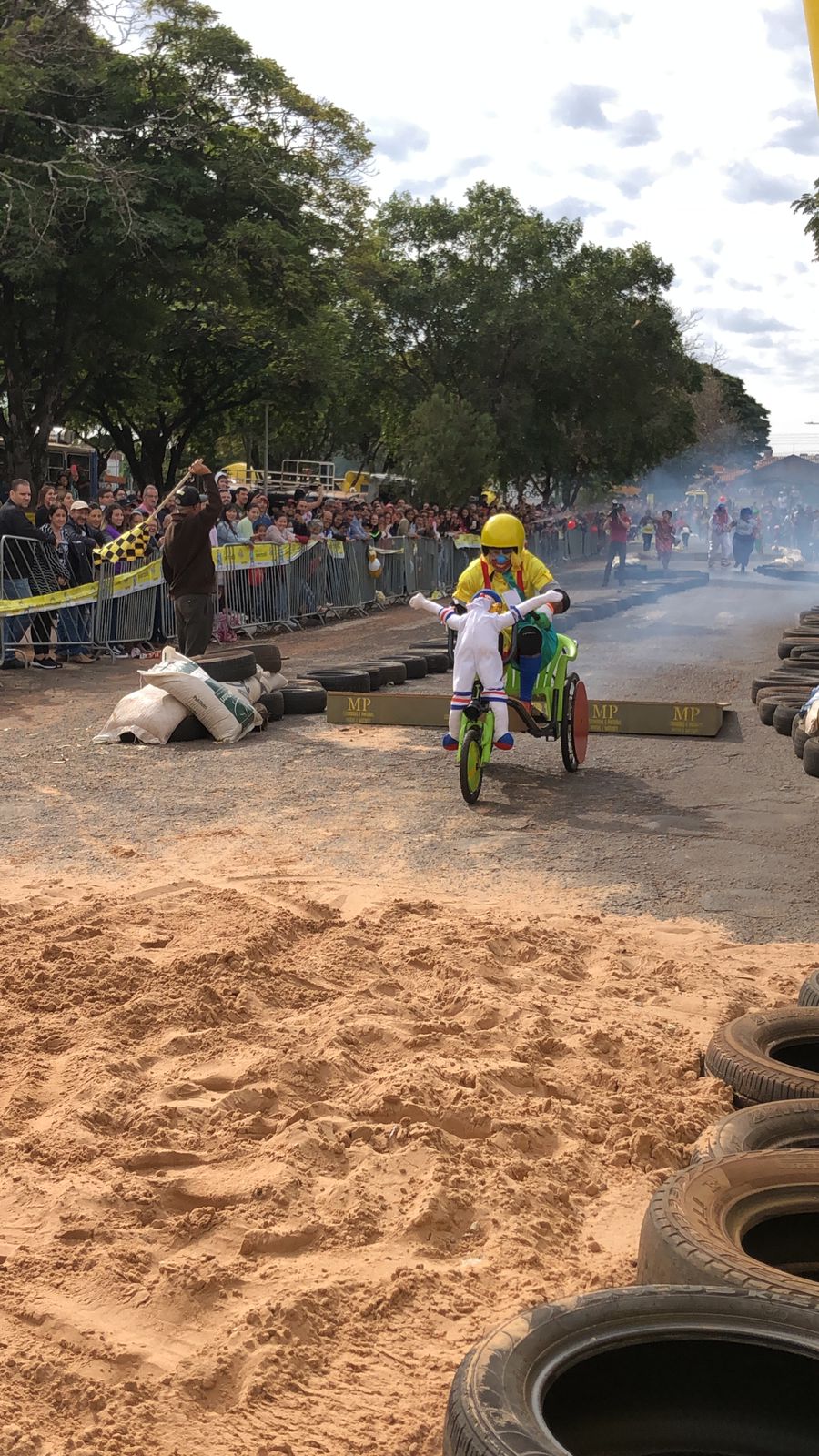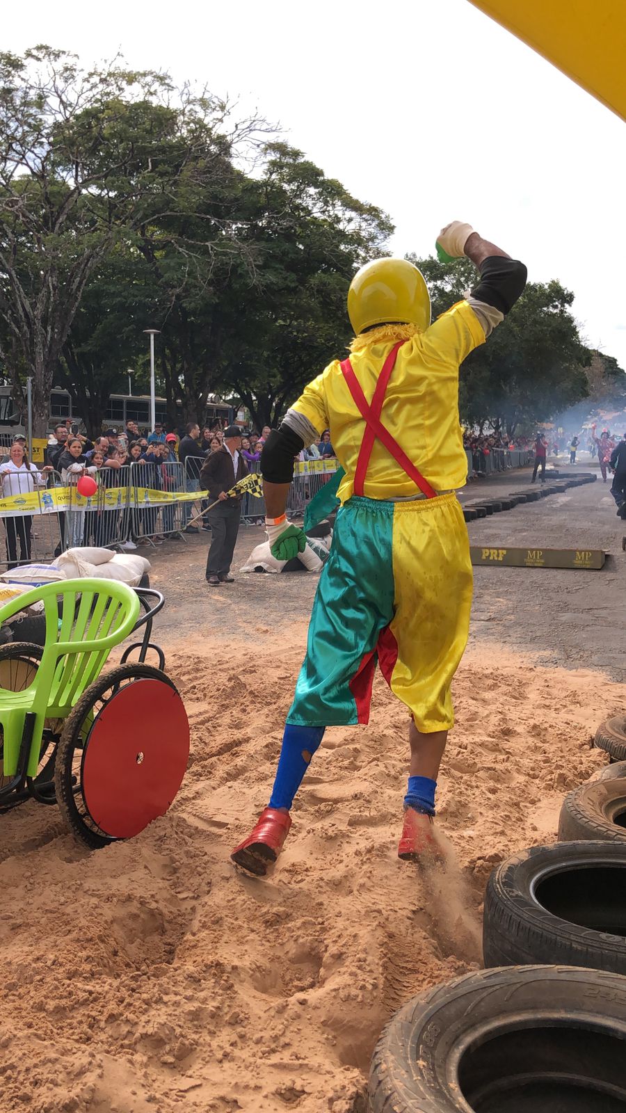 Funcionários da APAE de Alto Paraná marcaram presença vestidos de Patati e Patatá, palhaços queridos pela garotada. Segundo os membros da equipe, a ideia era chamar a atenção das famílias e levar um pouco de alegria para o evento. Jesse Eduardo, Cida Catarino, Jaqueline Gracioto, Márcio Calixto e Aparecida Calixto compuseram o time que usou de cadeira de rodas adaptada para banho, peças de bicicleta e cadeiras velhas. Eles conseguiram fazer tudo em uma semana.