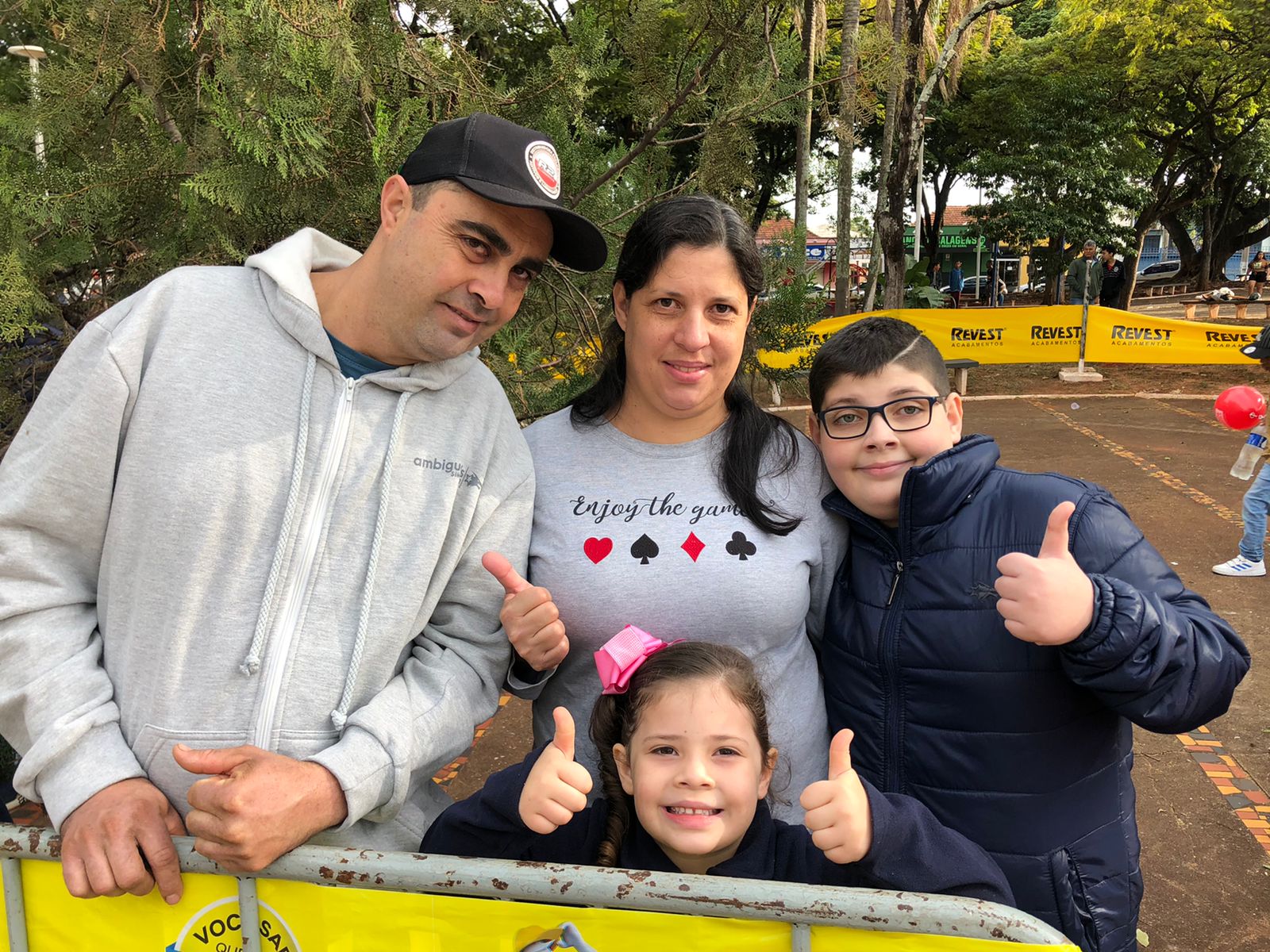A família da Clara concordou. Clara Sofia, de 5 anos, estava acompanhada de seu irmão, Felipe José Teles, de 13 anos, e os pais Sirlete Fiates e Agnaldo Teles, de Alto Paraná. Eles estavam ansiosos para assistir às apresentações das equipes. Empolgação foi a palavra escolhida por eles para traduzir o que estavam sentindo.
