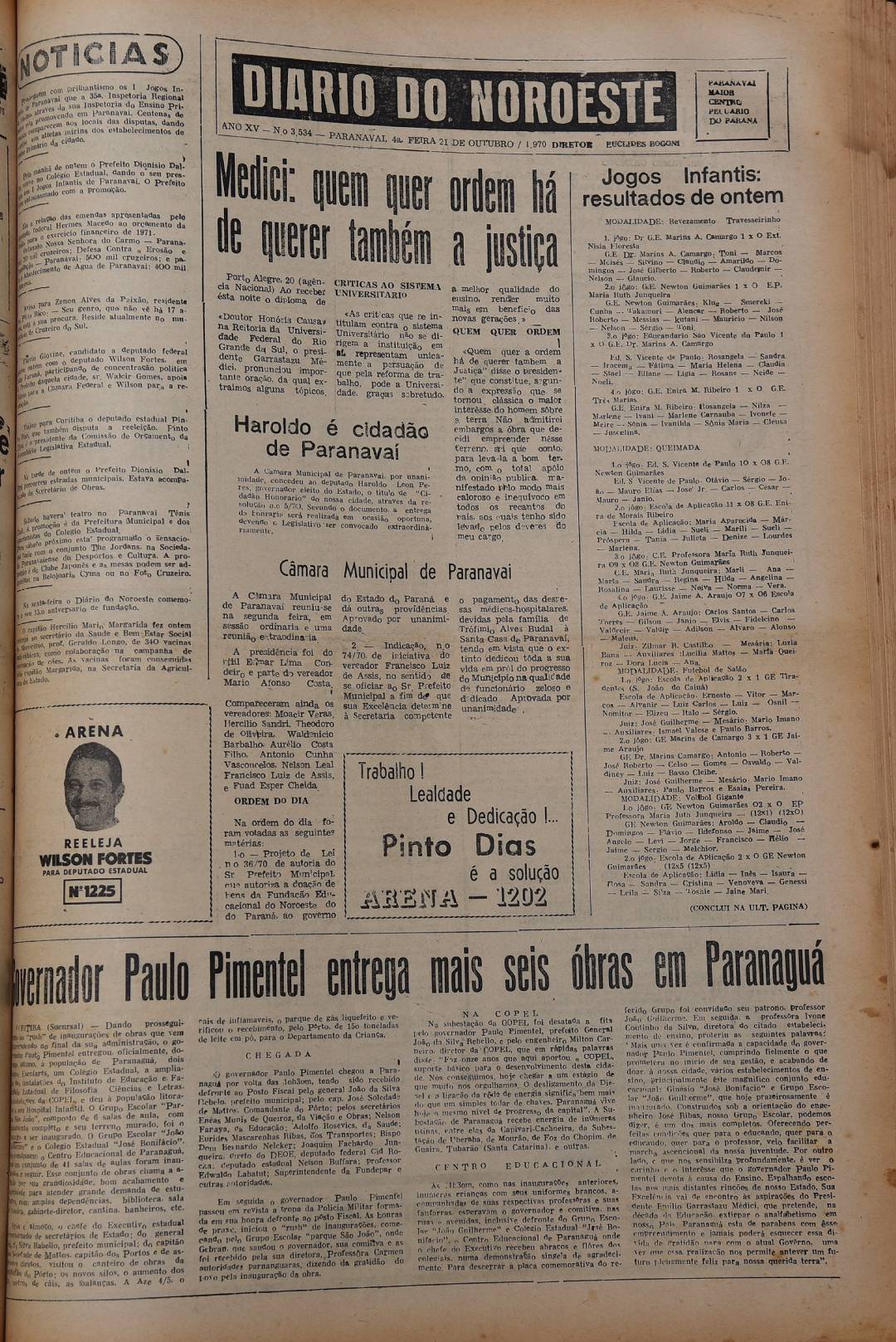 A edição apresenta o título de cidadão honorário para o então governador eleito do paraná, Leon Peres, e traz um balanço de seis obras entregues pelo governador Paulo Pimentel no município de Paranaguá.