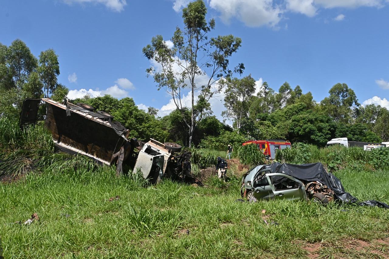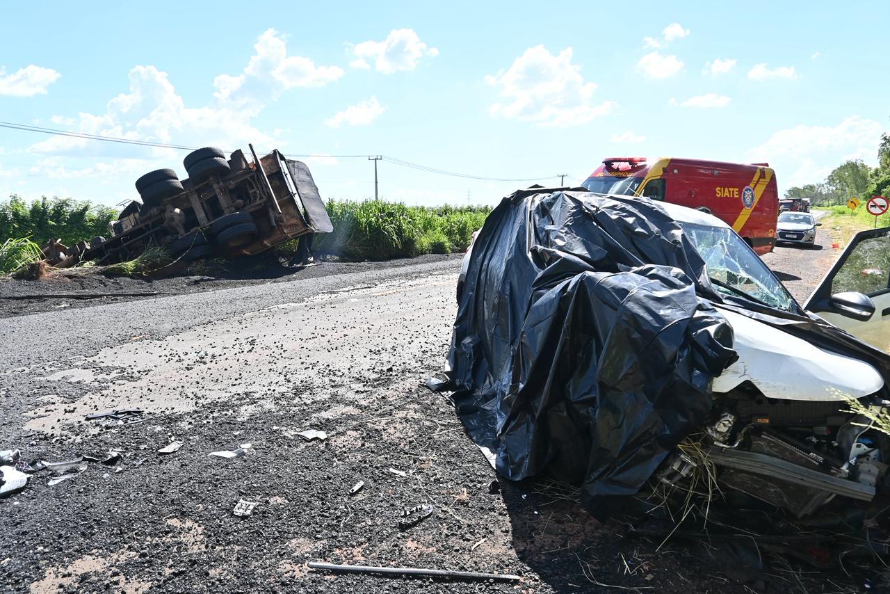 Um acidente de grandes proporções foi registrado na tarde desta sexta-feira (6) na BR-376, em Guairaçá. A colisão envolveu um caminhão e dois automóveis e resultou na morte de duas pessoas, além de deixar outras vítimas feridas.