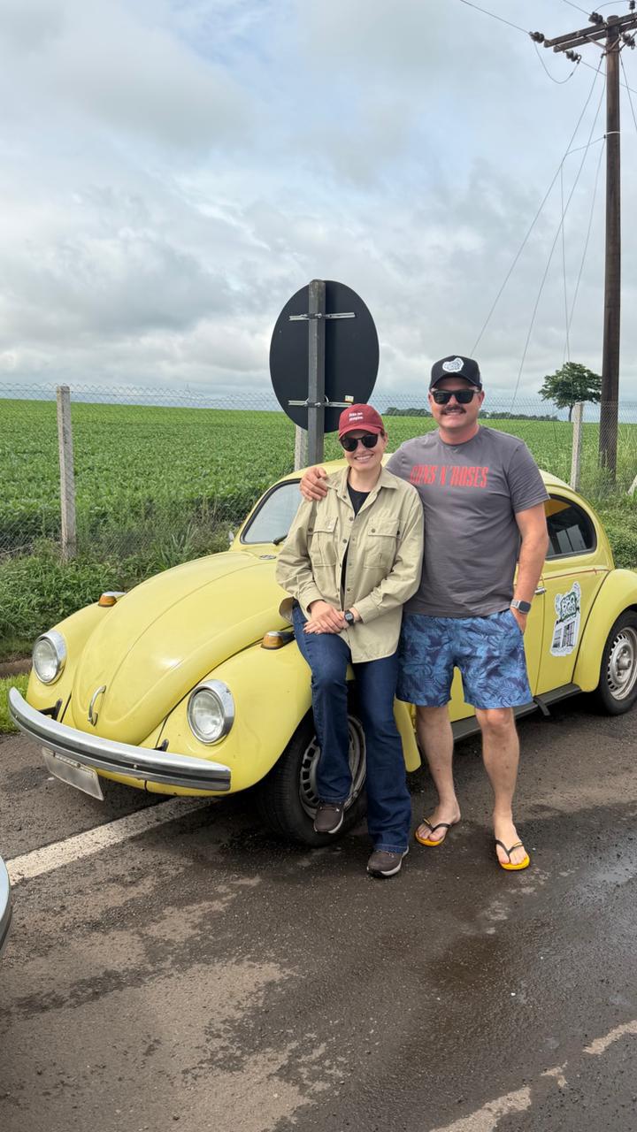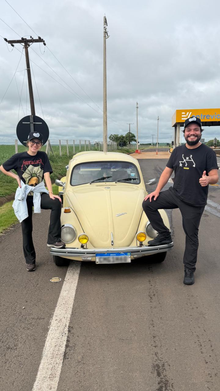 A viagem começou na manhã desta segunda-feira (15), e o dentista não vai sozinho: ao lado dele está a esposa e parceira, Bianca Pinha Seron. “A promessa é minha, mas ela aceitou ir junto”, disse ao Diário do Noroeste. Em outro fusca vão os amigos Ana Carolina Pedroni Meyer Hadlich e Elder Molina Hadlich acompanham o casal em outro fusca.