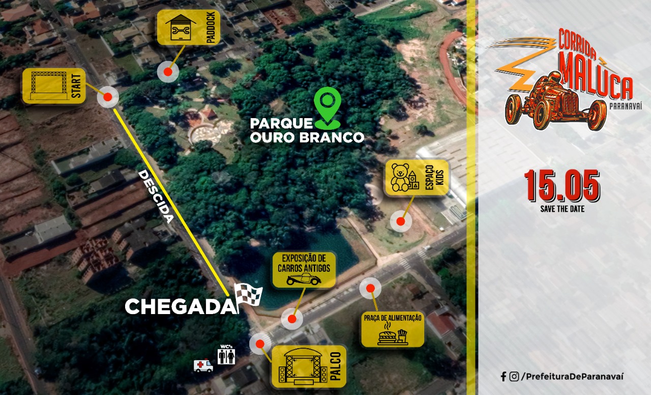 A 1ª edição da Corrida Maluca acontece neste domingo (15), das 9h às 17h, nas proximidades do Parque Ouro Branco. Confira o mapa.