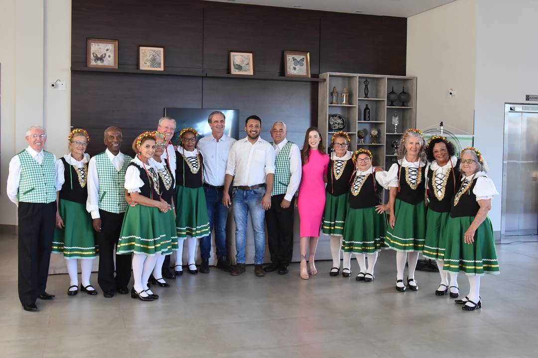 O grupo de dança folclórica Laços da Idade se apresentou na tarde de ontem para autoridades e lideranças que visitaram o Instituto Mauricio Gehlen (IMG), em Paranavaí. Entre os presentes, o prefeito de Maringá, Ulisses Maia, e o deputado estadual Soldado Adriano José.
