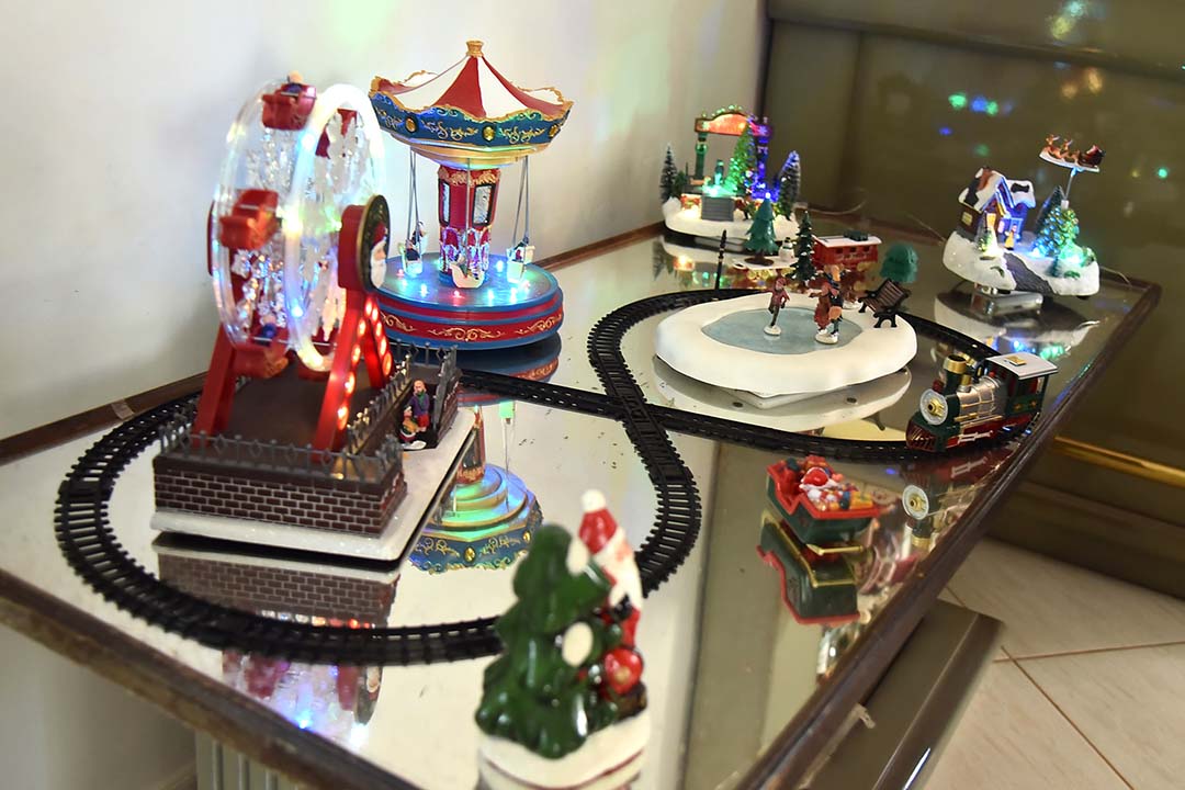As redomas natalinas são as que mais chamam a atenção dos pequeninos, mas não são as únicas. O que falar do Papai Noel que dança no embalo de canções típicas? E os trilhos que guiam o trem do Bom Velhinho? Na casa de Marcia, até Mikey Mouse, famoso personagem de Walt Disney, ganha trajes de Natal.