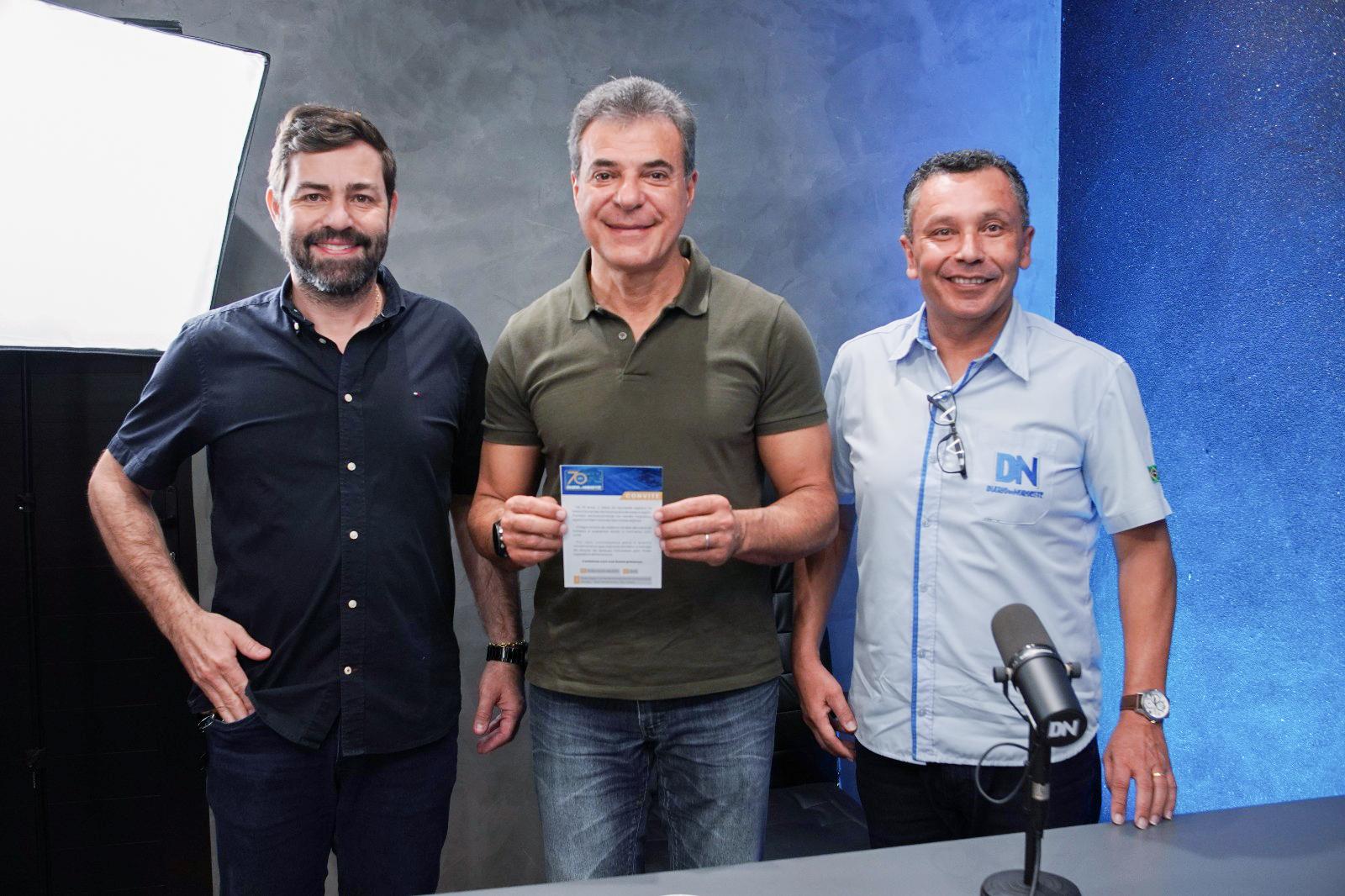 Sérgio Carvalho, diretor-geral do DN, convidou o ex-governador para a comemoração dos 70 anos do Diário do Noroeste. Na foto: Sérgio Carvalho, Beto Richa e Adão Ribeiro