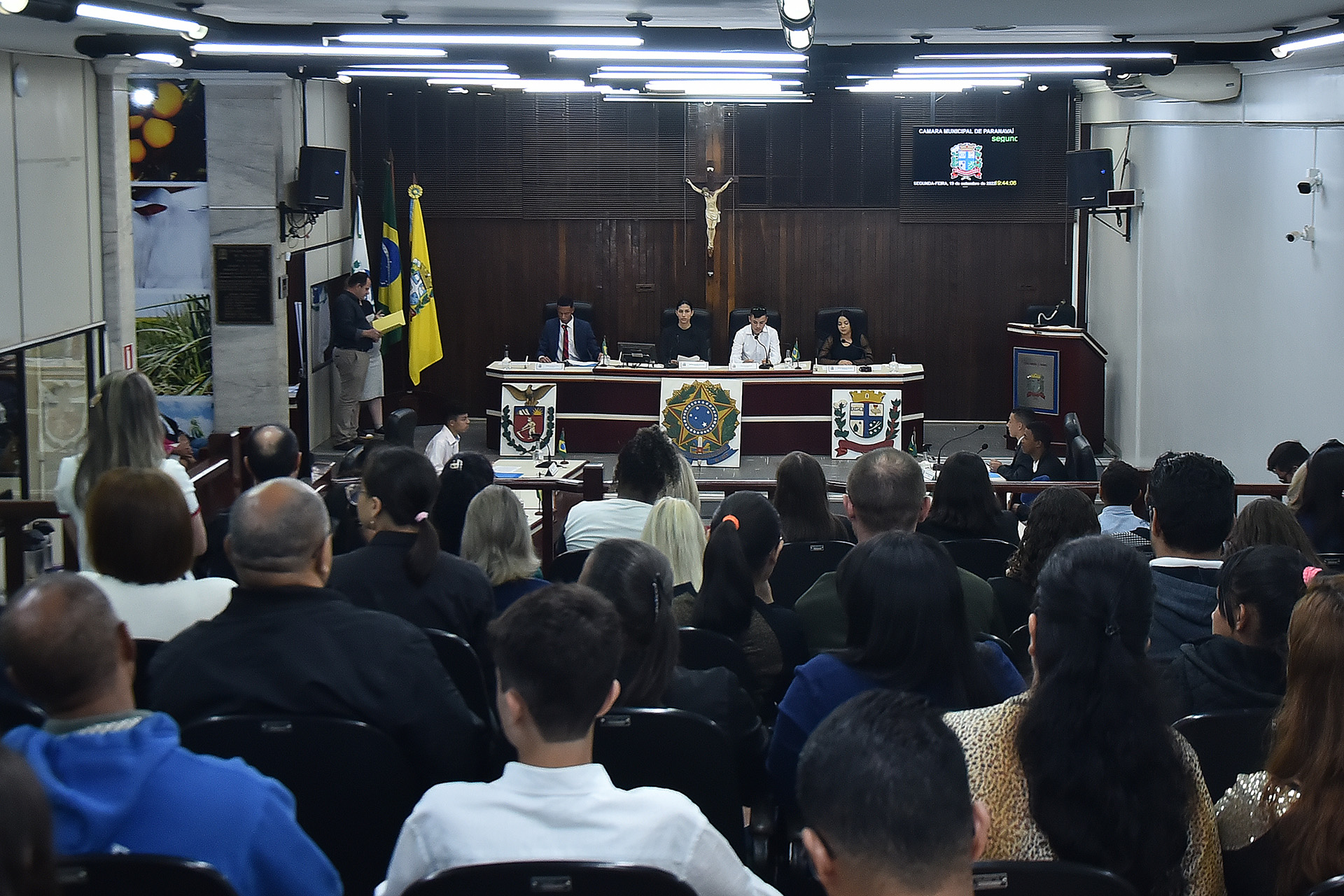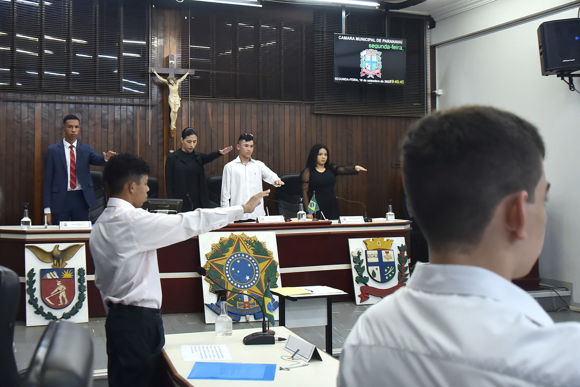 A posse dos primeiros vereadores mirins de Paranavaí aconteceu na noite da última segunda-feira (19) na Câmara Municipal de Vereadores. Familiares, amigos e os vereadores da cidade estiveram presentes para celebrar esse projeto em parceria com o Núcleo Regional de Educação, o Tribunal Regional Eleitoral (TRE) e a Casa de Leis.