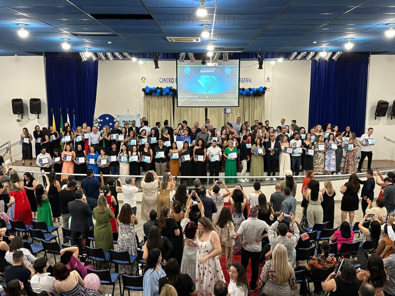 Na noite de quinta-feira (16), 92 profissionais da rede estadual de ensino que atuam na Região Noroeste foram homenageados com a certificação “Professor Diamante”. Trata-se da valorização do trabalho docente na formação dos estudantes e no fortalecimento da educação pública.