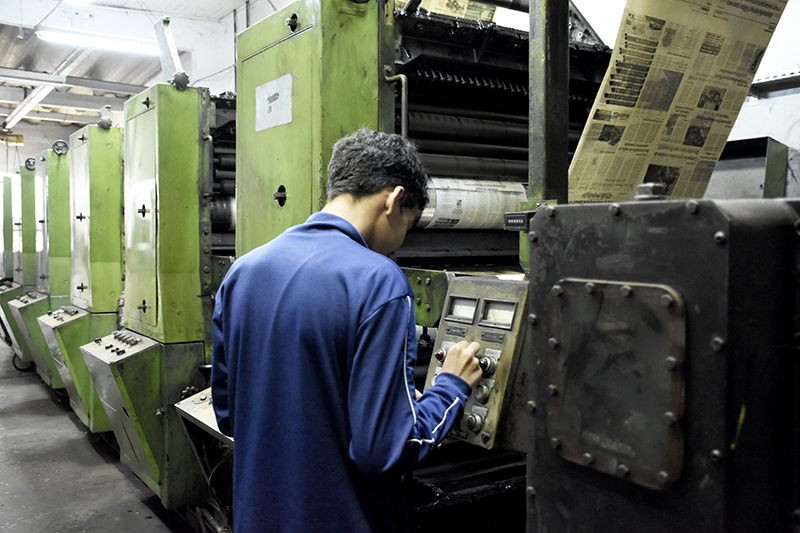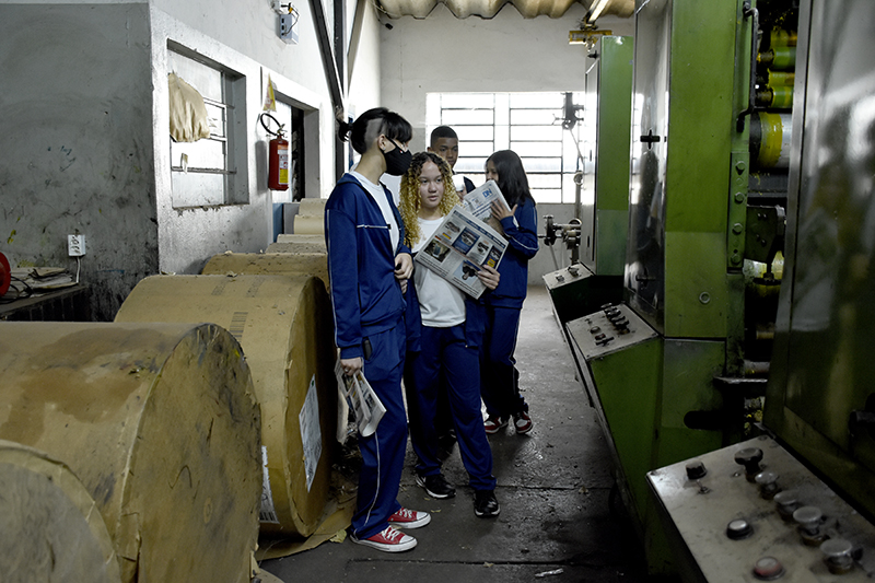 Os alunos conheceram também o antigo parque gráfico onde rodavam os jornais até 2019. As máquinas enormes chamaram a atenção de todos os estudantes que questionaram sobre a produção e métodos de impressão.