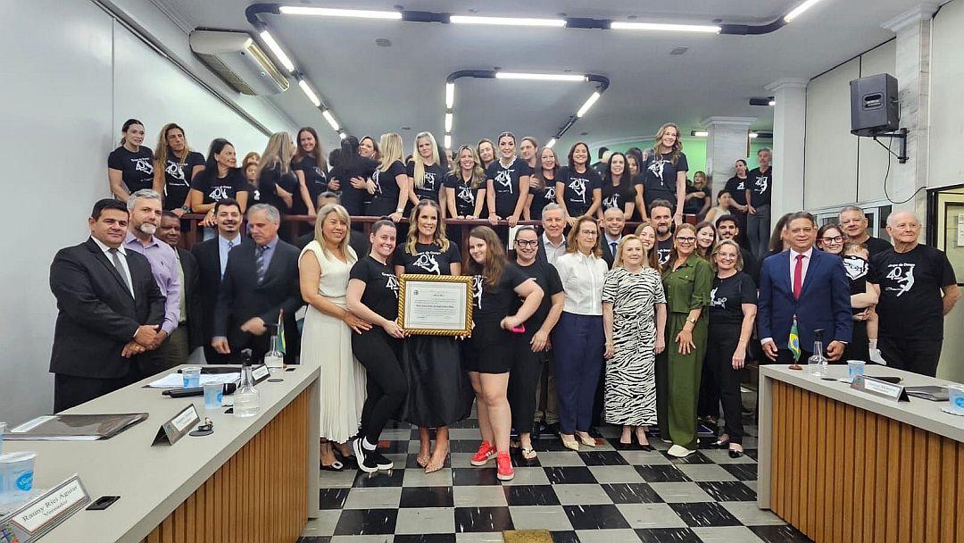Aniversariante do dia, a primeira-dama de Santo Antônio do Caiuá, Lidiani dos Santos de Souza, é homenageada pela data comemorativa. Na foto, aparece com o esposo, o prefeito Gabriel Fachiano, e os filhos Leonardo e Benício.Na última segunda-feira, dia 3, o Grupo 40+ do Grupo de Dança Maria Teresa, sob a coordenação da coreógrafa Adriana Felippe Peres, do Studio Corpo e Ritmo, recebeu uma Moção de Aplausos na Câmara Municipal de Paranavaí. A homenagem, proposta pela vereadora Ivany Azevedo, reconheceu o trabalho e a dedicação do grupo, que tem representado o município em diversos palcos nacionais. O momento foi marcado por emoção e aplausos ao talento das integrantes. Na foto, as professoras Adriana Felippe Peres, idealizadora do Grupo, Maria Teresa, Ellen Garrido e familiares e amigos que prestigiaram o momento especial.