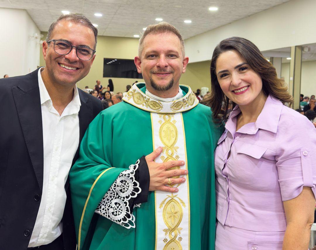 O prefeito de Diamante do Norte, Eliel Correa, e a primeira-dama, Grazielle Cano, receberam com alegria o Pe. Gilney Guevara Lopes, então pároco de Marilena, que tomou posse na quarta-feira (4), na paróquia São José.
