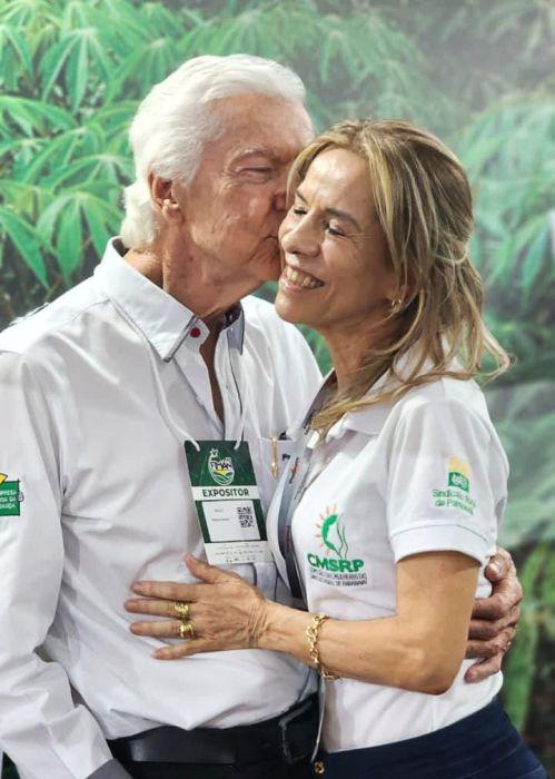 Entre sorrisos e gestos de carinho, Ester Michielon Pierin brinda mais um ano de vida. O registro destaca o afeto do esposo, Paulo Sérgio Pierin, em cena de ternura e alegria.
