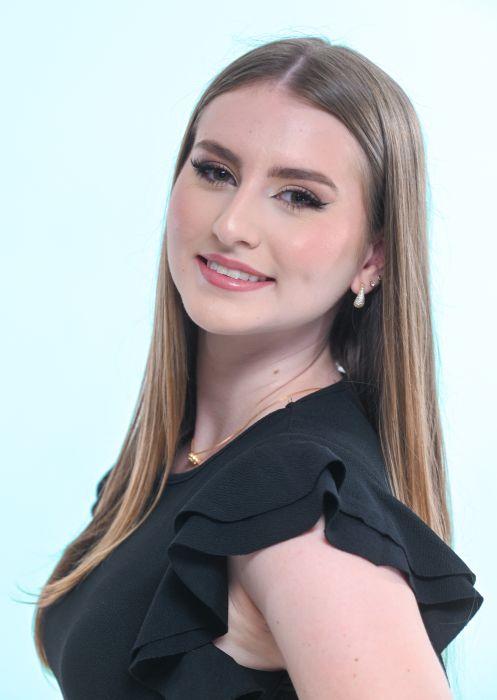 Dona de uma beleza delicada e um sorriso encantador, a estudante de Psicologia Júlia Oliveira Gardim posa para a coluna social de hoje.