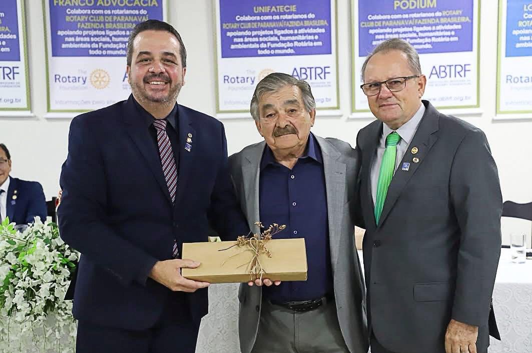 Durante o encontro, Nestor Antunes Miranda Filho foi homenageado pelo presidente do clube, Márcio Fernandes Longo, e pelo EGD, Rogério Lorenzetti, em reconhecimento aos 43 anos de dedicação e serviços prestados ao Rotary.