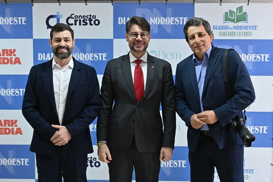 Casal Maria Luiza e Sérgio Carlos de Carvalho, ao lado da família.Equipe de colaboradores do Diário do Noroeste.Vice-prefeito Pedro Baraldi, presidente da Câmara Municipal de Vereadores Carlos Augusto e vereador José Galvão.Empresário Sérgio Carvalho, ao lado do prefeito de Santo Antônio do Caiuá, Gabriel Fachiano, vereadora Marisa Araújo de Oliveira e secretário municipal Lucas Fachiano.Advogado Anderson Alarcon, ao lado de Sérgio Carvalho e Guto Costa. Alarcon, um dos colaboradores e entusiasta do veículo de comunicação, cumprimentou o Diário do Noroeste pelos 70 anos.Empresário Mohammed Soumaille trouxe consigo um abraço ao presidente do Grupo Carvalho, Sérgio Carlos de Carvalho.Bispo Diocesano Dom Mário Spaki, ao lado do casal Bruna e Sérgio Carvalho.Representantes das forças de segurança que estiveram presentes no evento, comandante da Guarda Municipal, Wagner Quirino; tenente-coronel do 8BPM, Radamés; delegado-chefe da 8ª SDP, Marcelo Trevisan; inspetor Pedro Faria, chefe do Escritório Regional da PRF; capitão do Corpo de Bombeiros, Guilherme Costa.