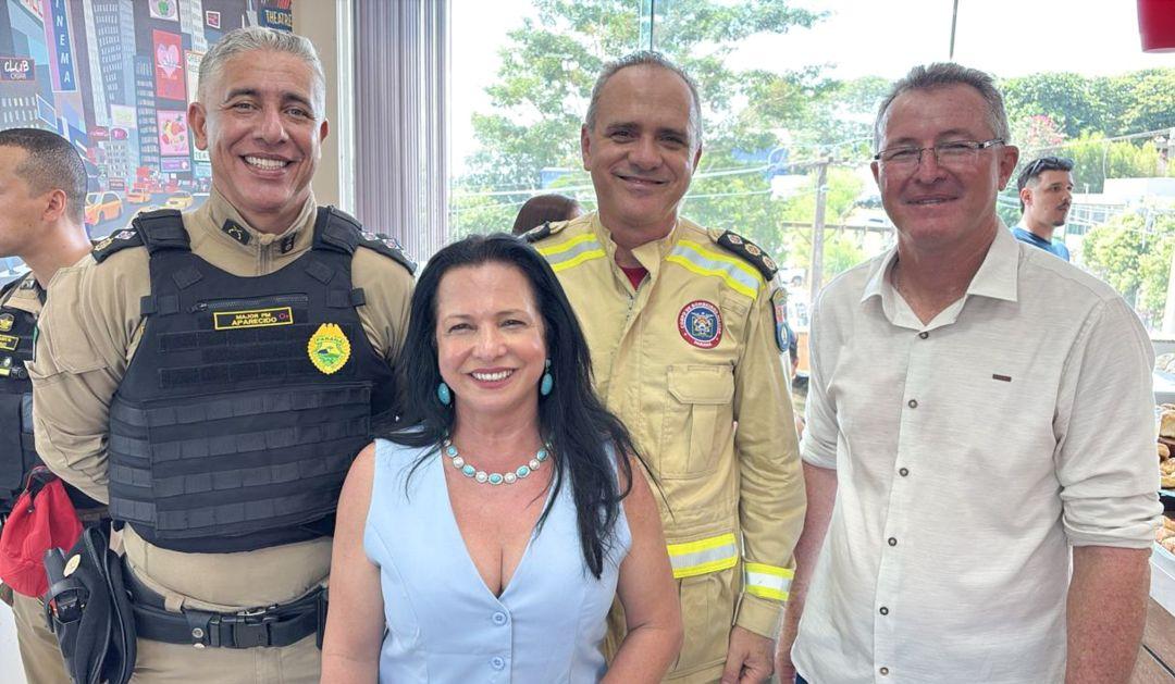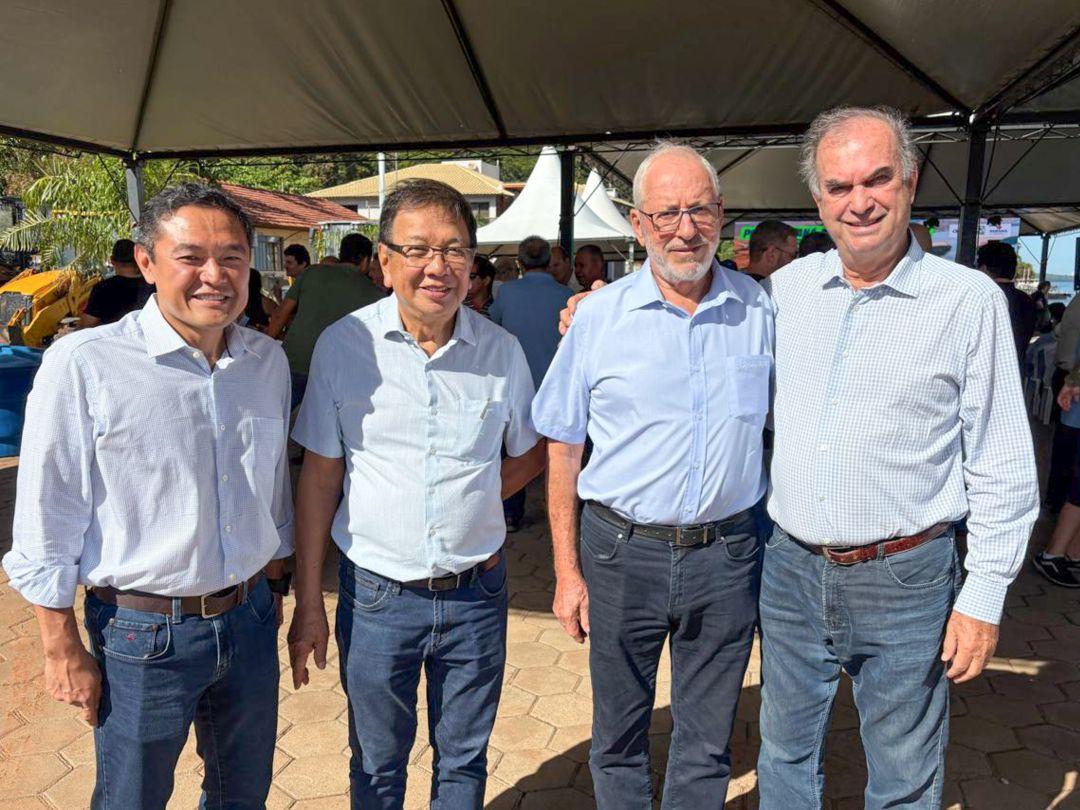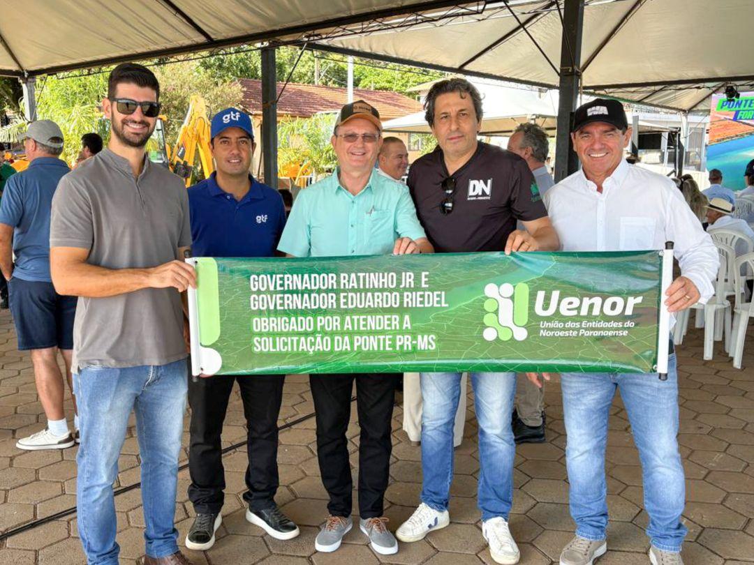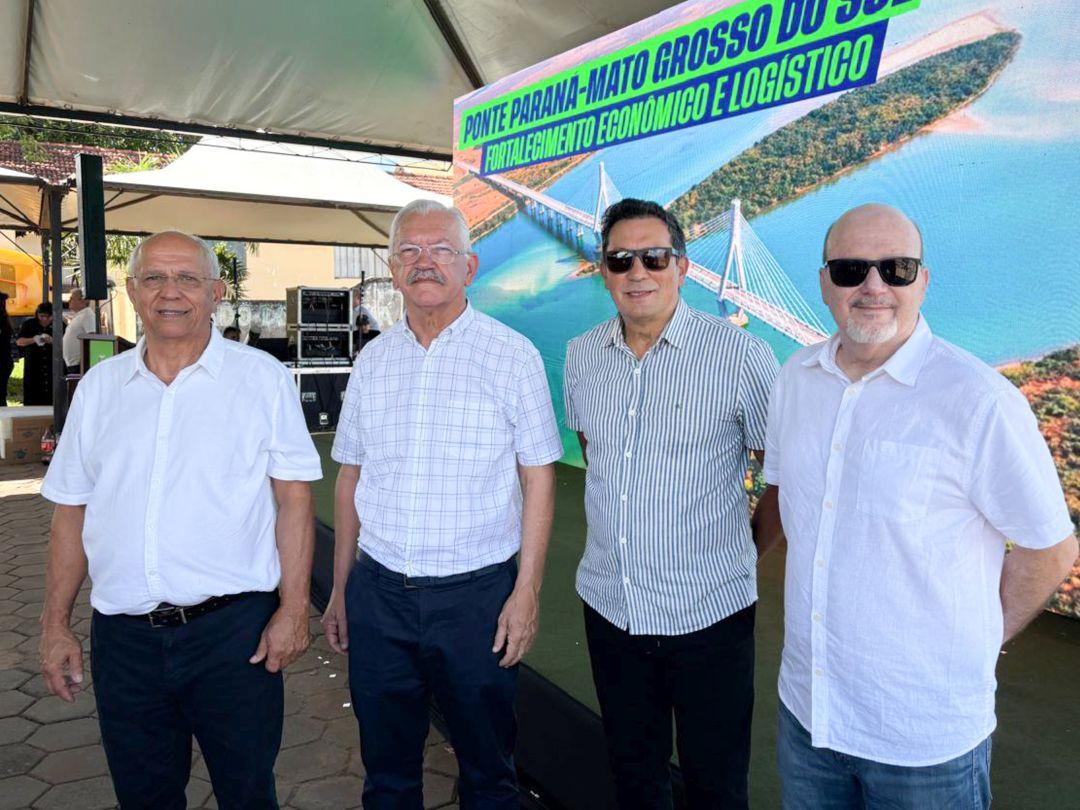 Após a cerimônia de lançamento da ponte Rio Paraná em Mato Grosso do Sul, a empresária Solange Gomes Taniguchi recebeu convidados para um café, entre eles o major PM Aparecido, tenente coronel BM Adriano Alves e vice-prefeito de São Pedro do Paraná, Celso Serenato.Vice-presidente da Acim, Rogério Yabiku; Afonso Shiozaki; presidente do Conselho de Administração da Cocamar Cooperativa Agroindustrial, Luiz Lourenço e Paulo Tripoloni.Integrantes da Socipar Demerval Silvestre, Ivo Pierin Junior, Edilson Avelar e Dante Ramos Junior.Integrantes da União das Entidades do Extremo Noroeste Paranaense (UENOR), empresário Renan Torrezan; médico veterinário Gabriel Costa; presidente Jorge Guedes; presidente da Cacinpar, Guto Costa; presidente da Acip (Porto Rico), Wanderlei Cavaco.Secretário de Segurança do Estado do Paraná, Coronel Hudson recebeu carinho e admiração do pequeno Bruno, de Porto São José, trajado com o uniforme da Polícia Militar.