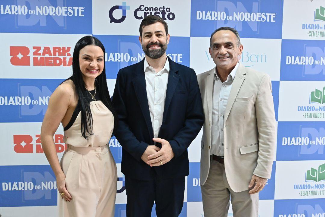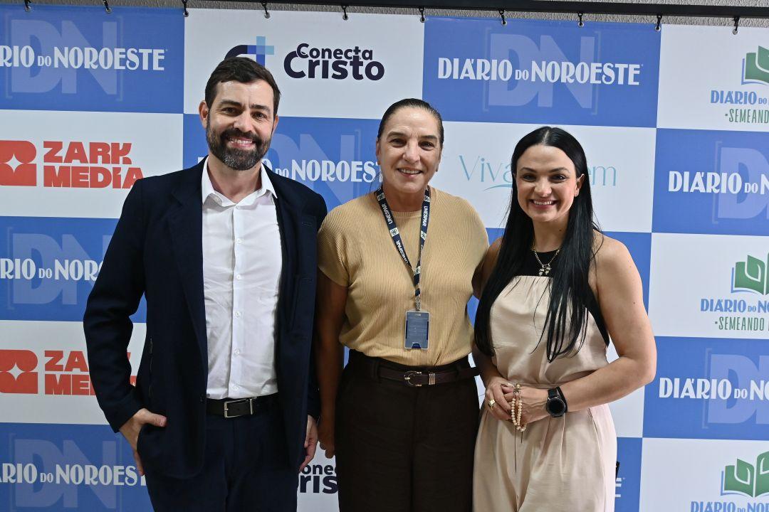 Diretores do Diário do Noroeste, Bruna e Sérgio Carvalho, com a reitora da Unespar de Paranavaí, Maria Antonia Ramos Costa.