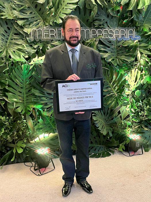 O comunicador Valderci Silva, diretor da Rede de Rádios, foi agraciado com o prêmio Mérito Empresarial, concedido pela Associação Comercial e Empresarial de Apucarana, durante um prestigiado evento realizado recentemente no município.