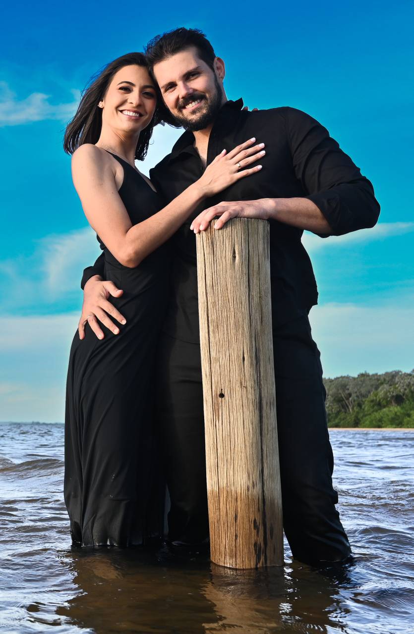 O empresário Leonardo Sandrim e a dentista Verônica Ramos escolheram as águas do Rio Paraná para um lindo ensaio pré-wedding, que antecipa os preparativos para o casamento, no próximo dia 13 de maio em Loanda.