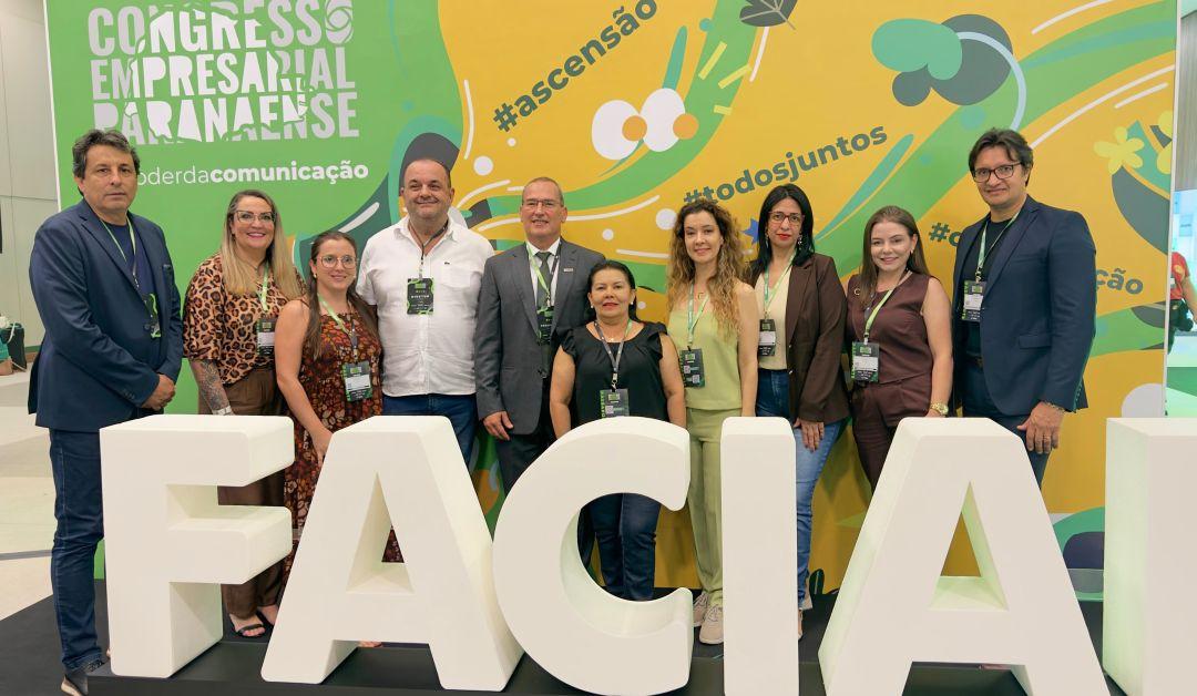 Lideranças da região Noroeste estão participando do Congresso Empresarial, promovido pela Faciap, que ocorre em Foz do Iguaçu neste final de semana. O evento reúne representantes em um importante momento de integração e troca de experiências. Na ocasião, posam ao lado do presidente da Faciap, Flávio Furlan, o presidente da Cacinpar, Guto Costa, e o presidente da Aciap, Ed Wilson.