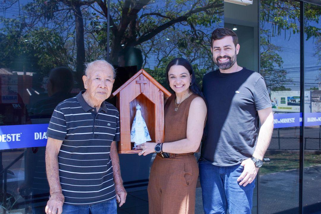 As bênçãos chegam de muitas maneiras e é preciso recebê-las de braços abertos. Nesta sexta-feira, o Diário do Noroeste foi abençoado com o presente do leitor Massayoshi Seko, que construiu uma capela de madeira para a imagem de Nossa Senhora Aparecida. Ele fez questão de entregar aos diretores do DN, Sérgio Carvalho e Bruna Carvalho, para marcar a comemoração dos 70 anos da empresa.