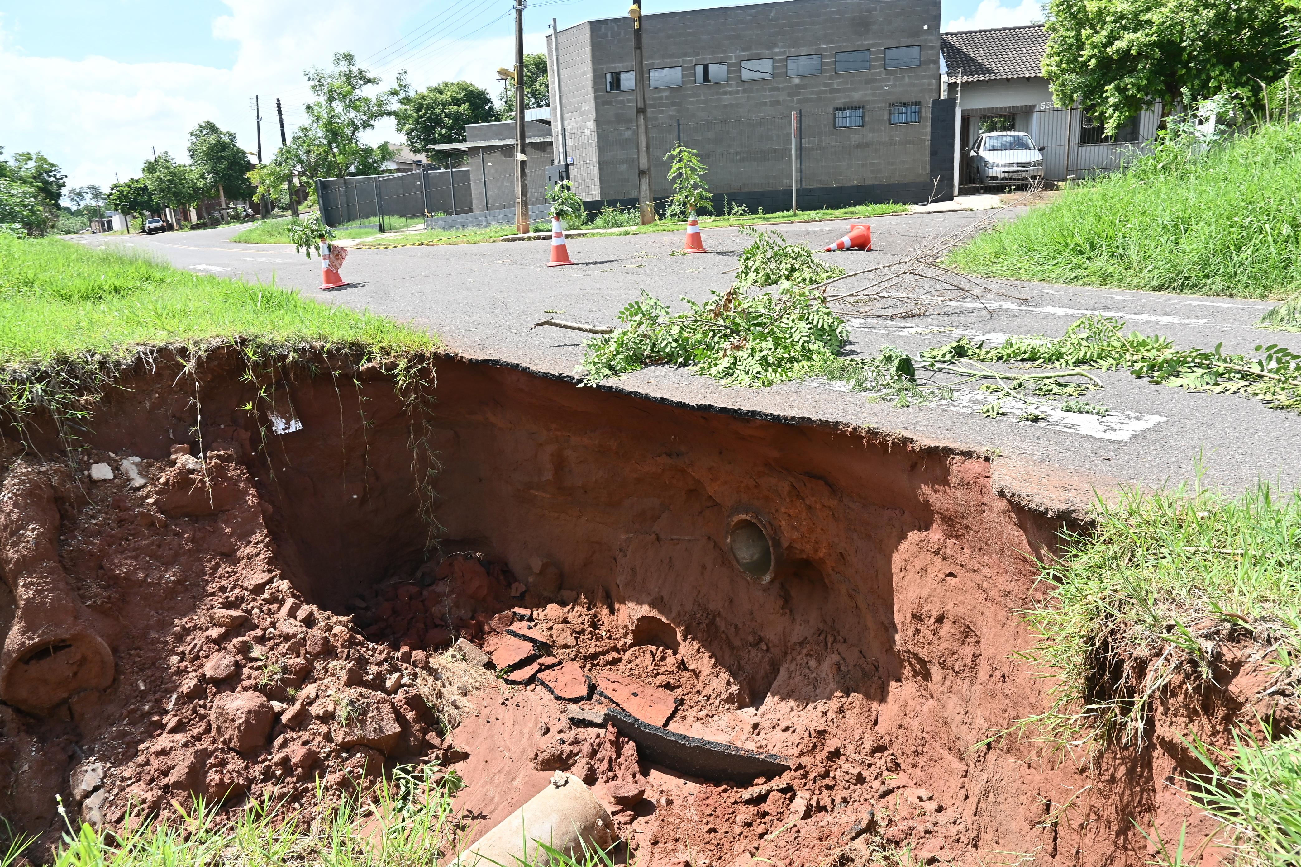 De acordo com a Secretaria Municipal de Infraestrutura, foram registrados danos significativos em vias urbanas pavimentadas, com comprometimento do pavimento asfáltico, dificultando ou impedindo o acesso de moradores às residências.