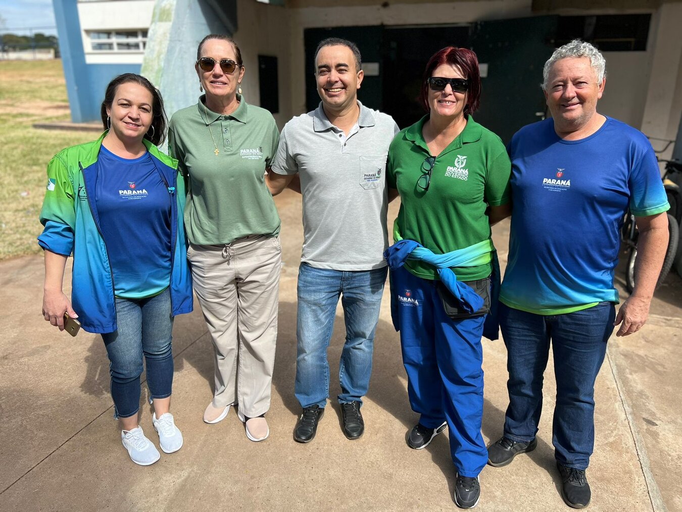 Acompanhada do coordenador técnico da Fase Regional Jorge Casagrande, da coordenadora geral da Regional Iara Cardoso, da coordenadora administrativa dos Jogos Escolares Valdete Rossi e do Chefe do NRE de Paranavaí Professor Emerson Branco, visitaram as instalações esportivas que estão sendo utilizadas na competição e também visitaram o refeitório que está servindo a alimentação aos atletas.