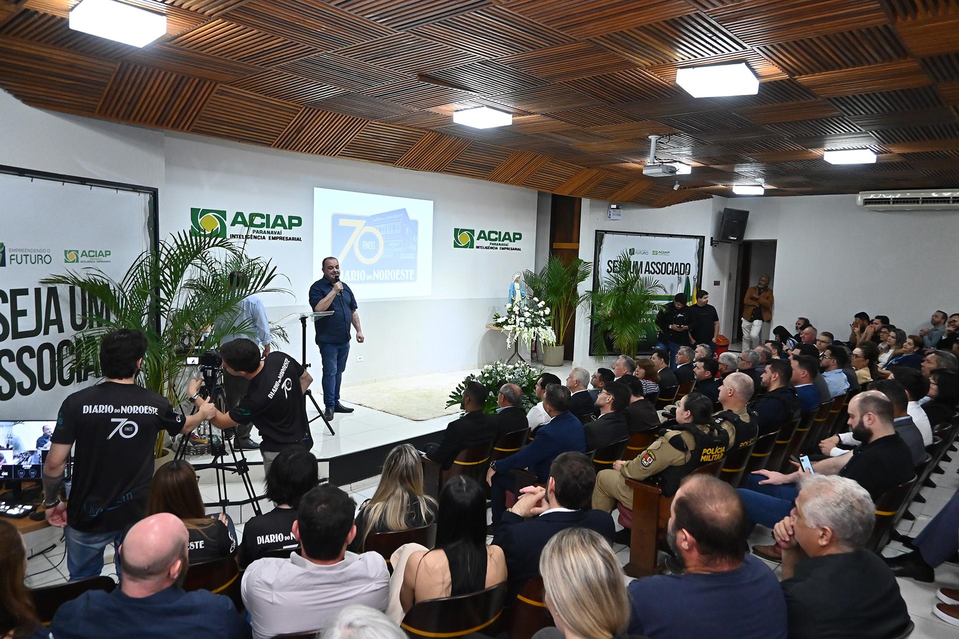 O aniversário de 70 anos do Diário do Noroeste foi comemorado na última quarta-feira, em concorrida solenidade no auditório da Associação Comercial e Empresarial de Paranavaí (Aciap).