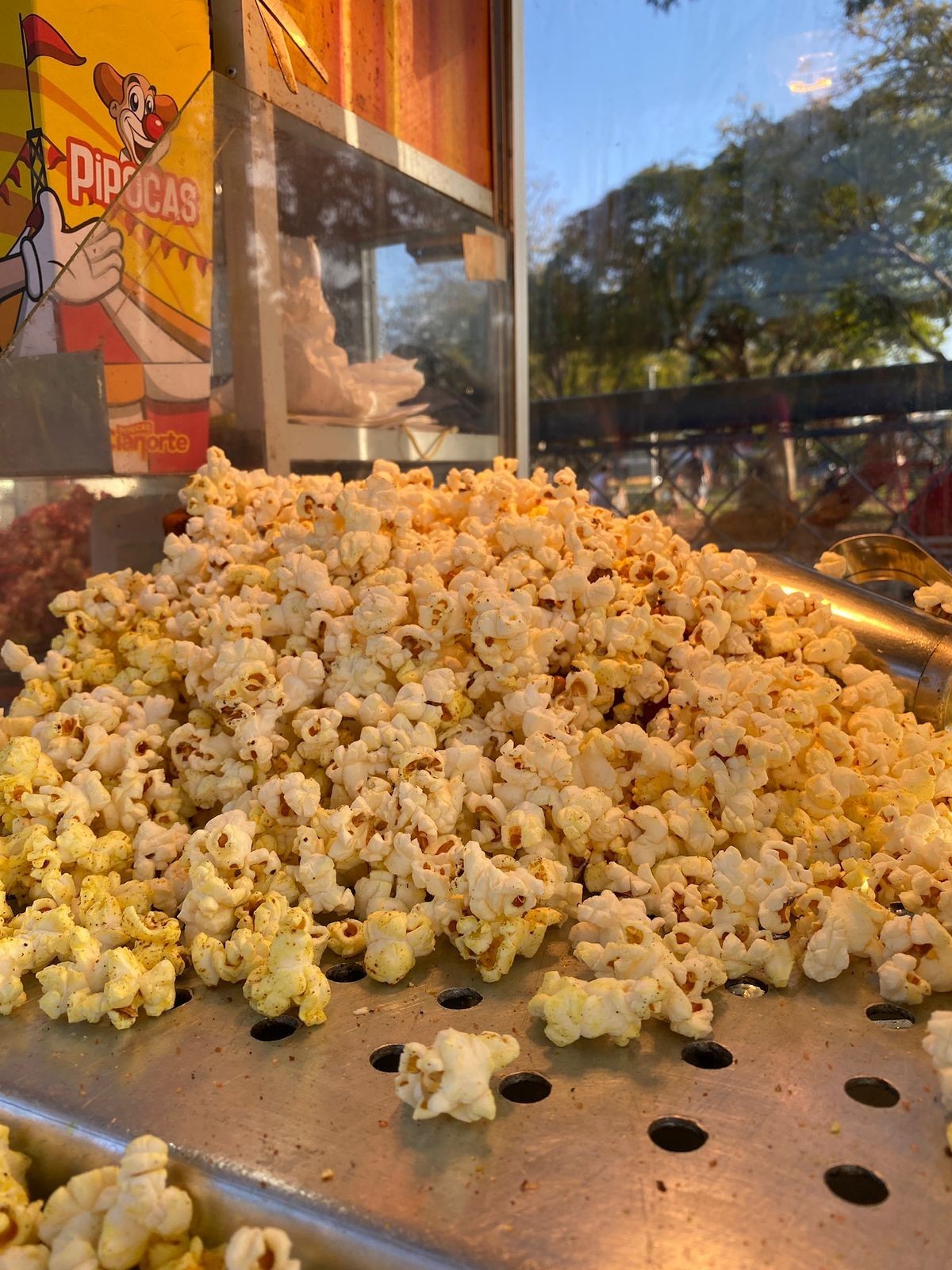 Enquanto esperava a minha vez, uma criança pediu “duas pipocas, por favor”. Ele, de imediato, colocou duas unidades do grão dentro do pacote. A menina ficou tão surpresa que caiu na gargalhada. Não é só estourar pipoca, é a arte de alegrar as pessoas, pensei.