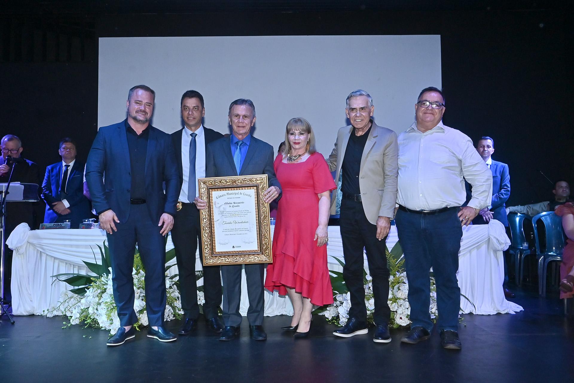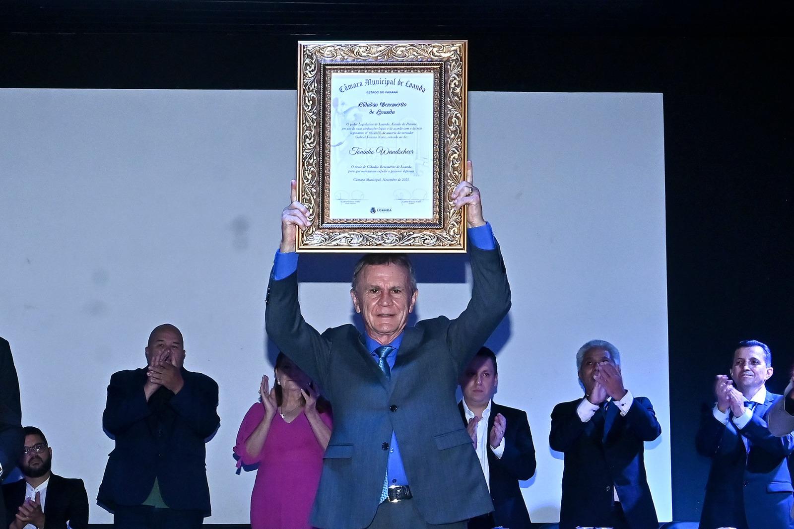 O deputado federal Toninho Wandscheer recebeu, na última sexta-feira (28), o título de Cidadão Benemérito de Loanda, em uma cerimônia marcada por agradecimentos, emoção e reconhecimento ao trabalho realizado pelo parlamentar em favor do município. A homenagem foi proposta pelo presidente da Câmara, vereador Gabriel Feitoza Norte. No mesmo evento, o filho do deputado, Alisson Wandscheer — hoje deputado estadual — também foi agraciado com honraria concedida pelo Legislativo municipal.