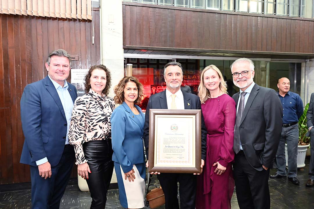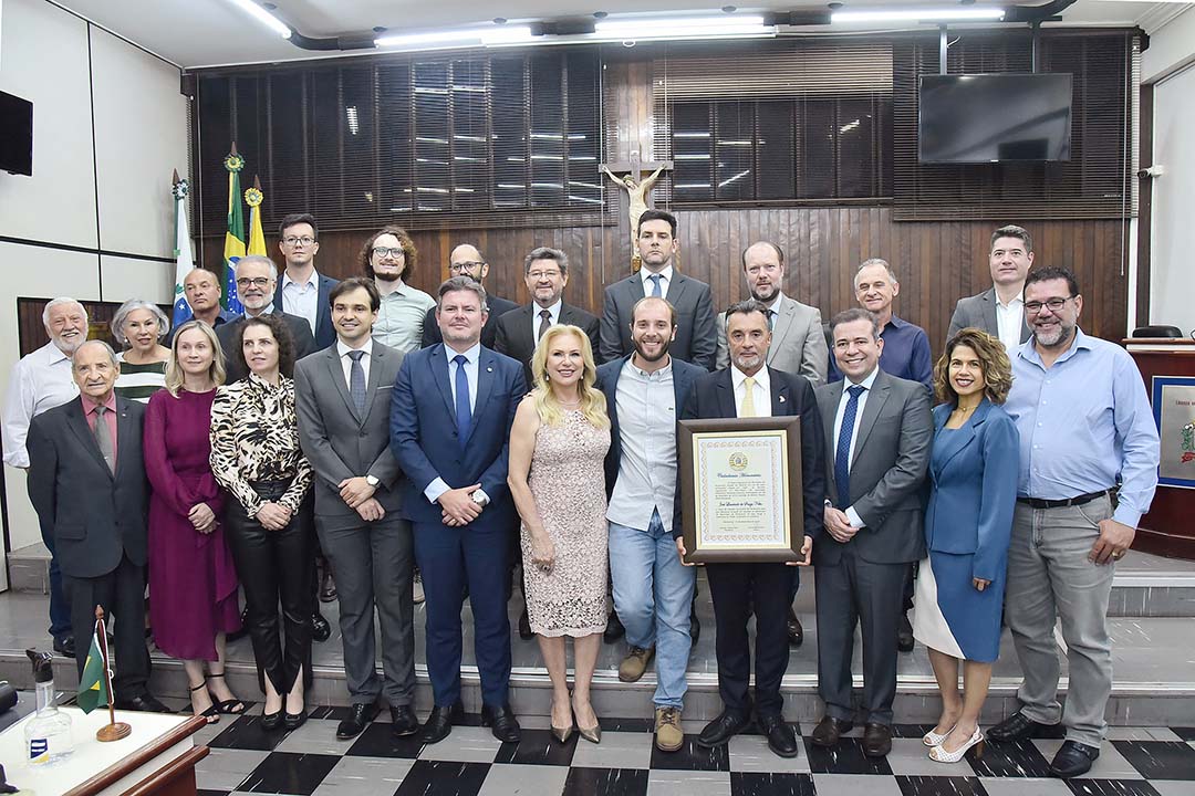 HOMENAGEM – “Fico muito agradecido e honrado, pois é um Título que quero compartilhar com todos os colegas da magistratura. Essa homenagem se estende àqueles que ajudam a construir a consolidação dos direitos fundamentais da sociedade. Ademais, o sentimento de pertencimento a essa comunidade tão próspera que é Paranavaí, uma cidade feita de pessoas honestas e trabalhadoras, me sinto muito orgulhoso. Esses são os valores que destaco ao ser homenageado”, concluiu o desembargador.