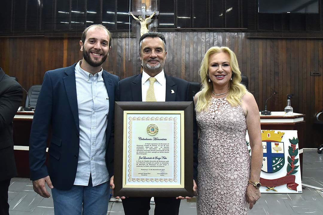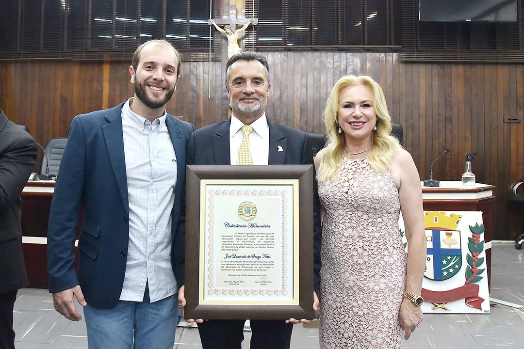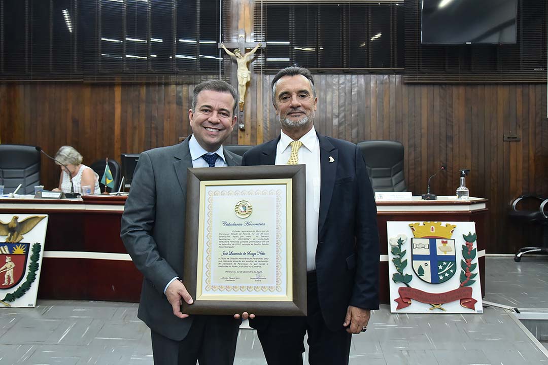 A Câmara Municipal de Paranavaí concedeu ao desembargador e ex-presidente do Tribunal de Justiça do Estado do Paraná – TJPR, José Laurindo de Souza Netto, o Título de Cidadão Honorário. A cerimônia aconteceu na última segunda-feira. A honraria teve como justificativa os importantes trabalhos realizados ao município, entre eles, e mais importante, o projeto elaborado para a construção do novo Fórum da Comarca de Paranavaí.