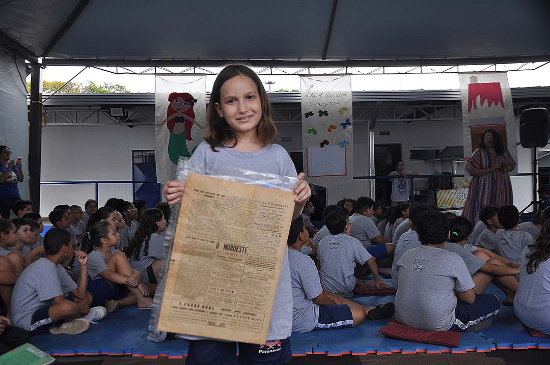 Há quase 68 anos, as páginas do Diário do Noroeste estampam histórias de Paranavaí e região. A trajetória de sucesso foi traçada com base no compromisso com a verdade, na credibilidade, marcas que o DN carrega até hoje e que chamaram a atenção de estudantes durante a 42ª Semana Literária e Feira do Livro. A convite da equipe do Sesc, o editor-chefe Adão Ribeiro apresentou o jornal para as crianças e guiou um bate-papo descontraído sobre a importância da leitura de qualidade.
