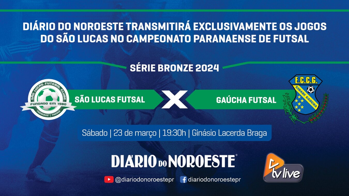 O Jornal Diário do Noroeste fechou acordo com a São Lucas Futebol Clube para a exibição dos jogos na Série Bronze 2024 do Campeonato Paranaense de Futsal. As transmissões serão feitas no Canal do YouTube (youtube.com/@diariodonoroestepr) e no facebook (facebook.com/diariodonoroestepr).