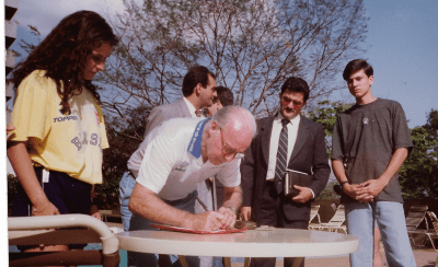 Aí aconteceu que a Prefeitura de Paranavaí não poderia fazer um contrato com a CBF, ou com a Federação. Eu, em reunião em Curitiba sugeri que a Federação fizesse o contrato com a CBF, o presidente da Federação me perguntou se teríamos como garantir a venda de 20 mil ingressos, eu respondi que sim. Aí fizeram o contrato. Foi assim que conseguimos trazer a Seleção Canarinha à Paranavaí para inaugurar o Estádio que recebeu 23 mil pagantes (fala-se em 25 mil presentes, tinham muitos convidados e penetras).