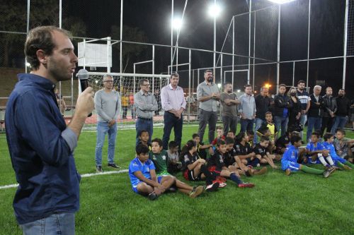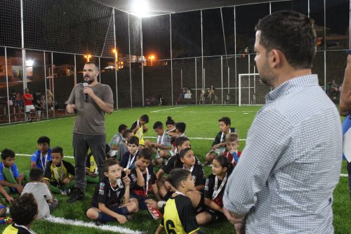 “Quando vemos um campinho desses, voltamos ao passado e lembramos de como era a nossa iniciação esportiva – na rua, pregando aro de bicicleta nas árvores para fazer cesta de basquete, divisão dos times no par ou impar, regras feitas pelos jogadores, etc. Essa mini arena vem para suprir uma falha que o próprio tempo nos trouxe, que é a falta da pedagogia da rua. Hoje temos escolinhas esportivas que desenvolvem grandes trabalhos, mas falta um pouco ainda a ação de as pessoas saírem de casa espontaneamente para a prática esportiva. A mini arena é um espaço democrático, para a comunidade, que vai ser regulamentado pelo município, com horários para os projetos sociais e requisição de horários para a comunidade utilizar”, frisou o secretário de Esporte e Lazer do município, Rafael Octaviano de Souza.