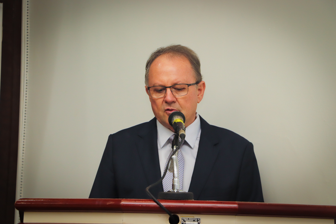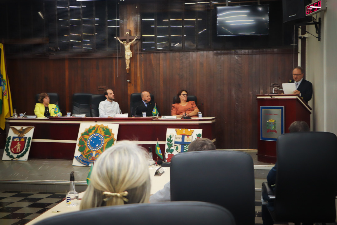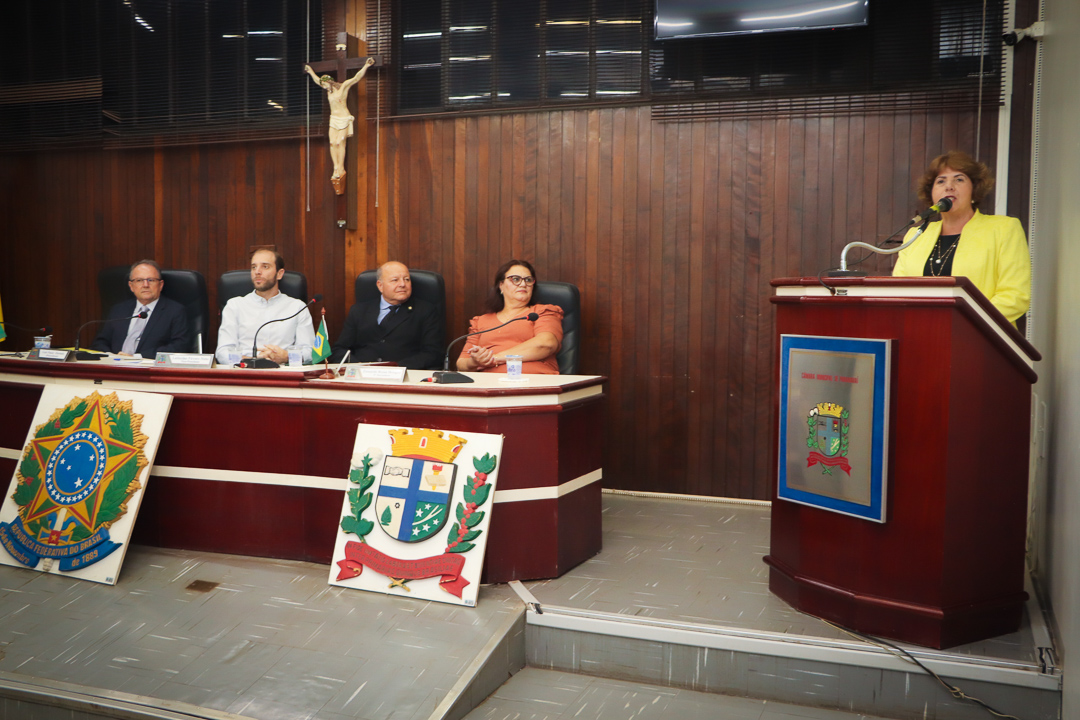 Em seu discurso, a vereadora destacou a integridade e a visão do homenageado.
